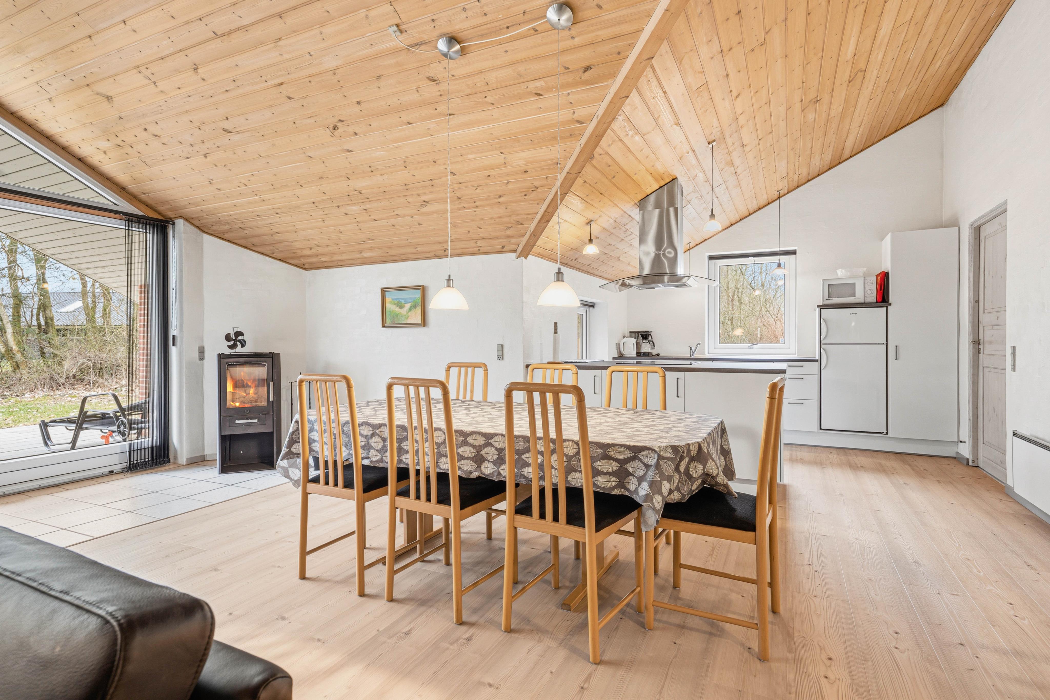 Dette sommerhus er en ideel ramme for store familier eller vennegrupper, der ønsker en komfortabel base til at udforske Vestkystens betagende landskaber. Med en åben planløsning mellem køkken og stue kan I nemt være en del af både madlavning og hyggelige brætspil uden at miste noget af det sociale samvær.