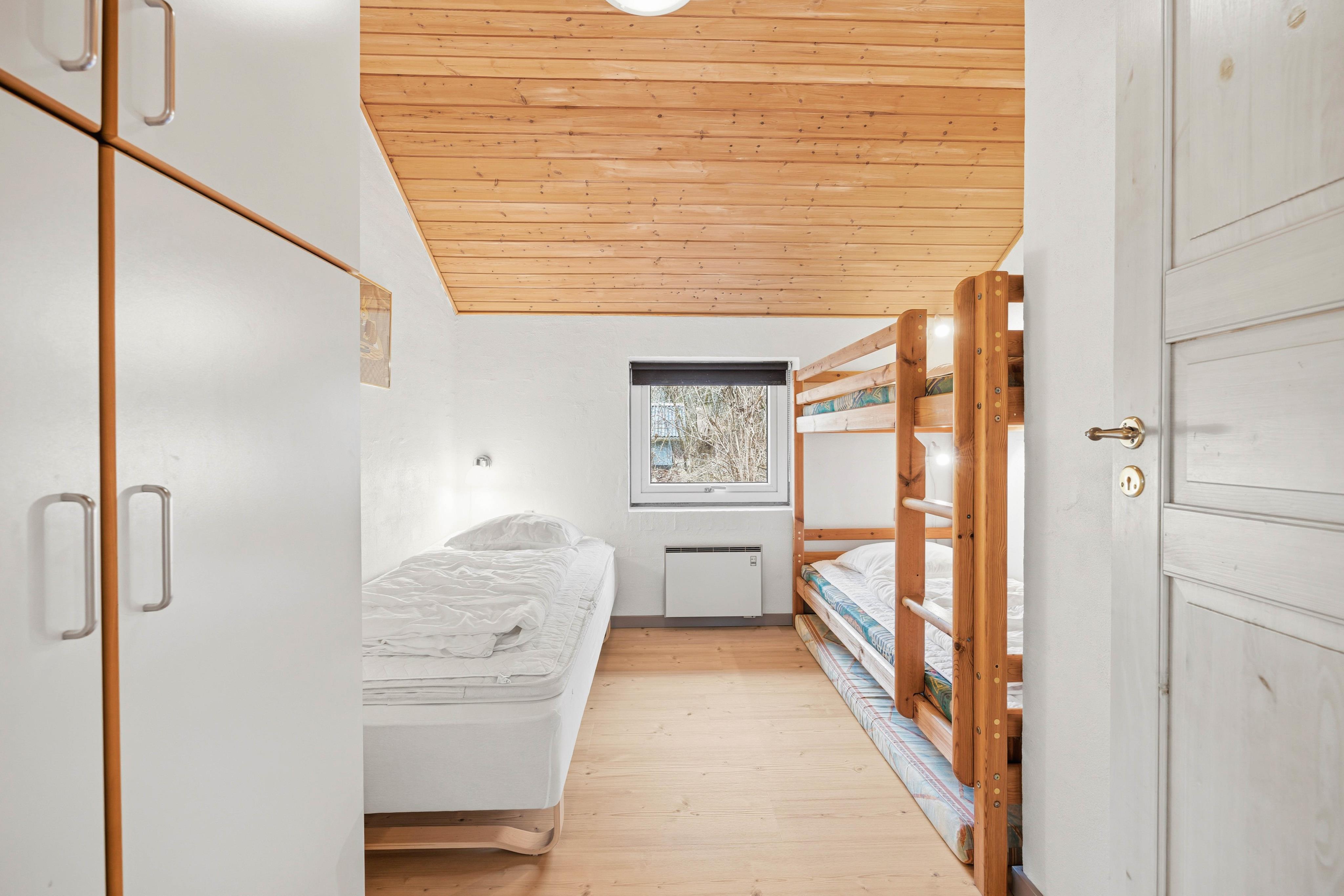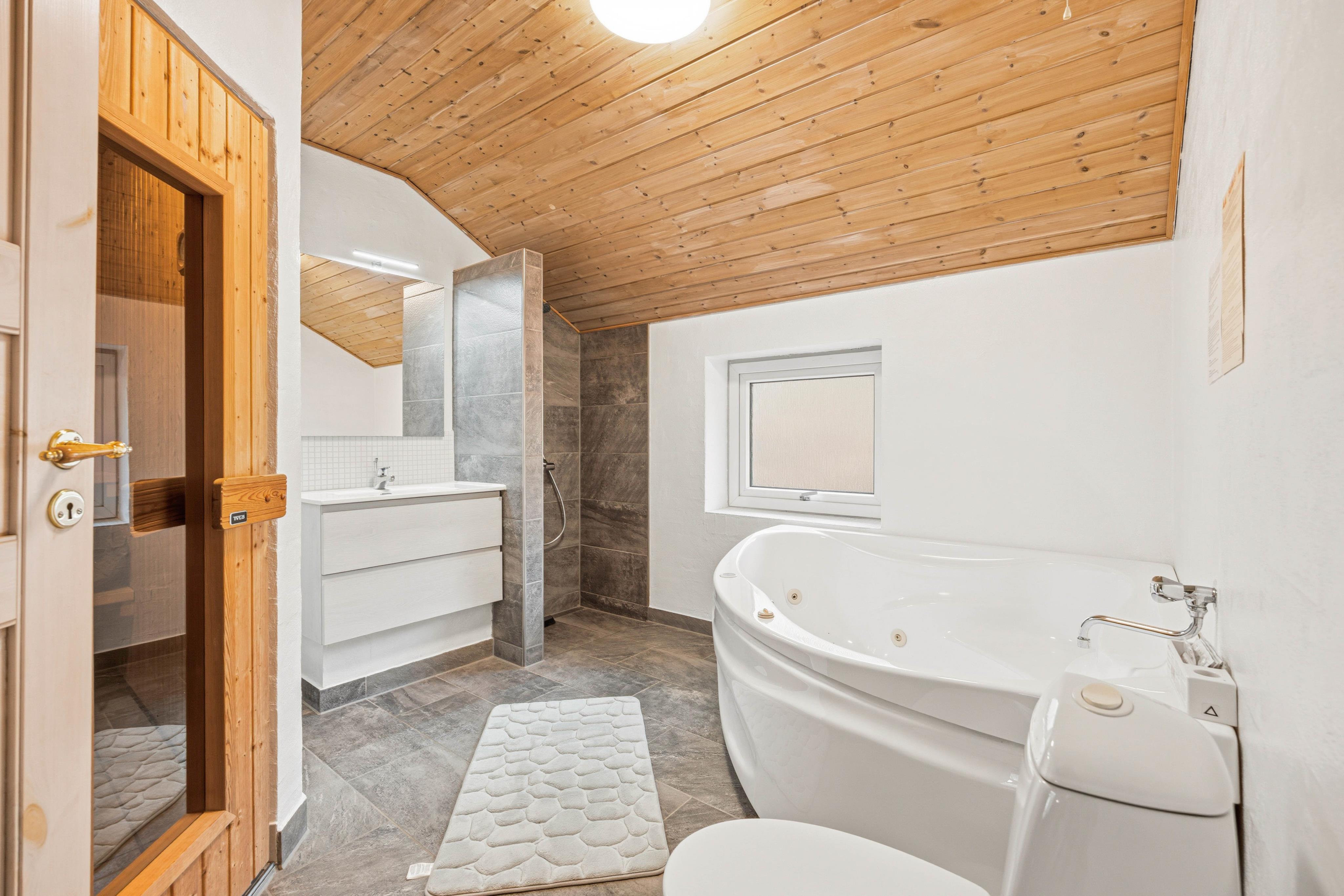 Huset rummer 3 gode soveværelser, der giver fleksible sovepladser for op til 7 gæster, hvilket gør det perfekt til alle gæsterne. Med 2 badeværelser, begge udstyret med gulvvarme, kan I starte dagen på den bedst mulige måde. For en ekstra touch af luksus tilbyder det ene badeværelse en sauna og tømmespa, perfekt til at koble af fra hverdagens stress og nyde roen.