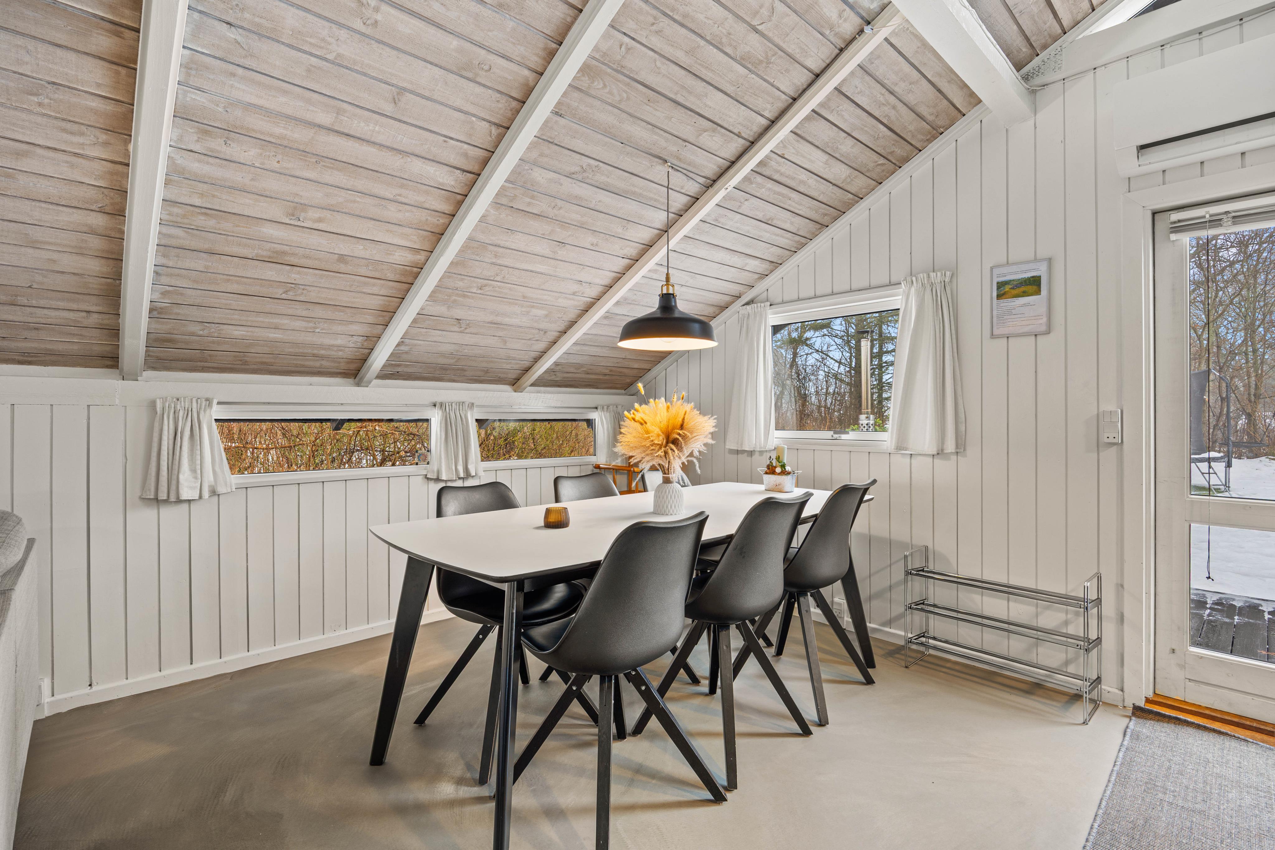 I dette klassiske sommerhus kan der bo 6 personer fordelt på 3 soveværelser, 2 værelser har enkeltsenge og 1 værelse har en dobbeltseng. Det åbne køkkenalrum inviterer til god madlavning samt hyggelige samtaler over gryder og spillekort. Huset fik renoveret køkken i 2022, som nu indeholder både opvaskemaskine og køle- og fryseskab.