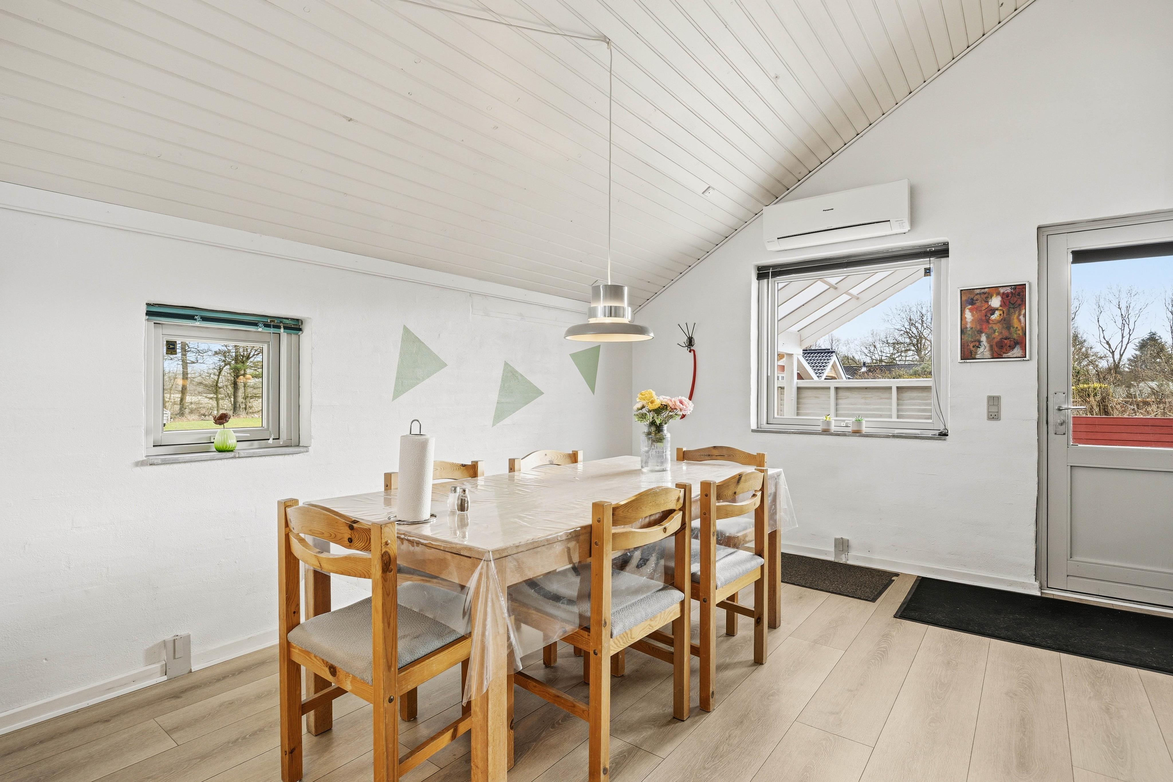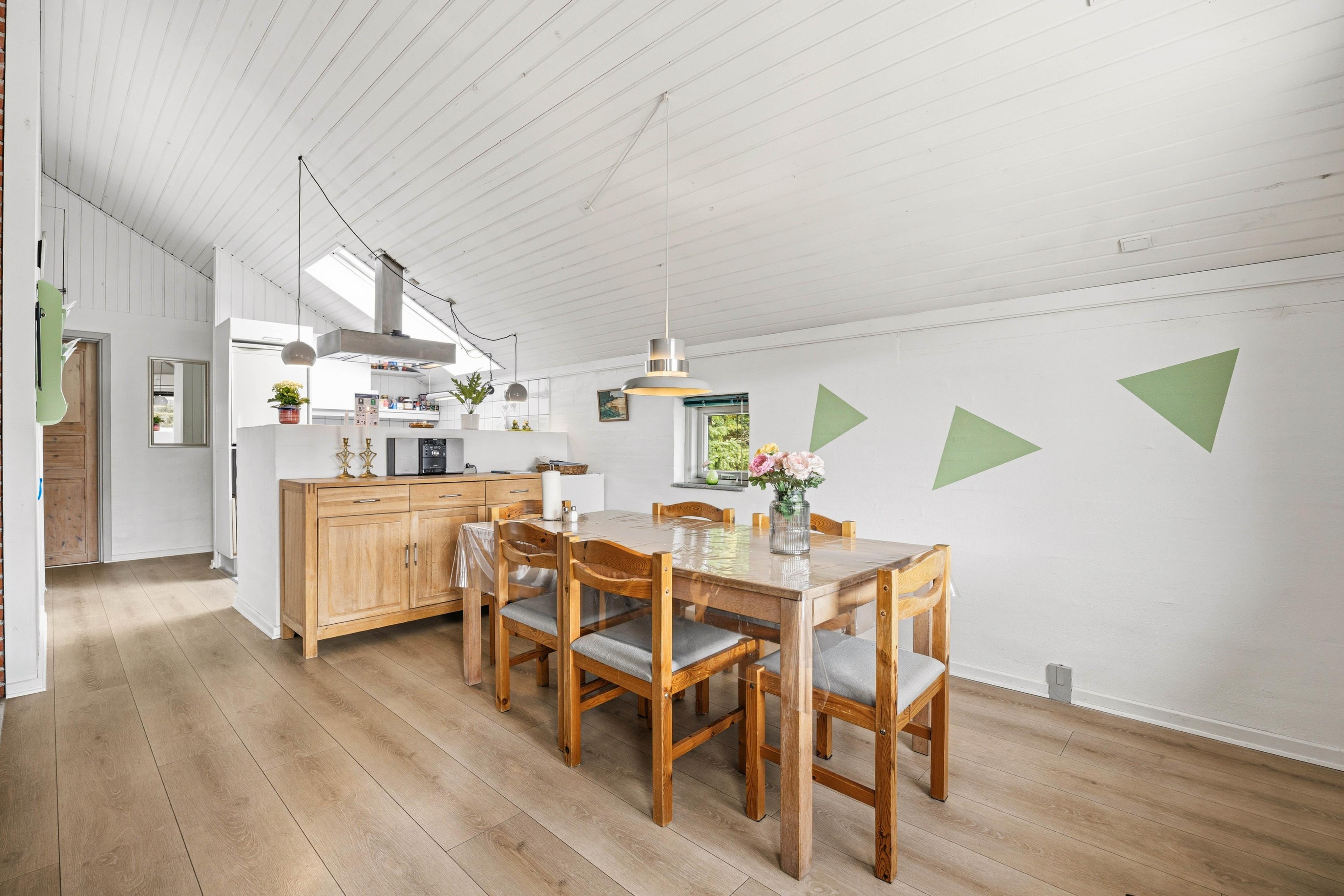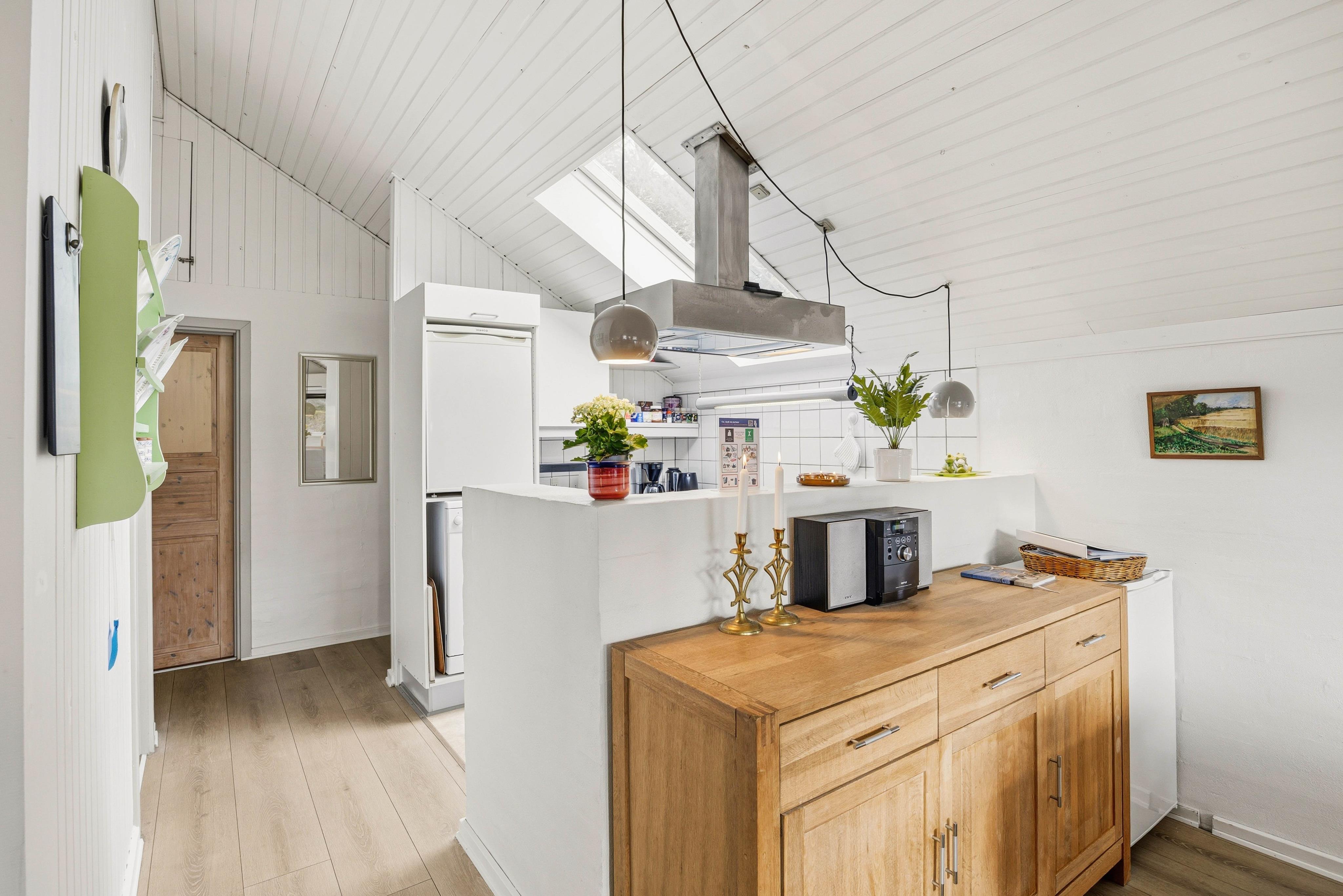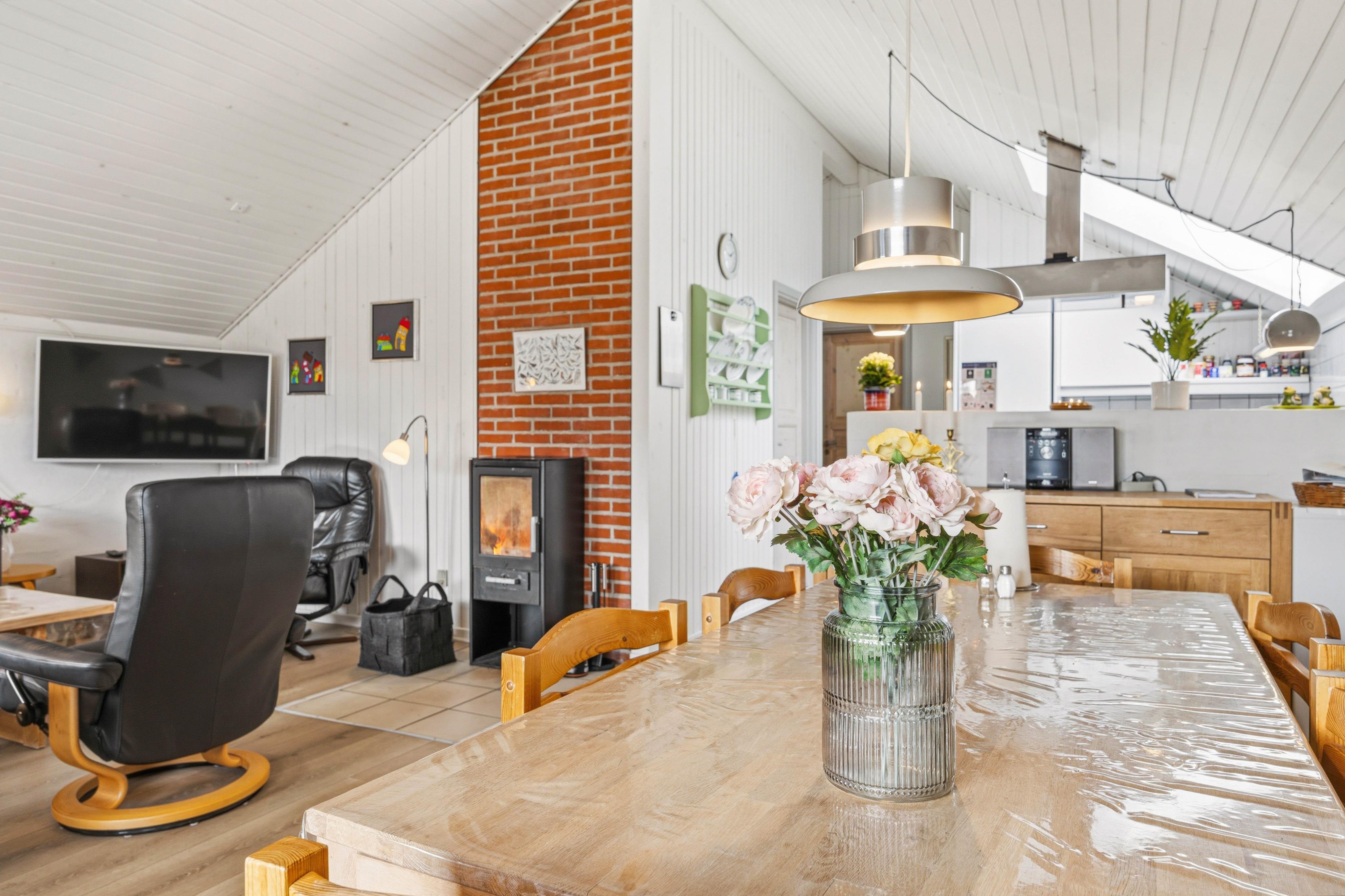 Indenfor bydes du velkommen af en varm og indbydende atmosfære, hvor komfort og funktionalitet går hånd i hånd. I køkkenalrummet knitrer brændeovnen og spreder hygge på kølige aftener – det perfekte samlingspunkt efter en dag fyldt med oplevelser. Her kan I læne jer tilbage, nyde roen og være sammen.