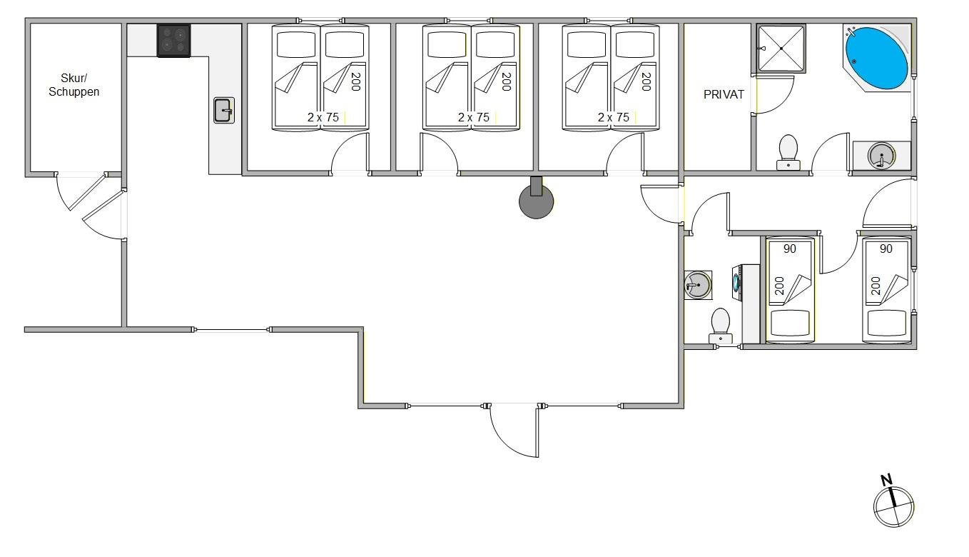 Her er 8 sovepladser, som er fordelt på 4 soveværelser. 3 af soveværelserne er indrettet med en dobbeltseng og det fjerde soveværelse har 2 enkeltsenge. På badeværelset finde I både en sauna og spa – her kan I komme helt ned i gear og rigtig blive varmet igennem efter en afslappende gåtur på de mange små stier, der er at finde her i Jegum Ferieland.
