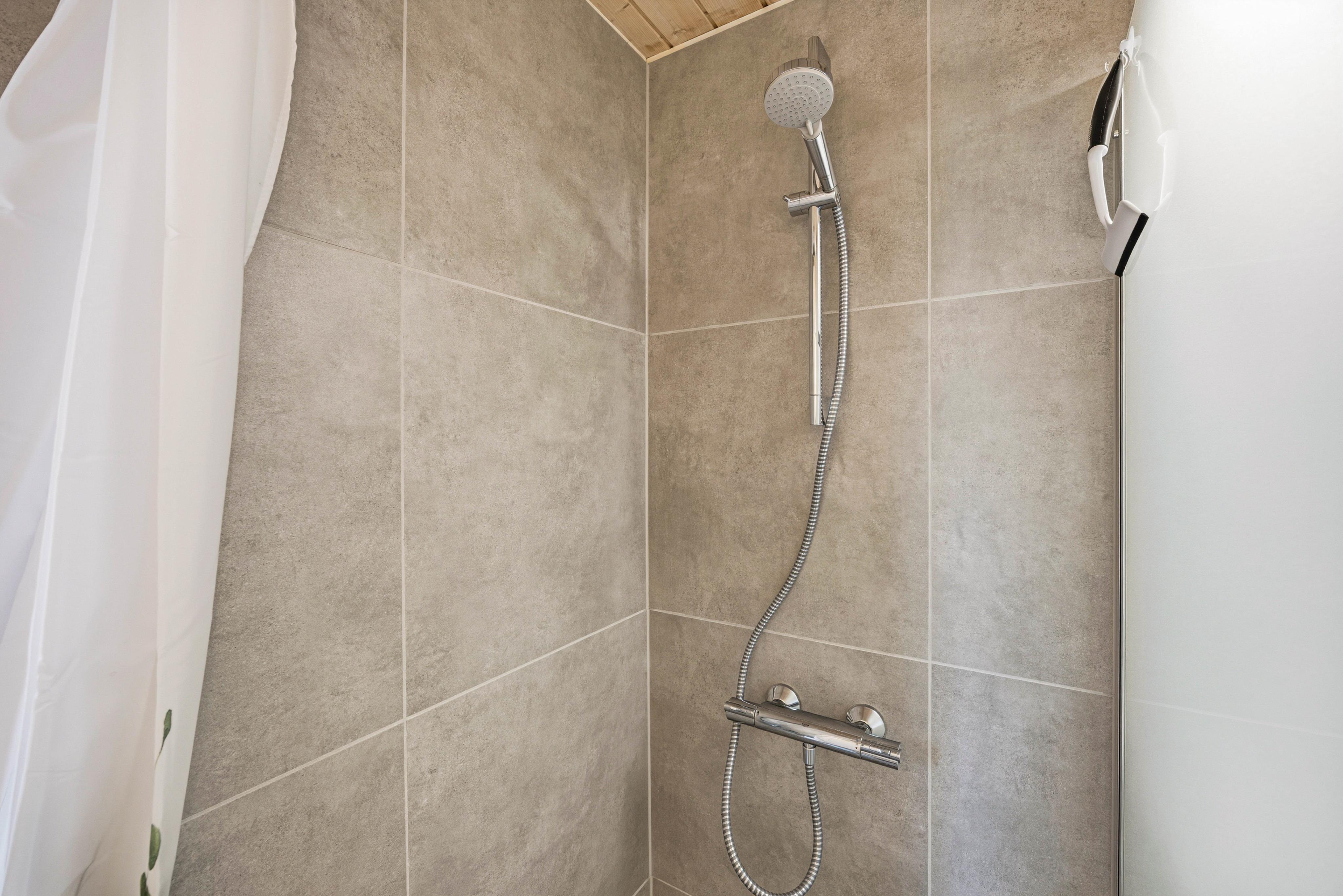 Derudover er der to sovepladser på sommerhusets hyggelige hems, hvor madrasserne giver børnene mulighed for at trække sig tilbage og finde en hyggelig krog. Feriehuset har også et badeværelse, der byder på en sauna, hvor I kan lade musklerne slappe af og nyde en beroligende pause.