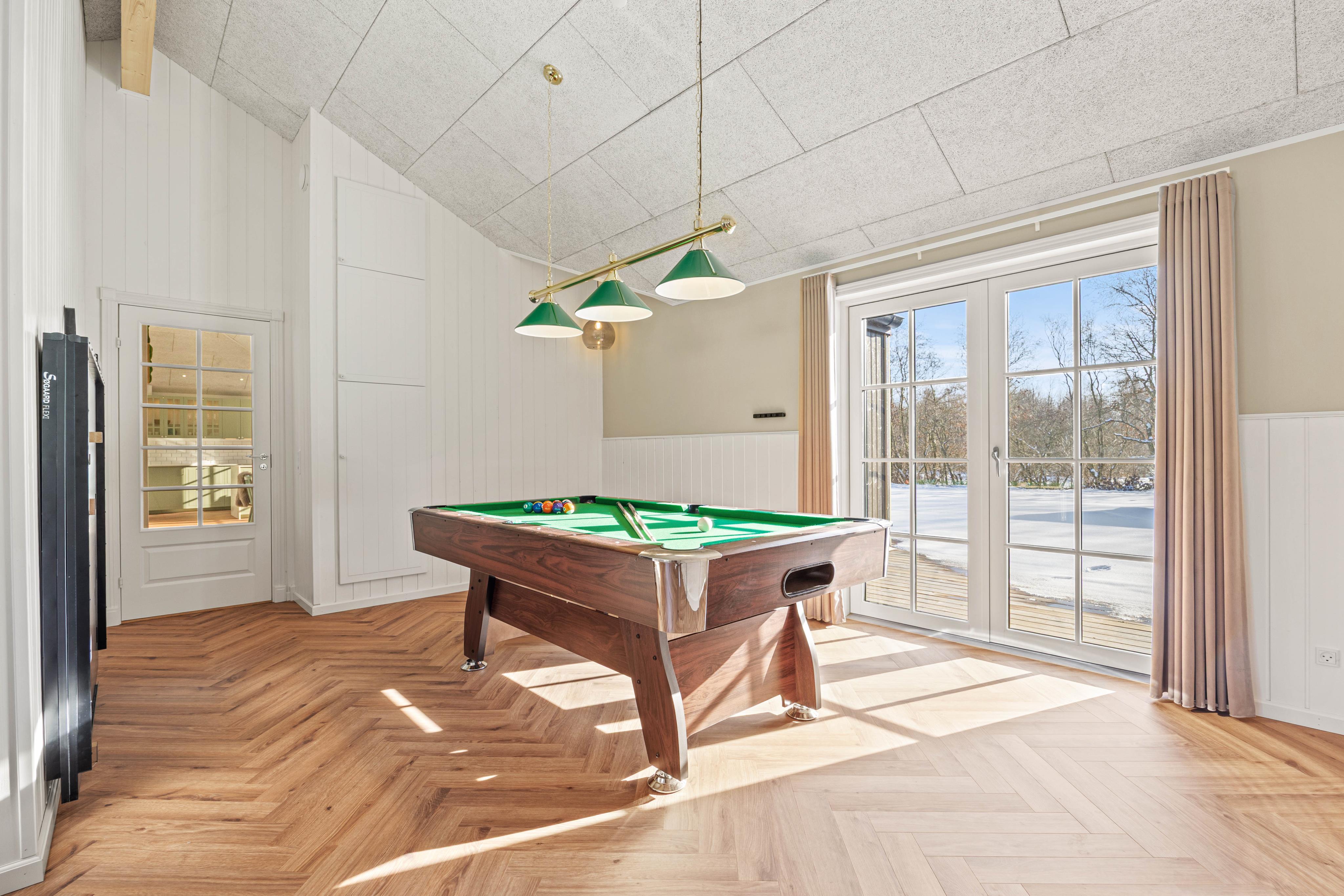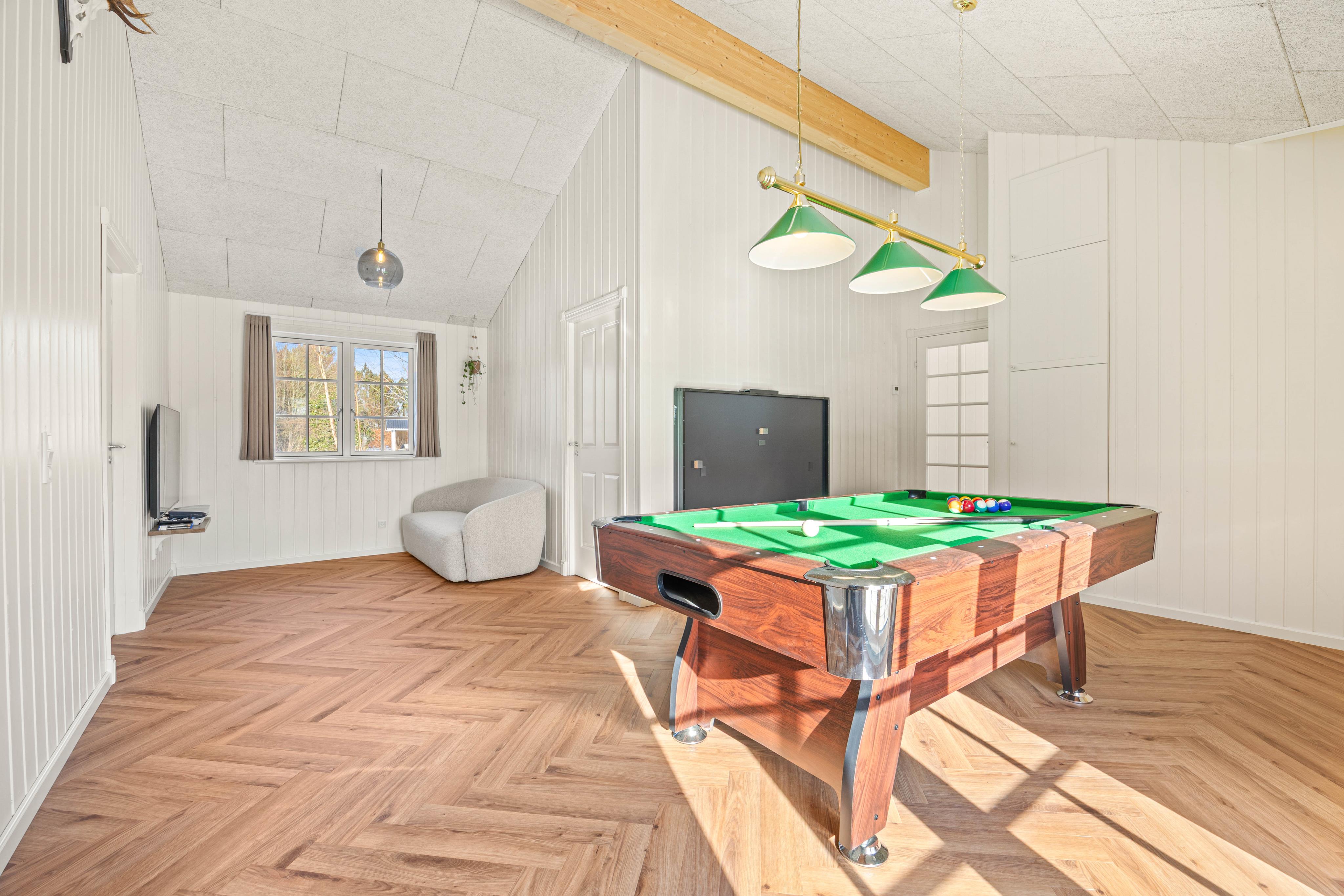 Når I træder ind i det veludstyrede sommerhus, bliver I straks mødt af en indretning, der indbyder til hyggelige stunder, leg og afslapning. I aktivitetsrummet kan familien samles om et spil bordtennis eller poolbillard – oplagt til både små konkurrencer og latterfyldte øjeblikke. Sommerhusets samtalevenlige køkken gør madlavningen til en fornøjelse, og med opvaskemaskinen klares oprydningen hurtigt og nemt.