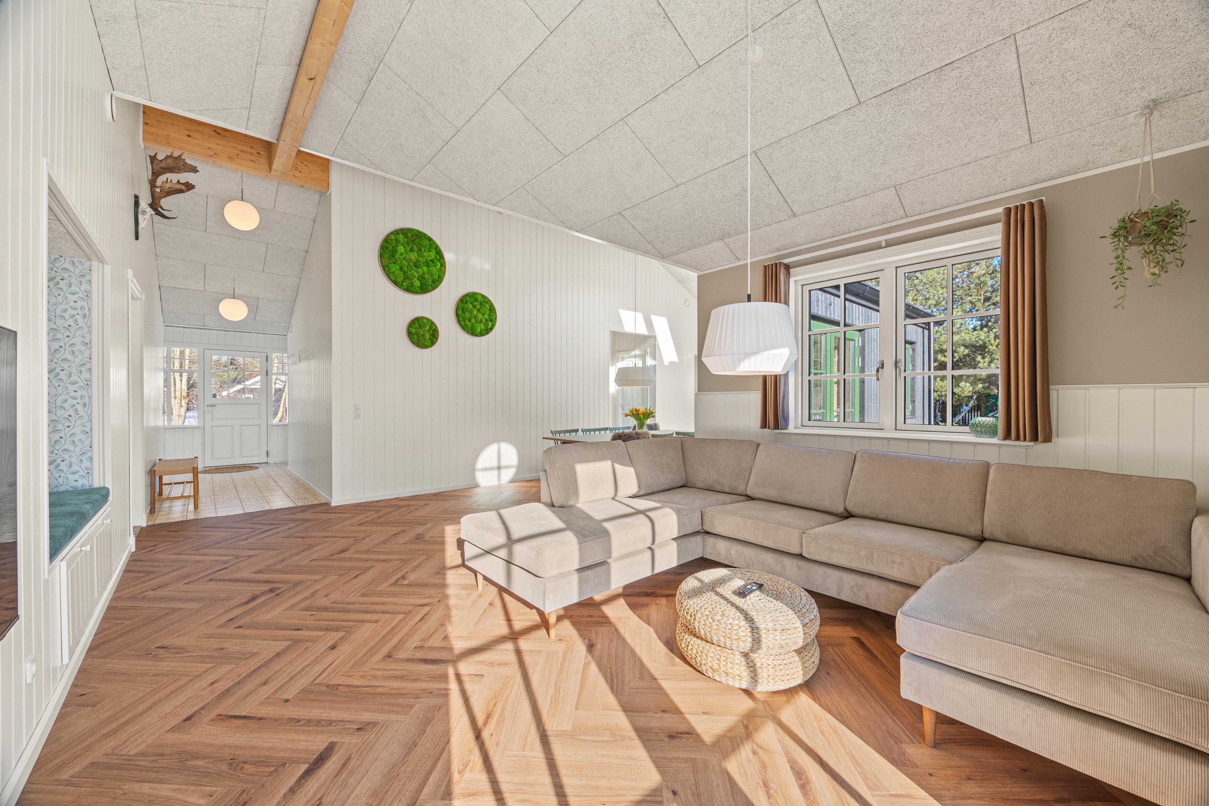 På jeres vej gennem sommerhuset finder I også både vaskemaskine og tørretumbler, så de praktiske gøremål let kan passes ind mellem ferieglæderne. De 2 badeværelser, begge med gulvvarme, skaber en atmosfære af komfort og velvære. Og med 8 sovepladser fordelt på 4 rummelige soveværelser er der rigelig plads til, at alle kan trække sig tilbage og nyde en rolig nats søvn efter dagens oplevelser.