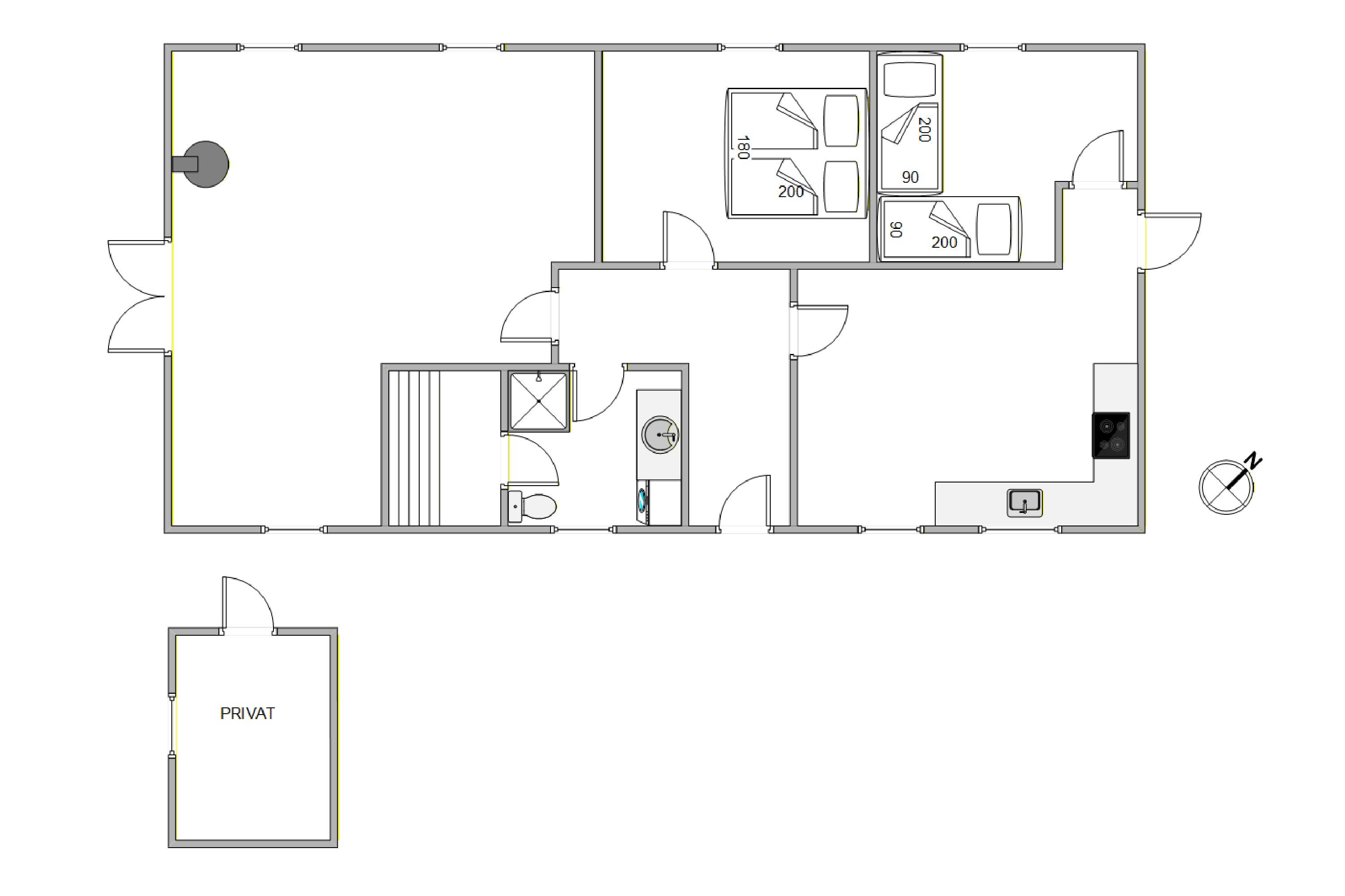 Sommerhuset står lyst, indbydende og inviterer jer indenfor til en afslappende ferie. I det separate og veludstyrede køkken kan I let tilberede lækre måltider til familien, hvorefter I kan samles rundt om spisebordet til både middag og hyggelige brætspil. Stuen er indrettet med bløde sofamøbler, hvor I kan slappe af og nyde varmen fra brændeovnen, der skaber en dejlig hyggestemning på kølige aftener.