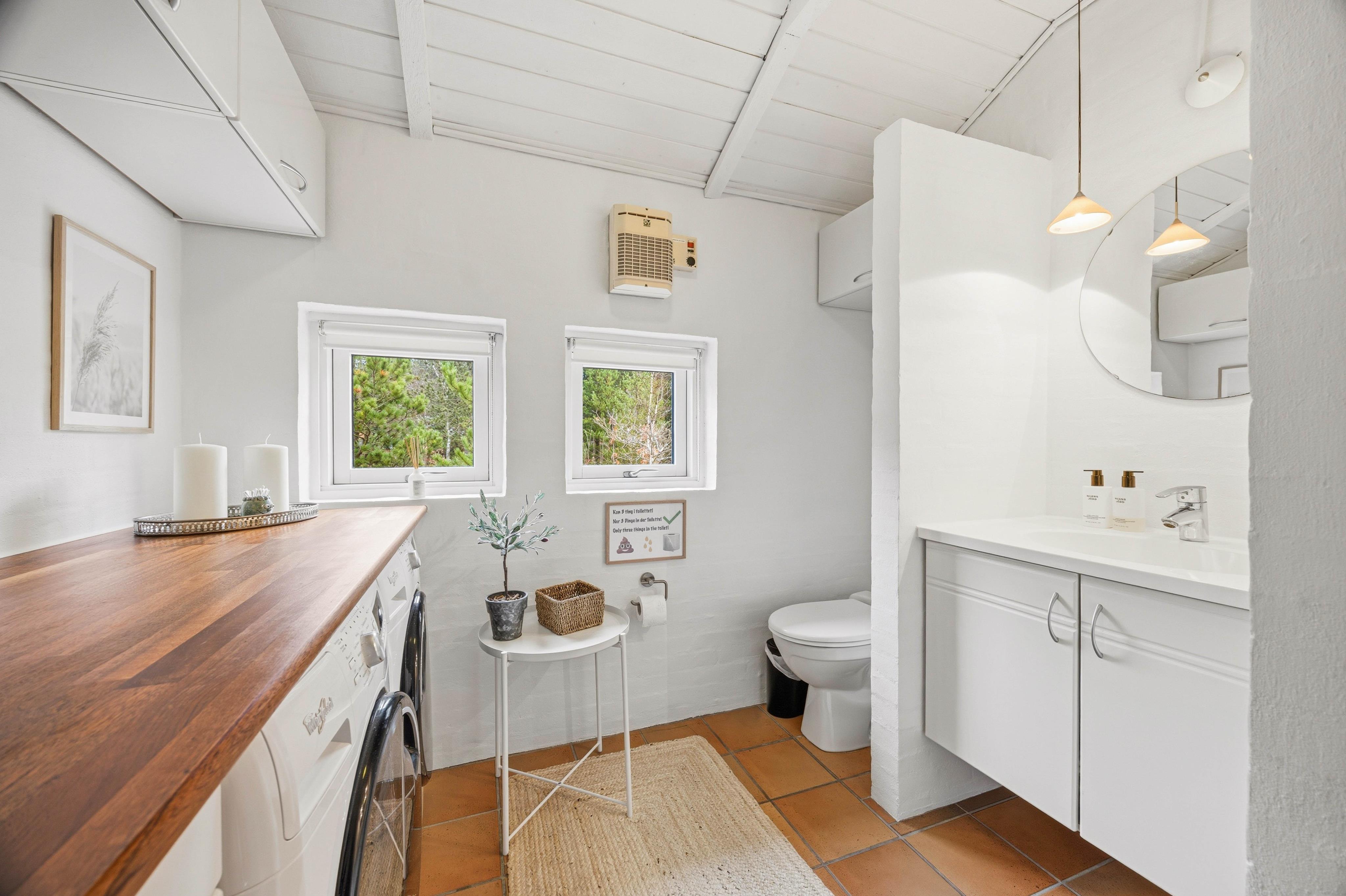 Badeværelset er forsynet med behagelig gulvvarme og en sauna, hvor I kan slappe af, mens et ekstra gæstetoilet gør det nemt at undgå kø om morgenen.