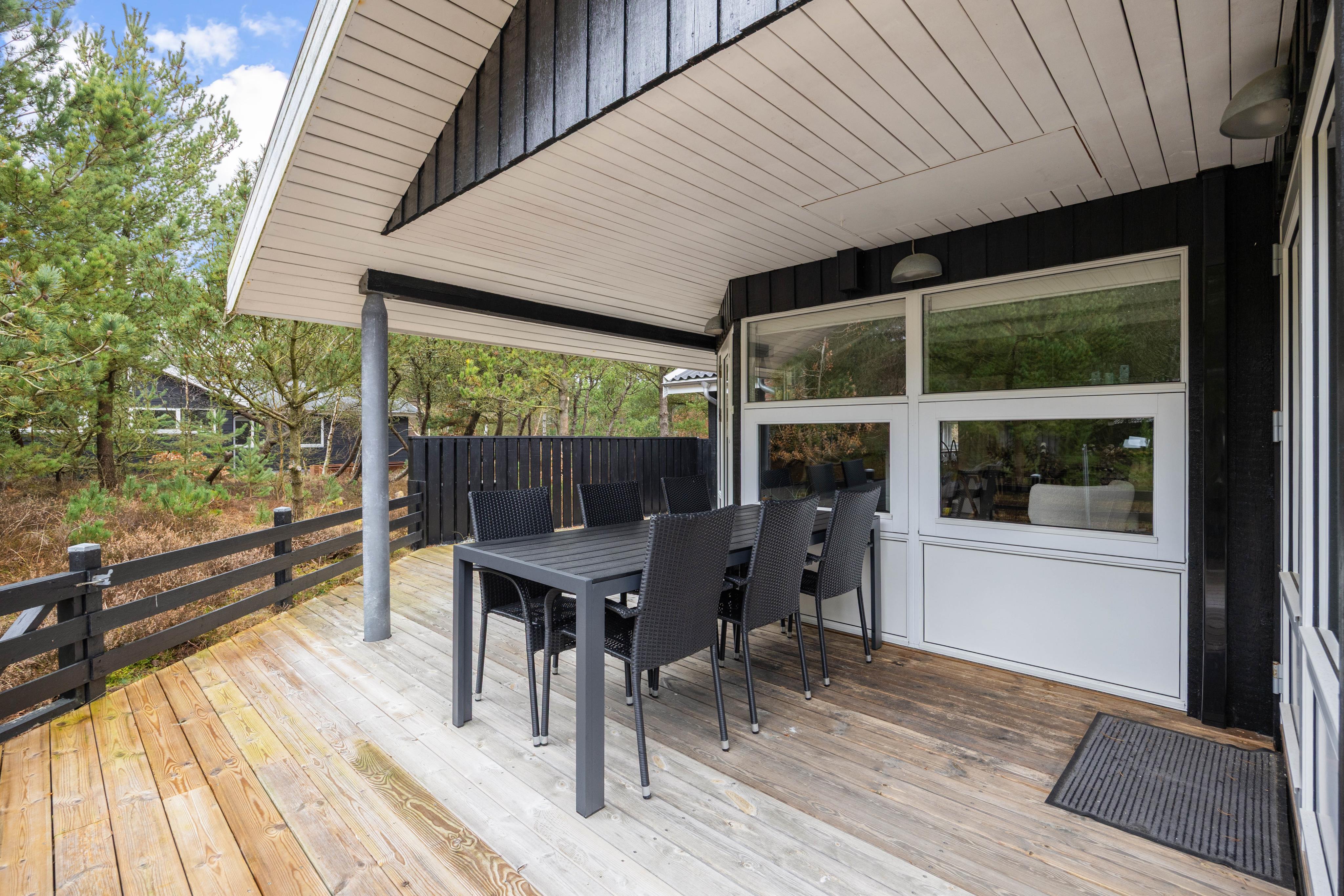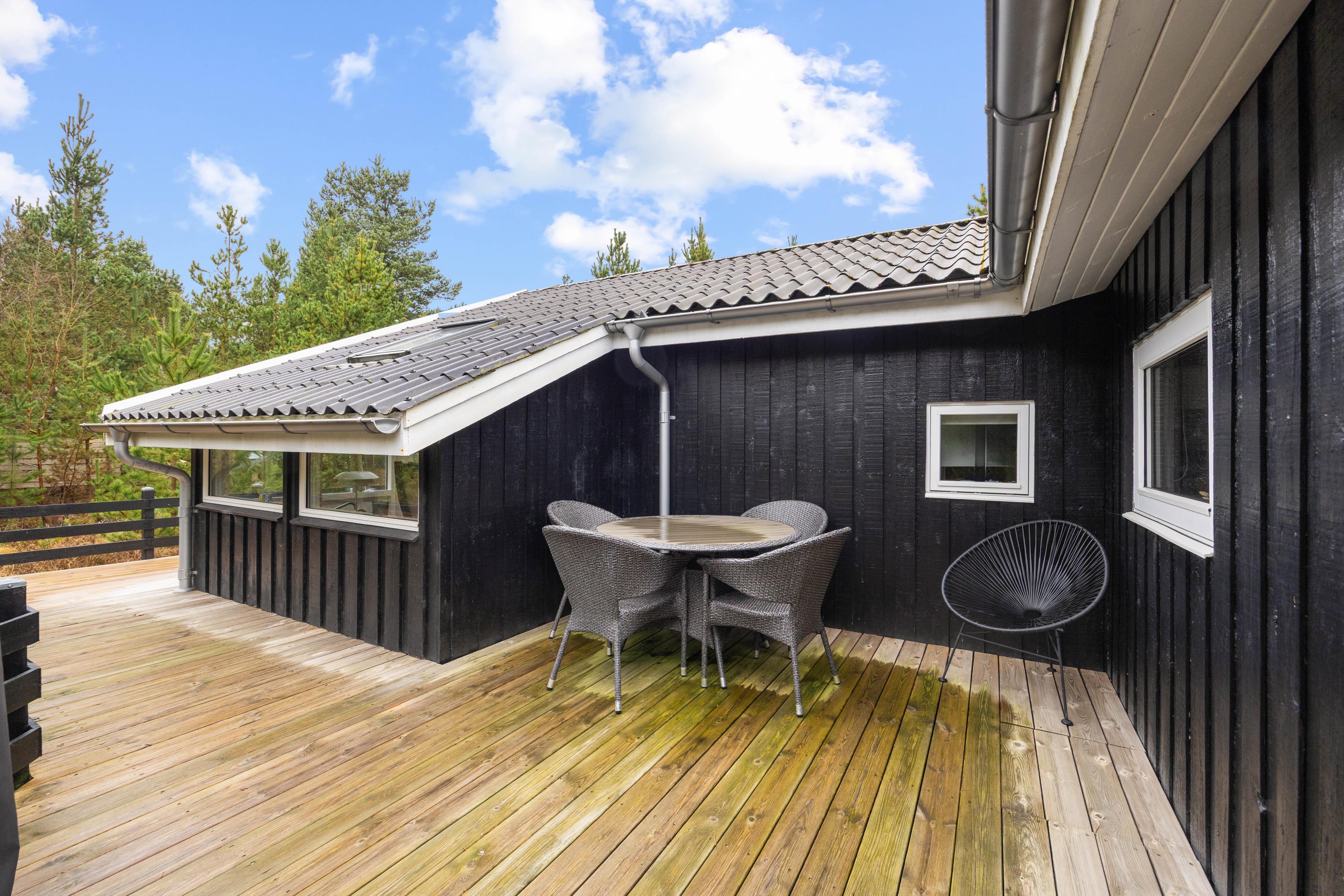 Rundt om sommerhuset er der adskillige hyggelige kroge, som er perfekte til at finde en solstråle og nyde morgenkaffen i fred og ro. Terrassen er ideel til at nyde alle måltider udenfor, hvad end det er en afslappet brunch eller en hyggelig grillmiddag i aftenskumringen.