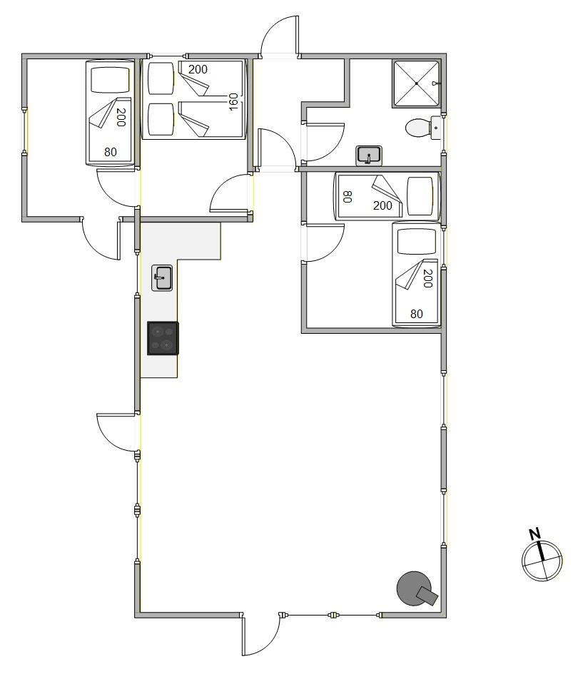 De 5 sovepladser er fordelt på 3 soveværelser, hvor et værelse er med en dobbeltseng, et andet med en enkeltmandsseng og det tredje med 2 enkeltmandssenge. Desuden har sommerhuset et badeværelse med gulvvarme, så I kan undgå at få kolde fødder. Yderligere er der en varmepumpe, som sikrer en behagelig temperatur til energivenlige priser.