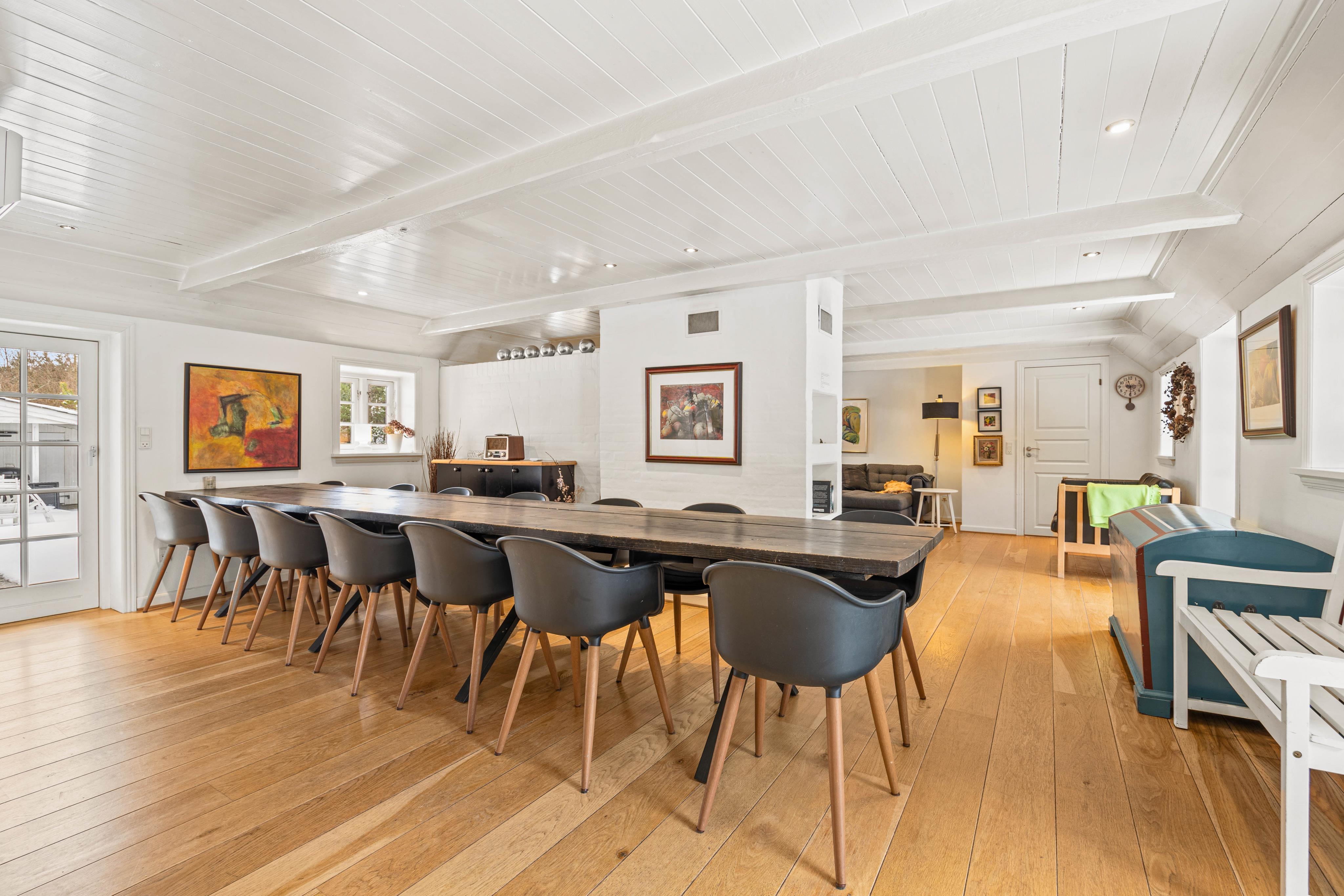 Sommerhuset, beliggende på Houstrupvej 120, er designet til at rumme op til 16 gæster og strækker sig over 300 kvadratmeter. Denne charmerende stråtækte bolig udstråler ægte dansk atmosfære og venter på at byde jer velkommen til det smukke Houstrup-landskab.