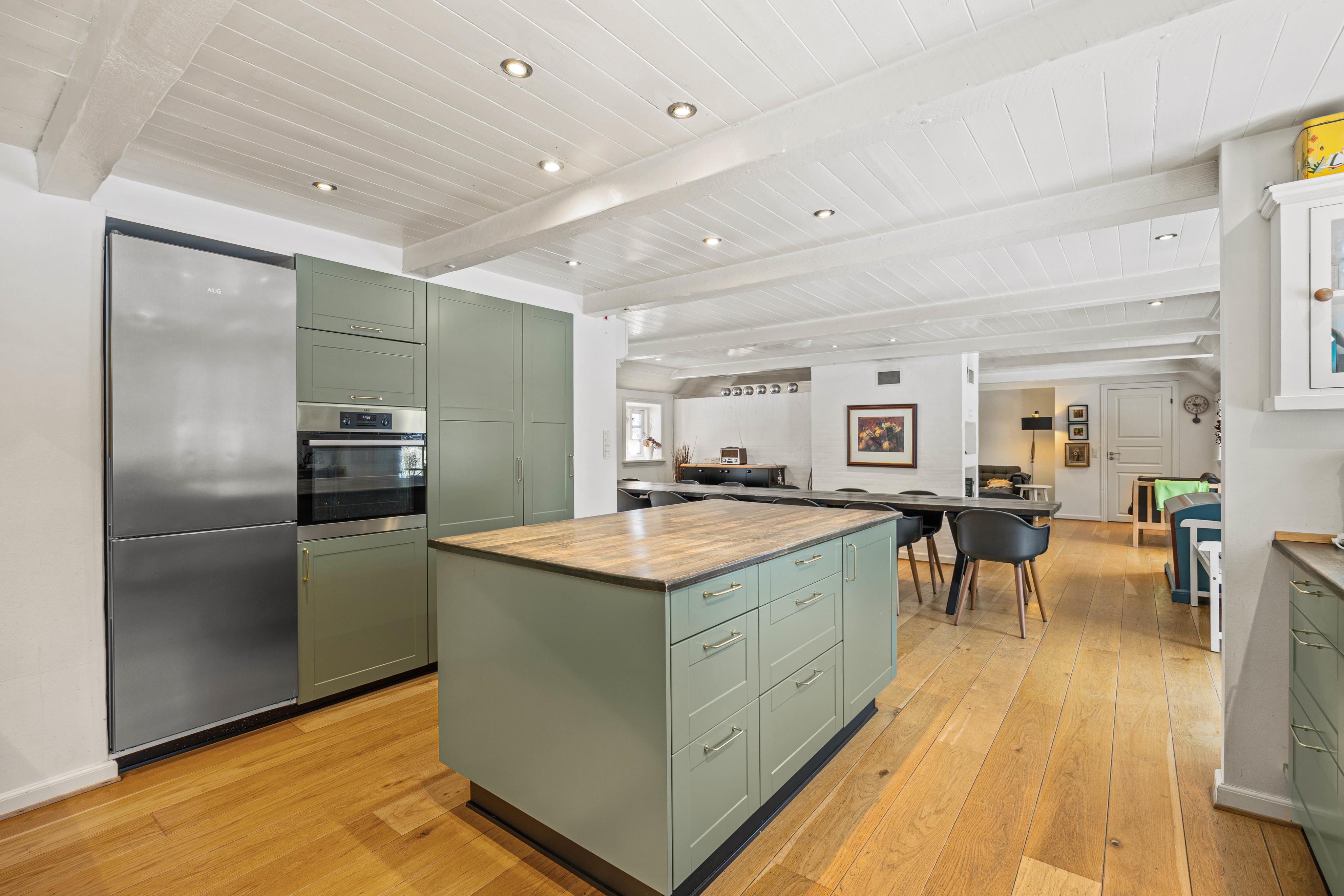Udover det lyse samtalekøkken, der inviterer til fælles madlavning og hyggelige måltider, byder sommerhuset også på et ekstra køkken i aktivitetsrummet. Her kan I forberede snacks og forfriskninger, mens I nyder spil og sjov med familien. Med to køkkener til rådighed er der rig mulighed for at tilpasse madlavningen og skabe øjeblikke sammen.