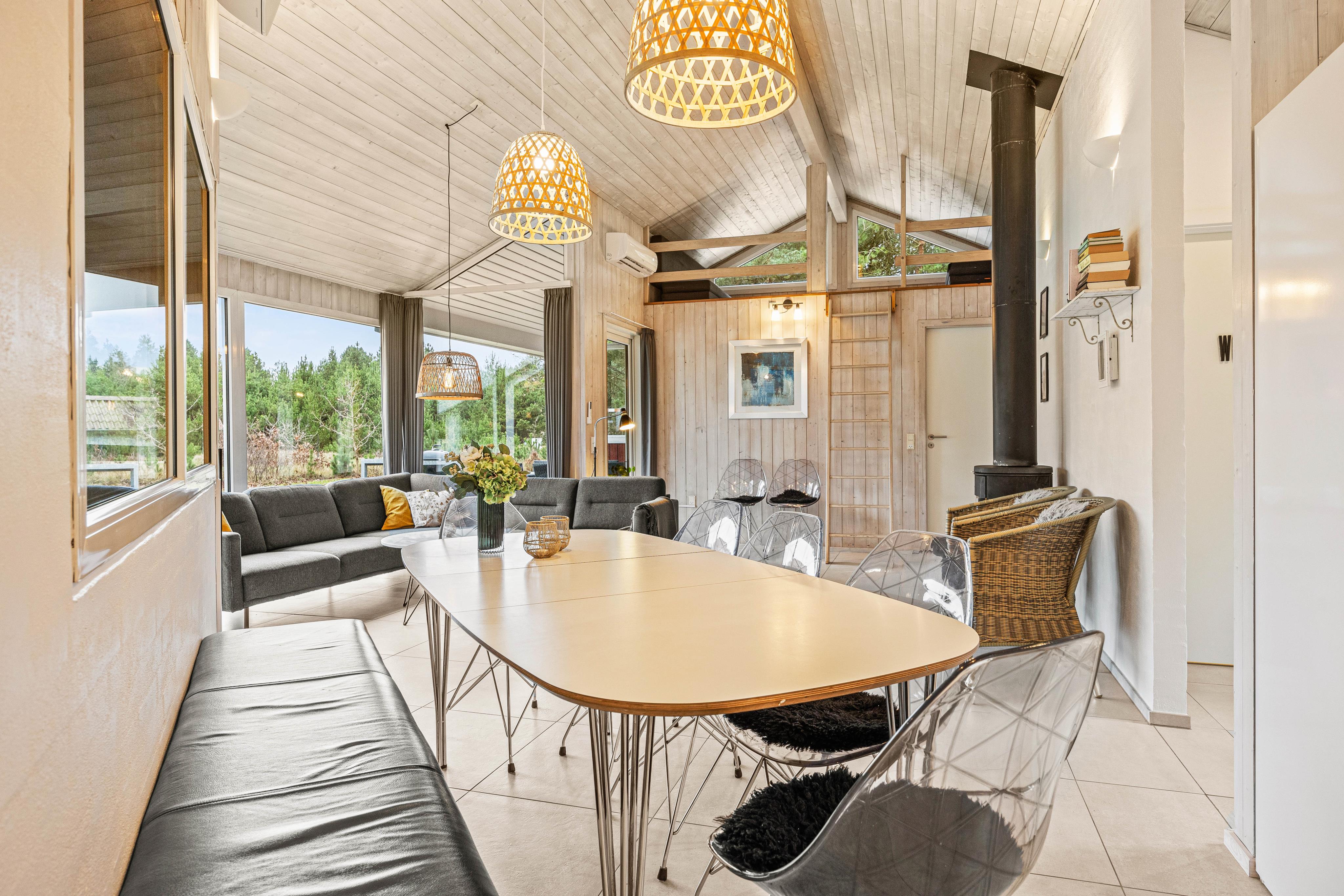 Feriehuset varmes op af en energibesparende varmepumpe, så temperaturen altid er perfekt. Dertil er der også en brændeovn, der skaber en hyggelig atmosfære i de sene aftentimer, når mørket falder på.