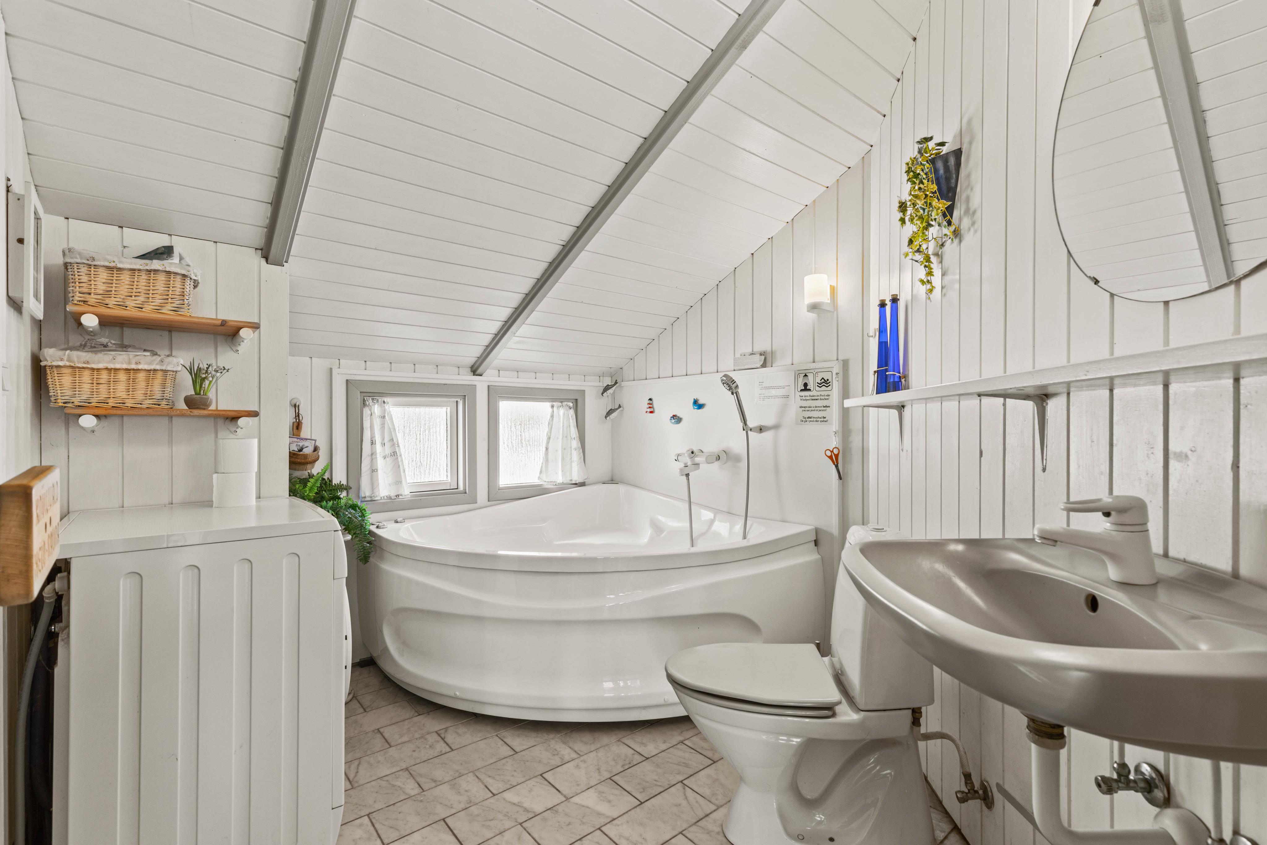 På Skovvang 22 har I 3 soveværelser, 2 med dobbeltsenge og et med 2 enkeltsenge. Badeværelset, der har gulvvarme er indrettet med både spa og sauna, desuden har I her mulighed for tøjvask i husets vaskemaskine.