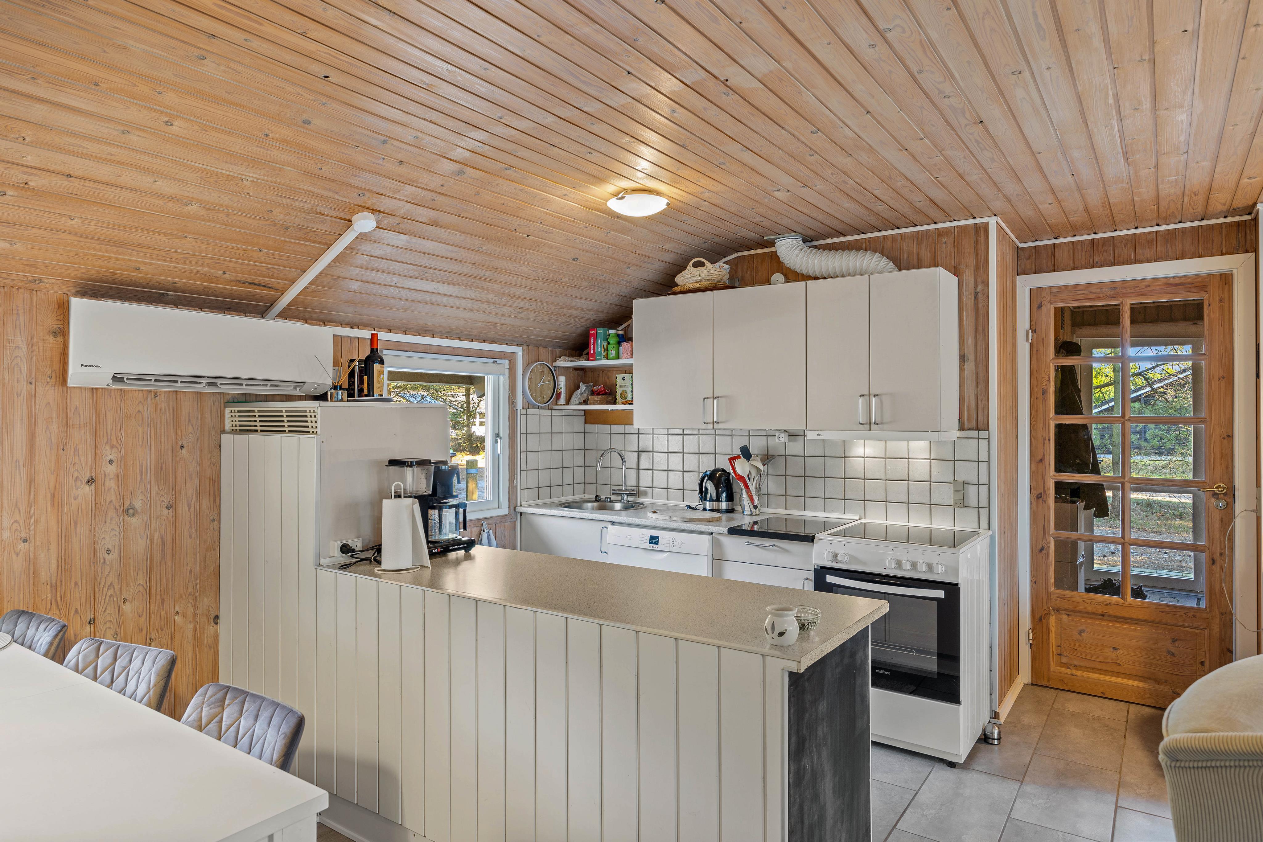 Når I træder ind i sommerhuset, mødes I af en indbydende og varm atmosfære. Centralt placeret finder I det hyggelige køkkenalrum, der er det perfekte samlingspunkt for hele familien. Den åbne planløsning gør, at I nemt kan føre samtaler fra køkkenet til sofaområdet, hvor der er rig mulighed for afslapning. En brændeovn i stuen fuldender oplevelsen af klassisk sommerhuscharme og sørger for lune aftener.