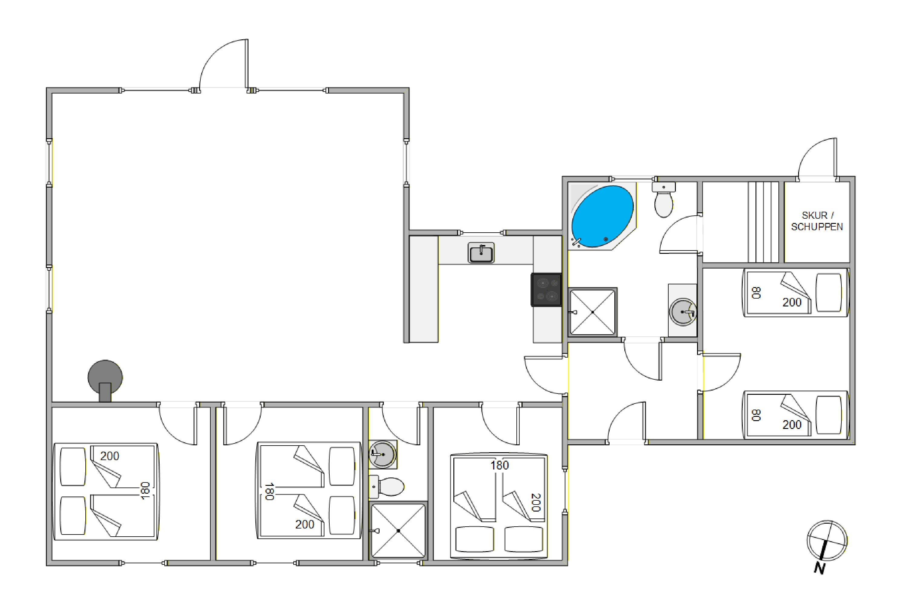 Med hensyn til tøjvask behøver du ikke at bekymre dig, da både en vaskemaskine og en tørretumbler står til din rådighed og sørger for, at du altid har rene og tørre klæder. Når dagen er omme og hovederne er fyldt med gode oplevelser, kan I finde jer til ro på de 8 sovepladser fordelt på 4 velindrettede soveværelser, hvilket sikrer alle en god nats søvn efter en dag fuld af eventyr.