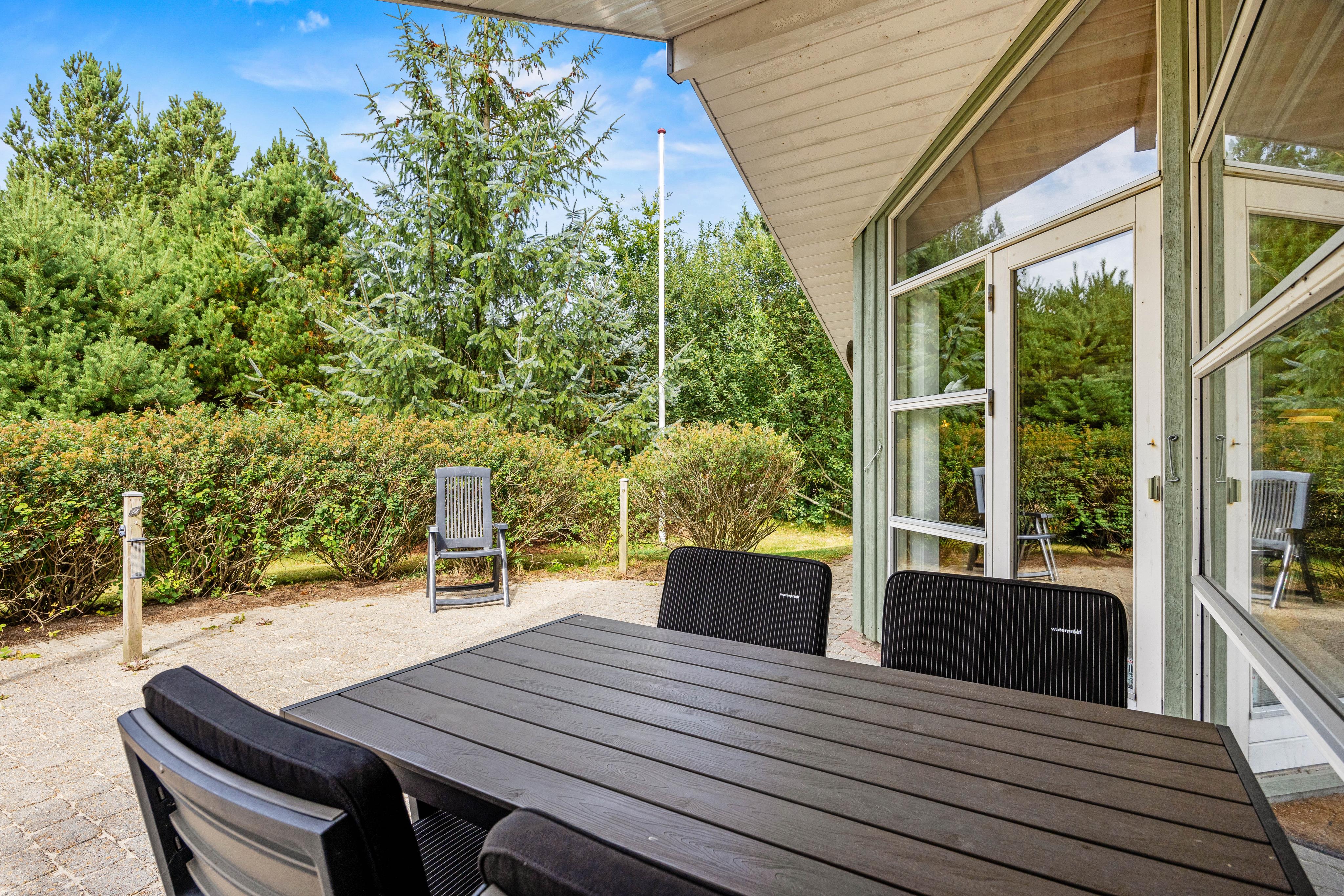 Terrassen er delvist åben og delvist afskærmet, hvilket gør det muligt at nyde de lange sommeraftener uanset vejret. Her står grillen klar til at tilberede lækre måltider, som kan nydes i det fri. Til opbevaring af diverse havespil og udstyr er der også et praktisk redskabsrum, som gør det nemt at holde orden på udetilbehøret.