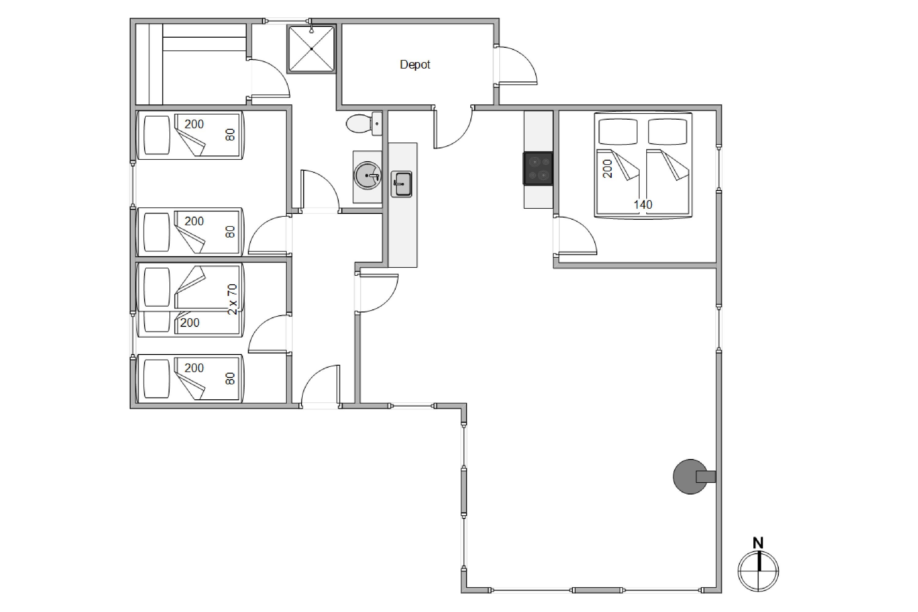Sommerhuset er indrettet med 3 soveværelser, hvilket gør det ideelt for grupper eller familier på op til 6 personer. Et af soveværelserne er udstyret med en køjeseng, perfekt til børnene, mens de 2 andre soveværelser giver komfort og privatliv til de voksne. Sommerhuset er udstyret med moderne faciliteter som opvaskemaskine og vaskemaskine, hvilket sikrer jer mere tid til afslapning og nærvær. En energibesparende og støgsvag Luft-til-luft varmepumpe gør, at temperaturen i sommerhuset altid er komfortabel, uanset årstiden.