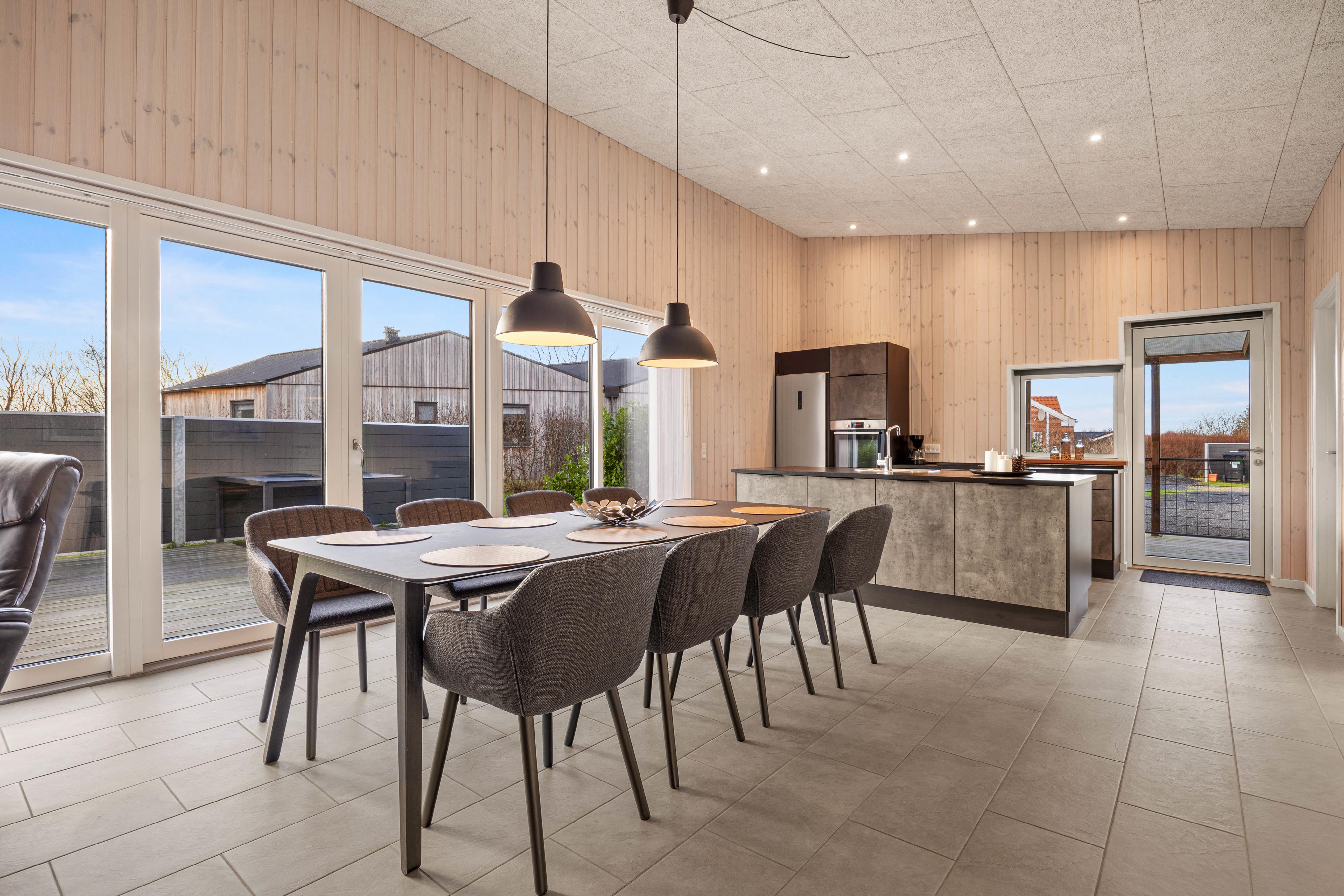 Køkkenalrummet sørger ligeledes for at man altid er med i hyggen, om man bikser aftensmaden sammen, spiller ludo eller ser fjernsyn. Det er kernen til en god ferie. Bevæger man sig videre i sommerhuset vil man finde 4 soveværelser og takket være de 3 badeværelser, hvoraf 2 er direkte knyttet til et soveværelse, er der også mulighed for privatliv.