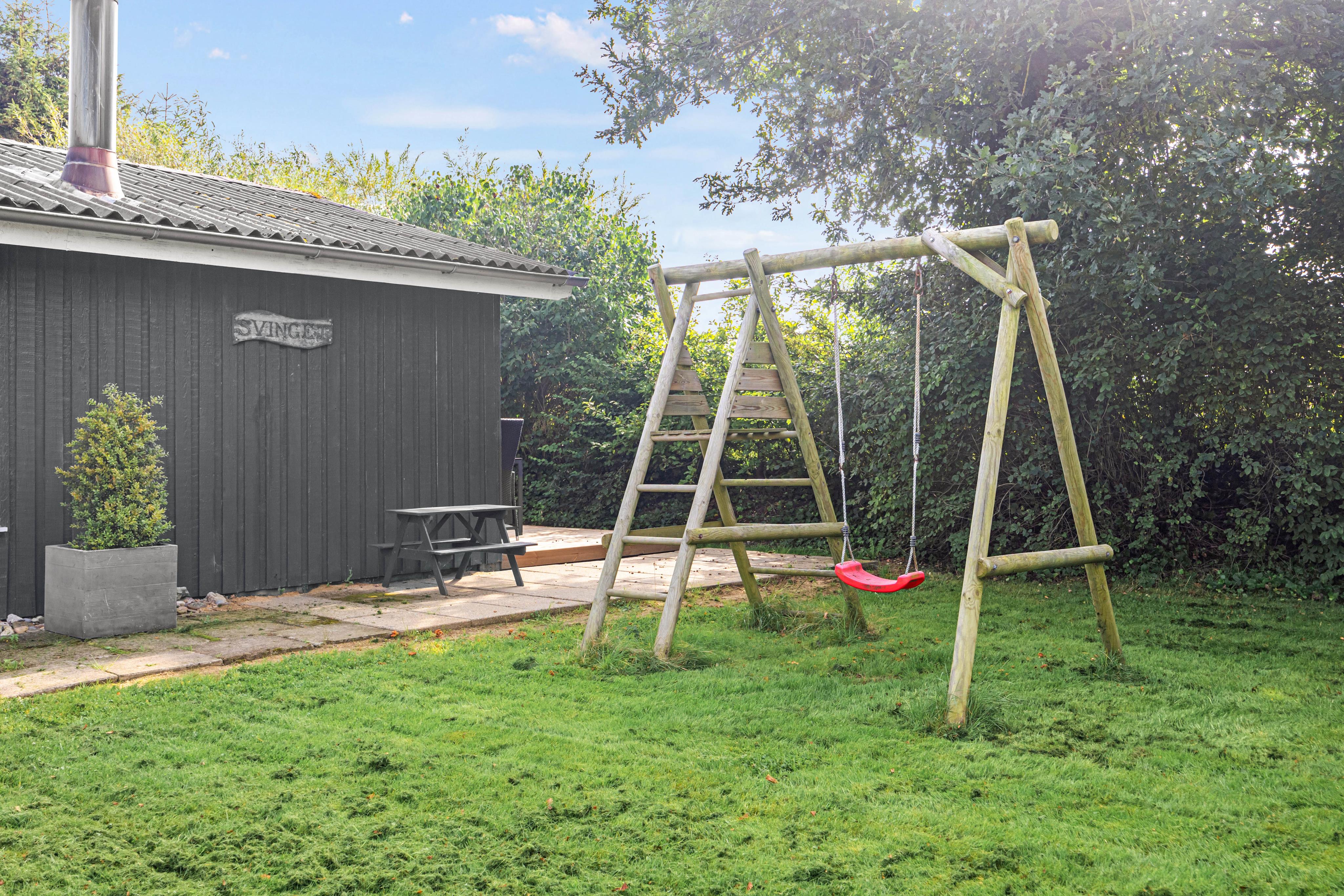 Børnene vil særligt sætte pris på gyngen, der bringer ekstra sjov til feriedagene. De voksne kan finde ro i de idylliske omgivelser, perfekt til at lade batterierne op og få en pause fra hverdagens stress og jag.