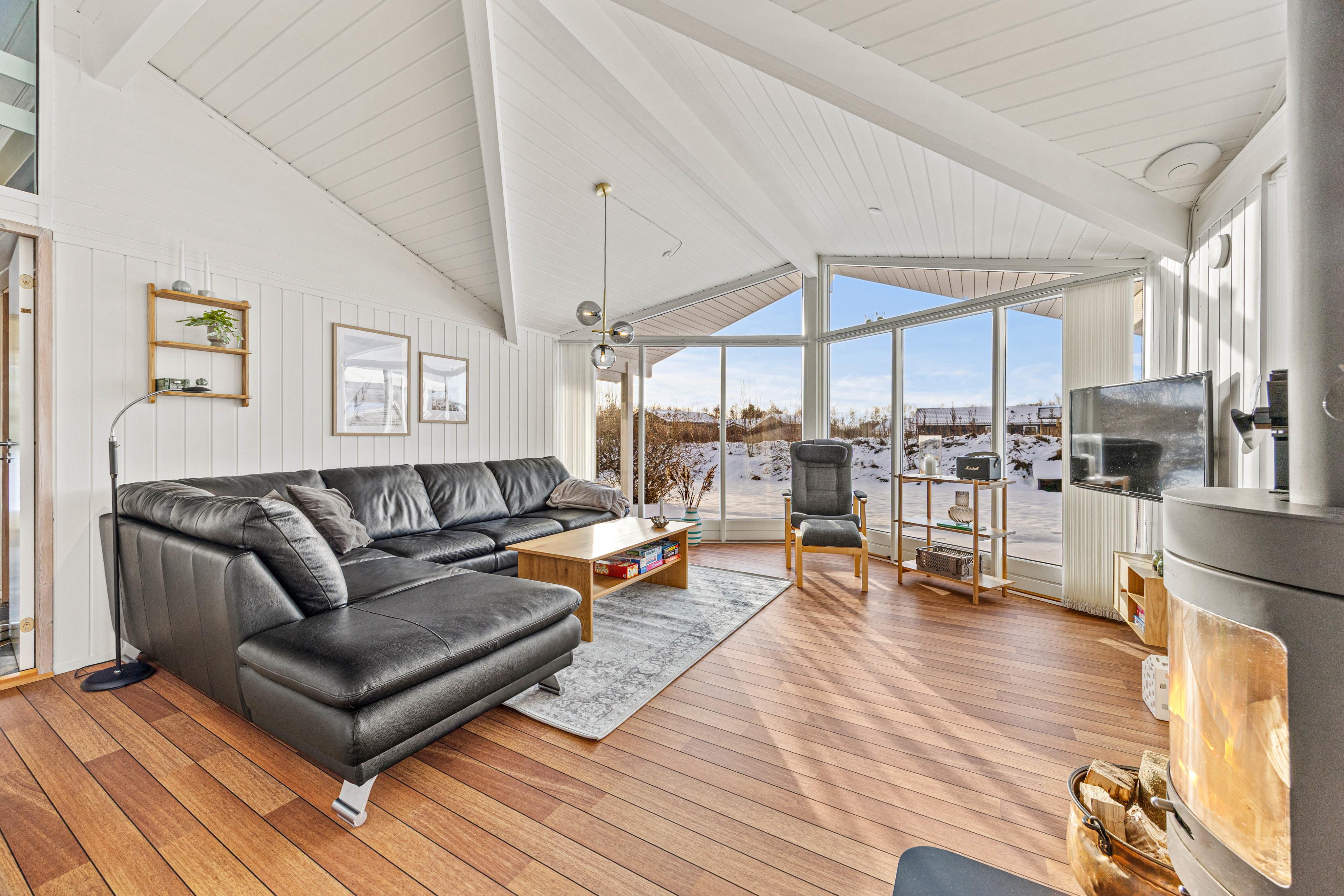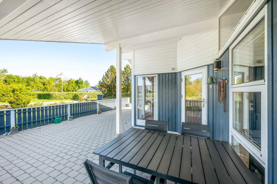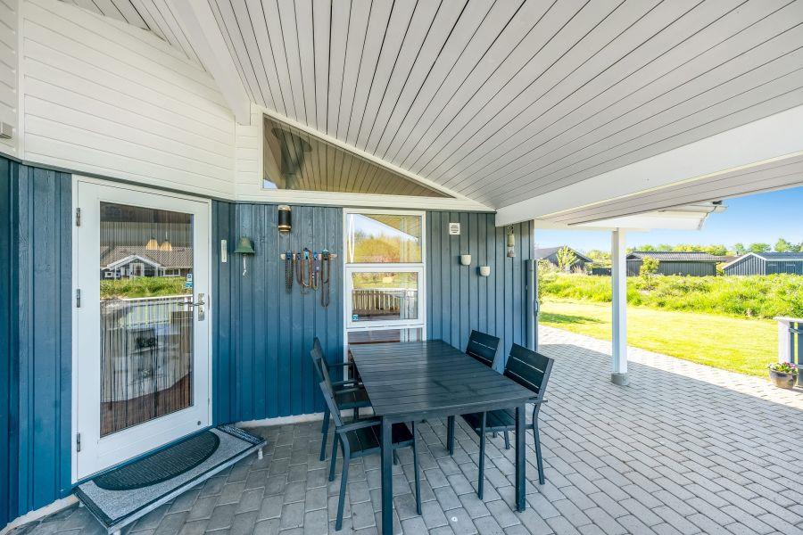 Udenfor venter et dejligt udeareal på hele 1200 m², hvor både børn og voksne kan finde plads til leg, hygge og afslapning. På plænen er der god plads til boldspil, leg og de mindste kan more sig med gyngen. Den overdækkede og afskærmede terrasse indbyder til hyggelige stunder året rundt – uanset om I tænder op i grillen til en lækker middag under åben himmel eller bare nyder en stille kop kaffe i ly for vinden. Har I el-bil med på ferien, kan I desuden lade den direkte ved sommerhuset via ladestikket, så I altid er klar til nye oplevelser i området.