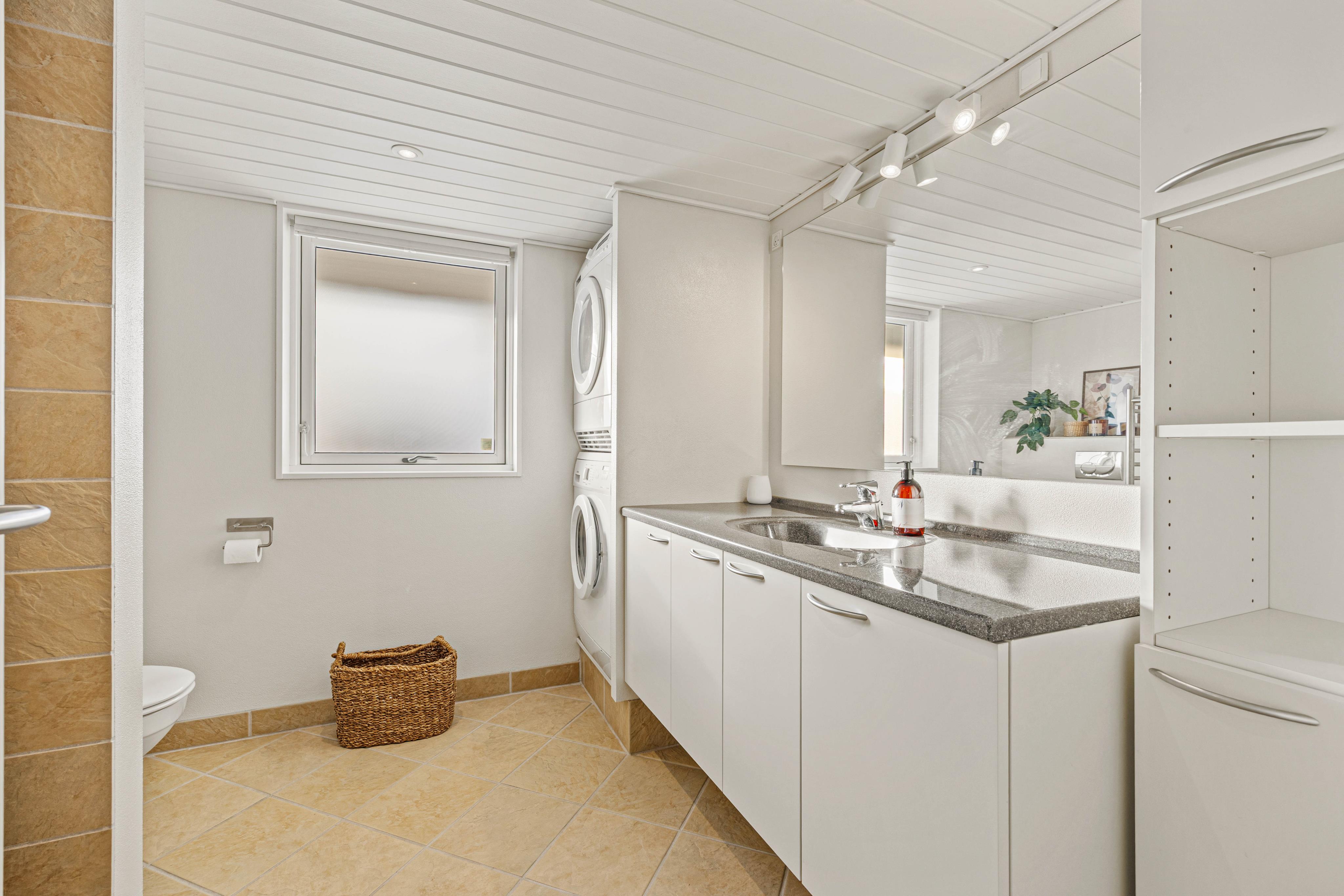 Inde i sommerhuset på Duevænget 28 møder I en hyggelig og charmerende atmosfære, hvor alt er til stede for at give jer en afslappende ferie. Her finder I både vaskemaskine og tørretumbler, så tøjet nemt kan holdes friskt hele ugen, og en energibesparende varmepumpe, der sikrer et behageligt indeklima året rundt. På de kølige aftener kan I tænde op i brændeovnen og nyde den varme og ægte feriestemning, som flammerne spreder.