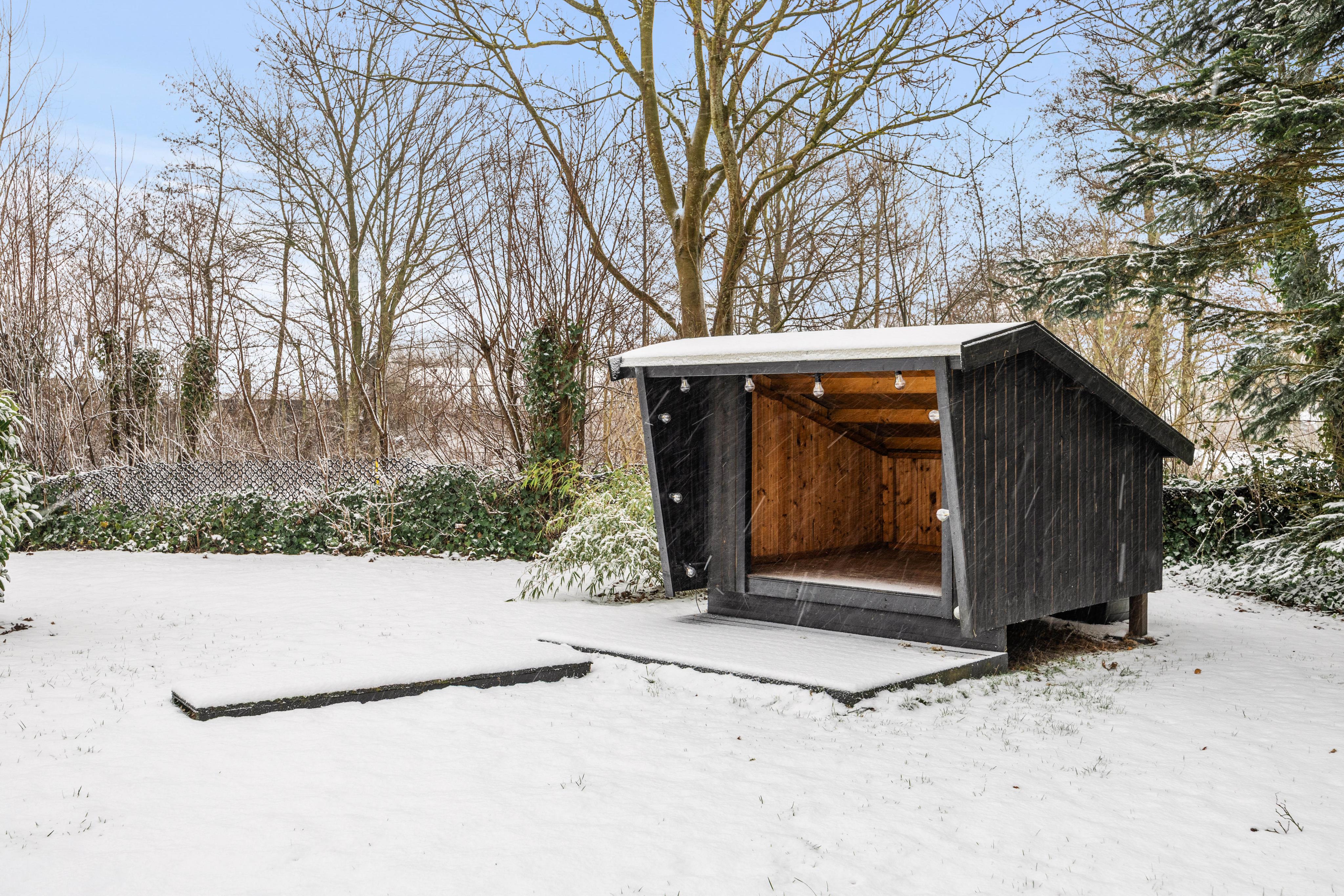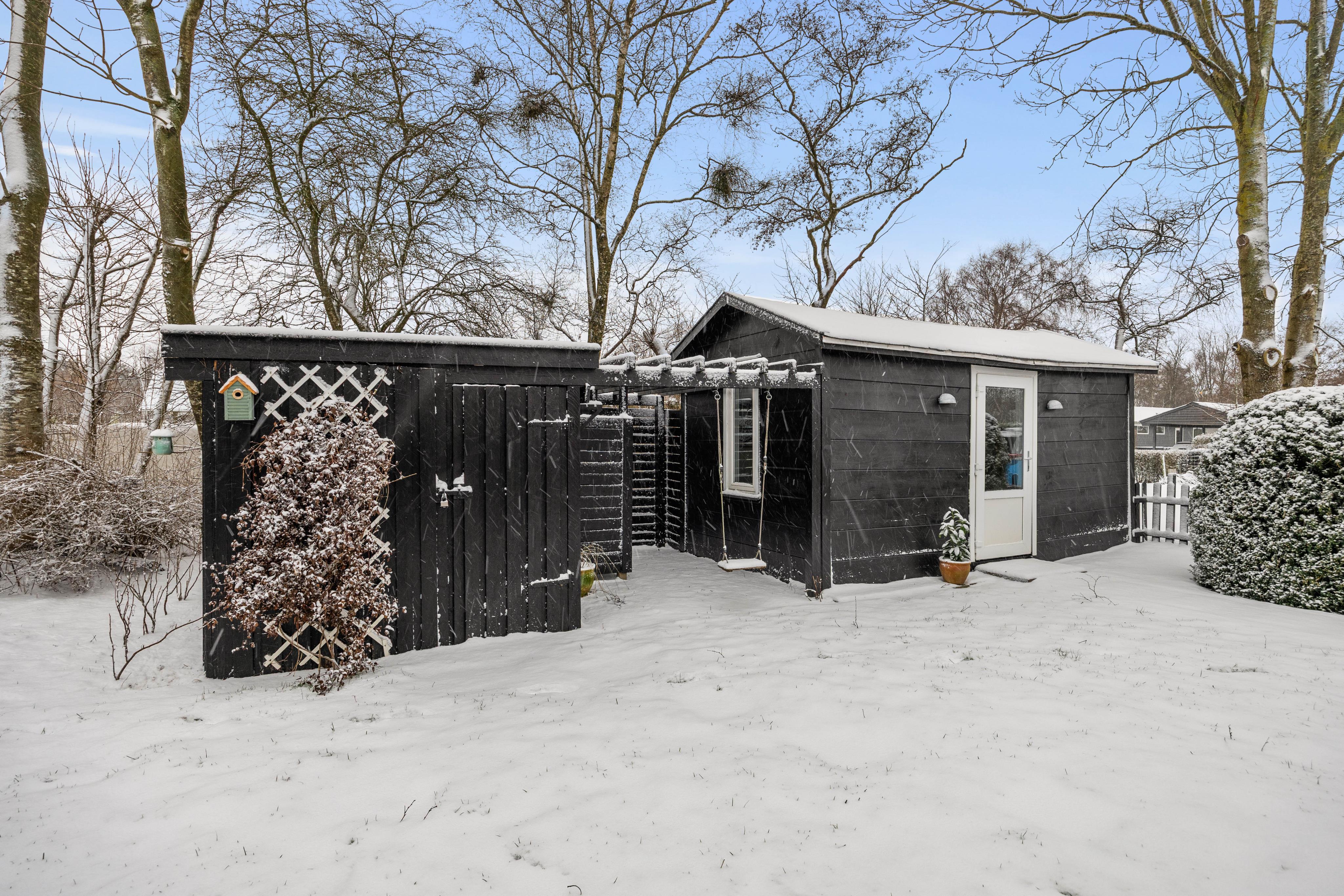 Sommerhusets udeareal strækker sig over en rummelig plænegrund på 1037 m², som indbyder til både leg og afslapning. Den delvist overdækkede terrasse giver jer mulighed for at nyde udendørslivet uanset vejret – her kan I grille, spise eller bare nyde roen. På grunden finder I desuden et skønt vildmarksbad, der tilbyder en unik mulighed for afslapning under åben himmel, samt et fint shelter i haven, som giver mulighed for hyggelige overnatninger tæt på naturen.