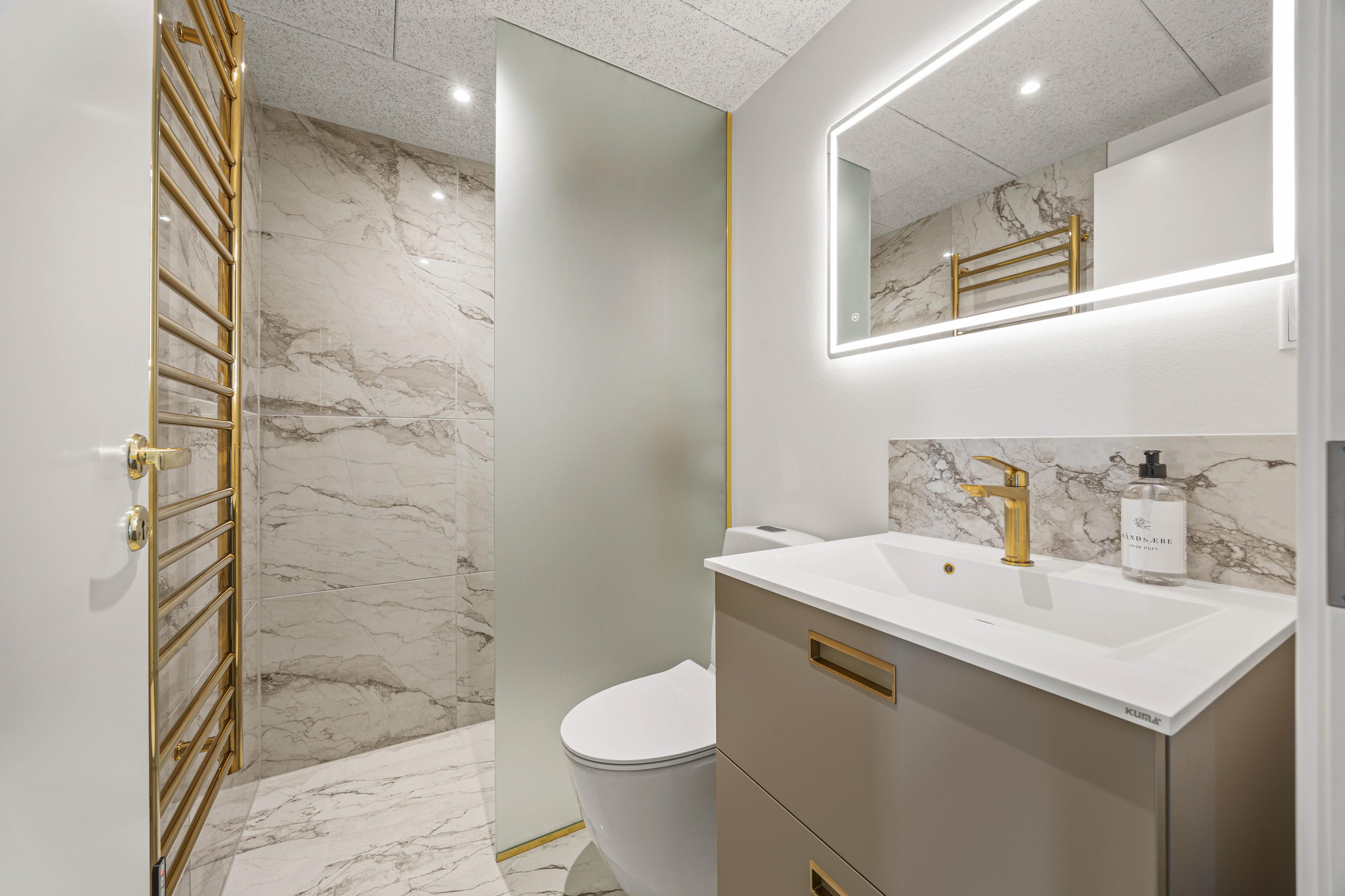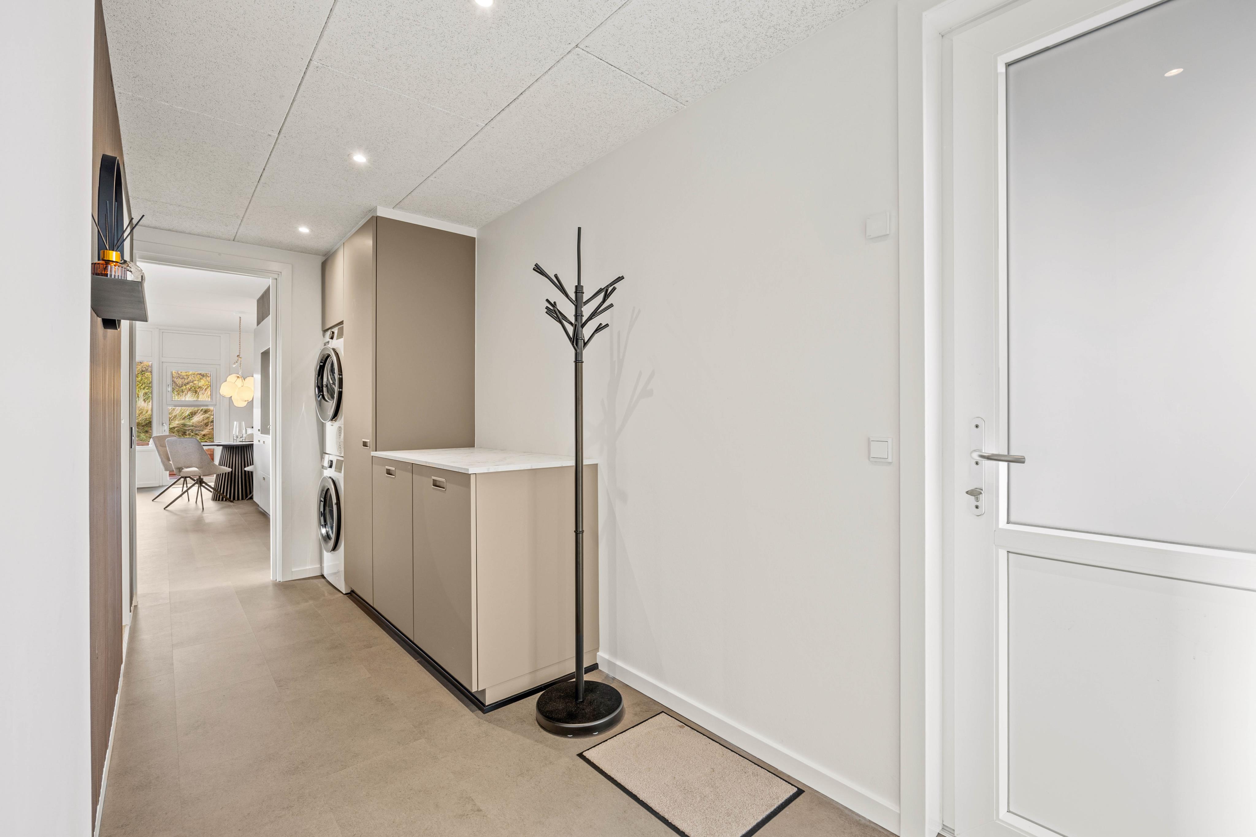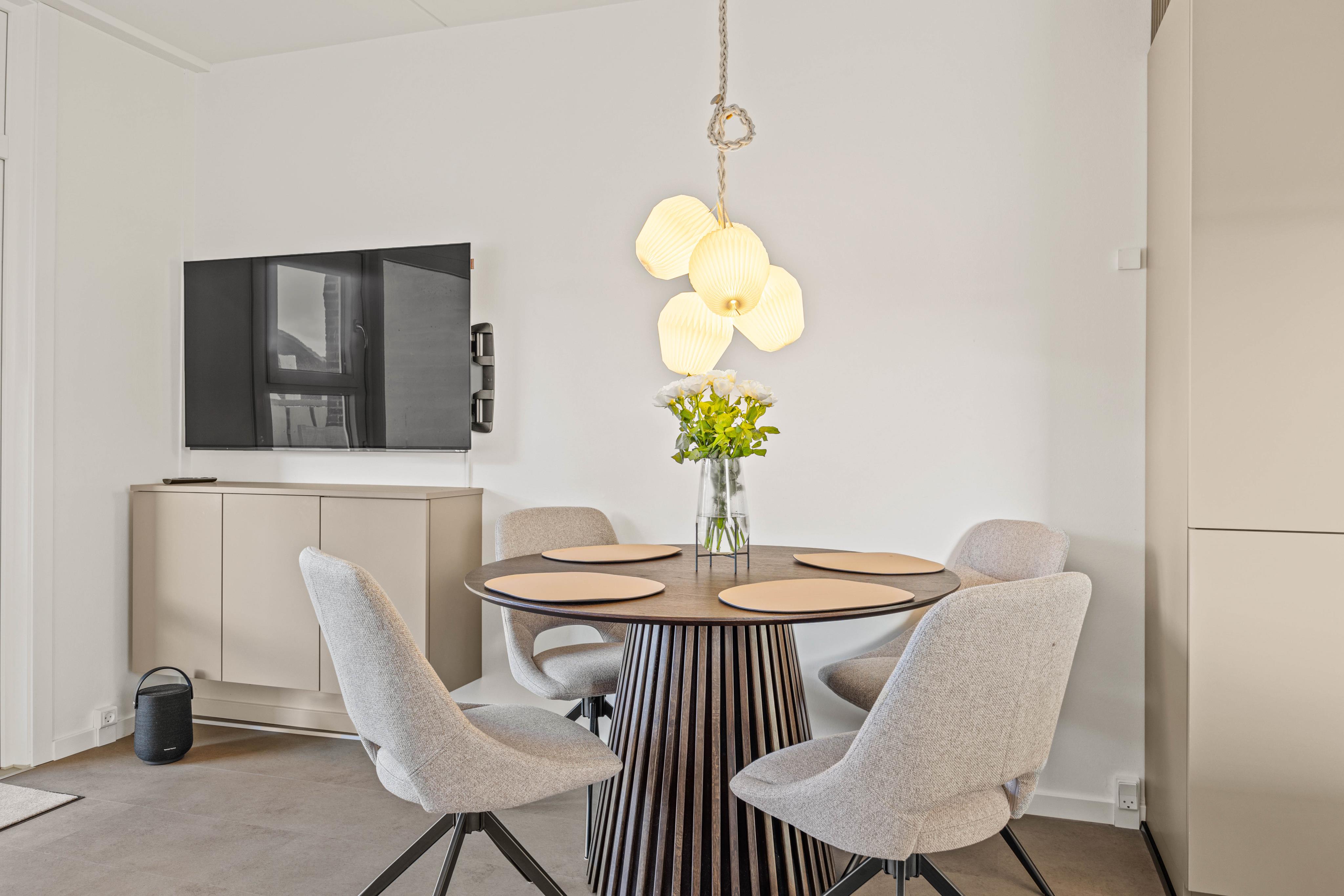 Ferielejligheden er total renoveret i 2025, og venter jer her et hyggeligt soveværelse med en behagelig dobbeltseng, som kompletteres af et stilfuldt badeværelse med gulvvarme. Det moderne og veludstyrede køkken med opvaskemaskine gør det let at tilberede måltider, og med vaskemaskine og tørretumbler bliver de daglige gøremål legende lette, så I har tid til at nyde ferien til fulde.