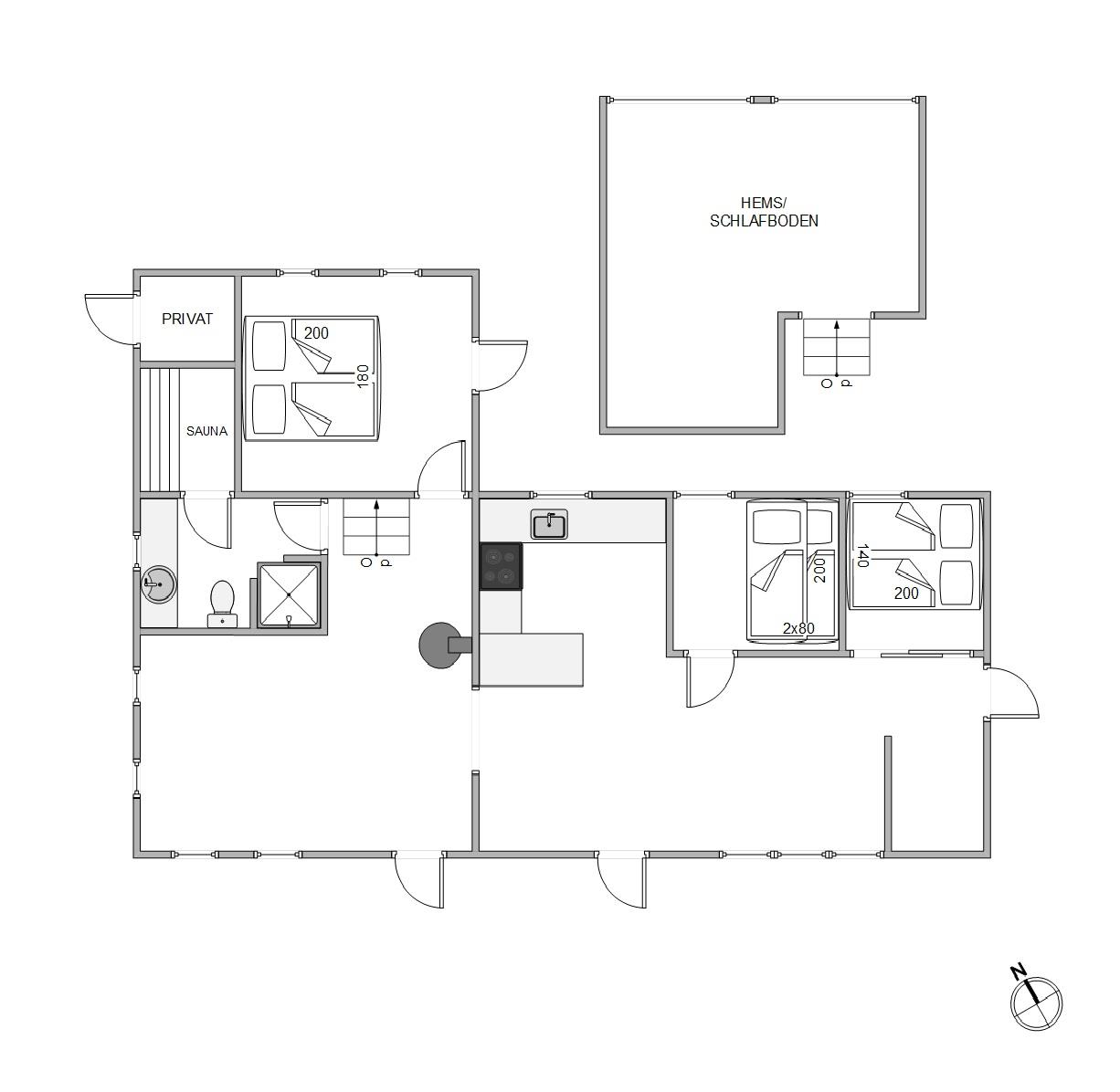 Dette feriehus har fået et facelift og her er der ikke noget overladt til tilfældighederne. Den hyggelige og smagfulde indretning er gennemtænkt og udført med smag for detaljen. I feriehuset finder I plads til 5 personer med sovepladser fordelt på tre hyggelige soveværelser, de to udstyret med dobbeltsenge.
