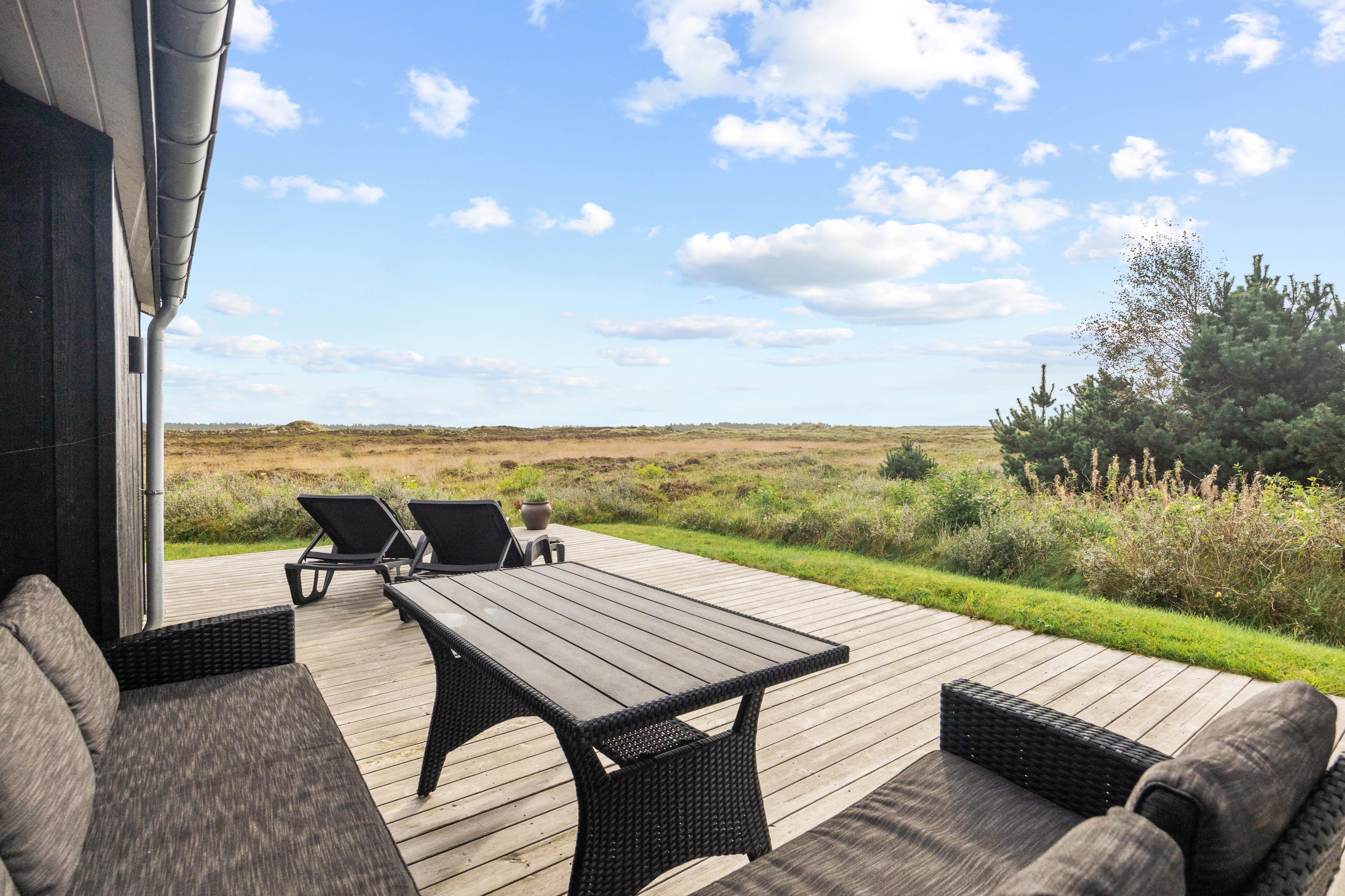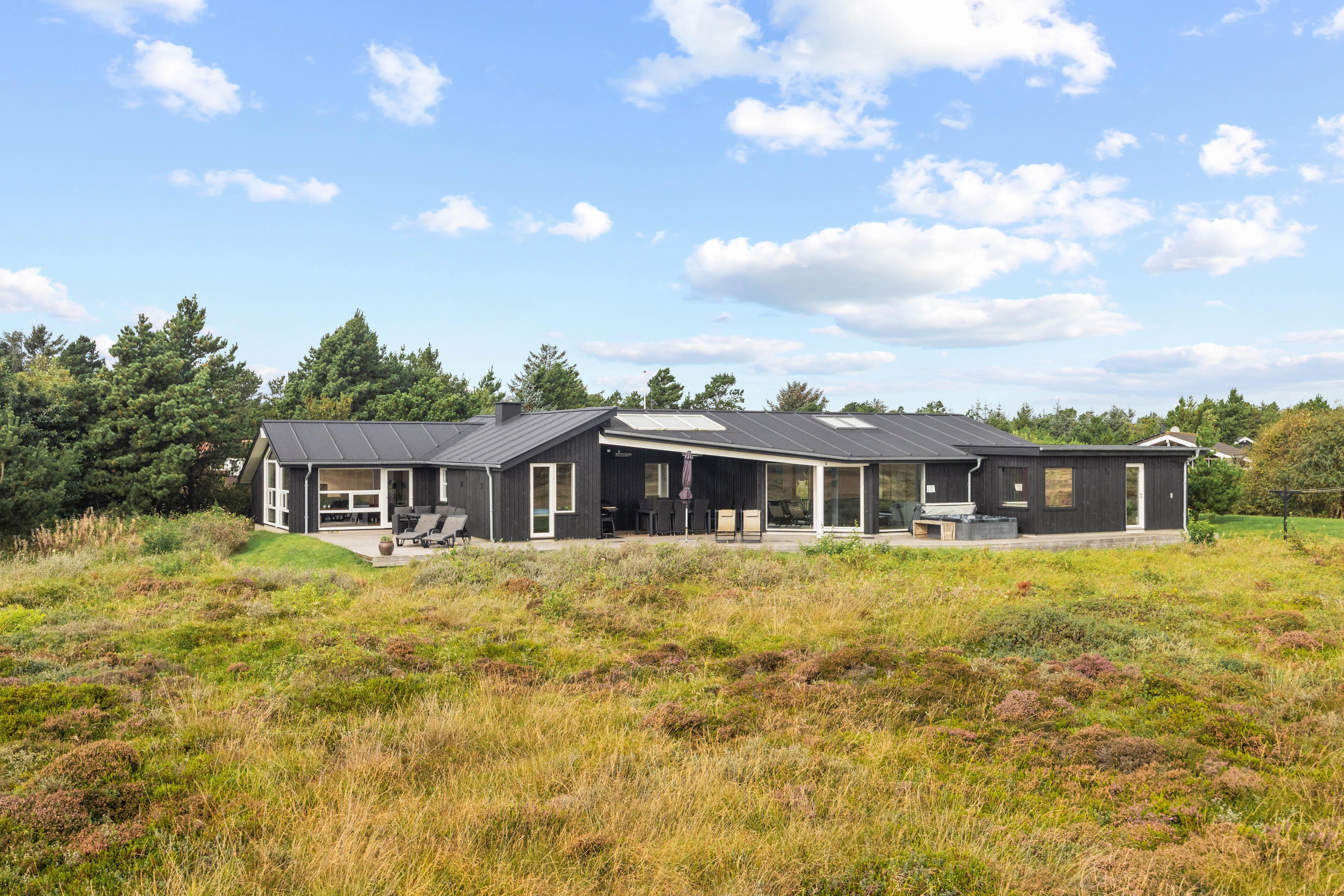 Dette moderne aktivitetshus til 8 personer i Henne Strand har alt, hvad feriehjertet begærer: Plads til hele familien, aktivitetsområde med billard og bordtennis, wellness med udendørs spa og udesauna og sidst, men ikke mindst, en fantastisk beliggenhed lige ud til den uspolerede hede og kun 10 minutters gang fra Henne Strands centrum. Hunden er desuden hjerteligt velkommen.