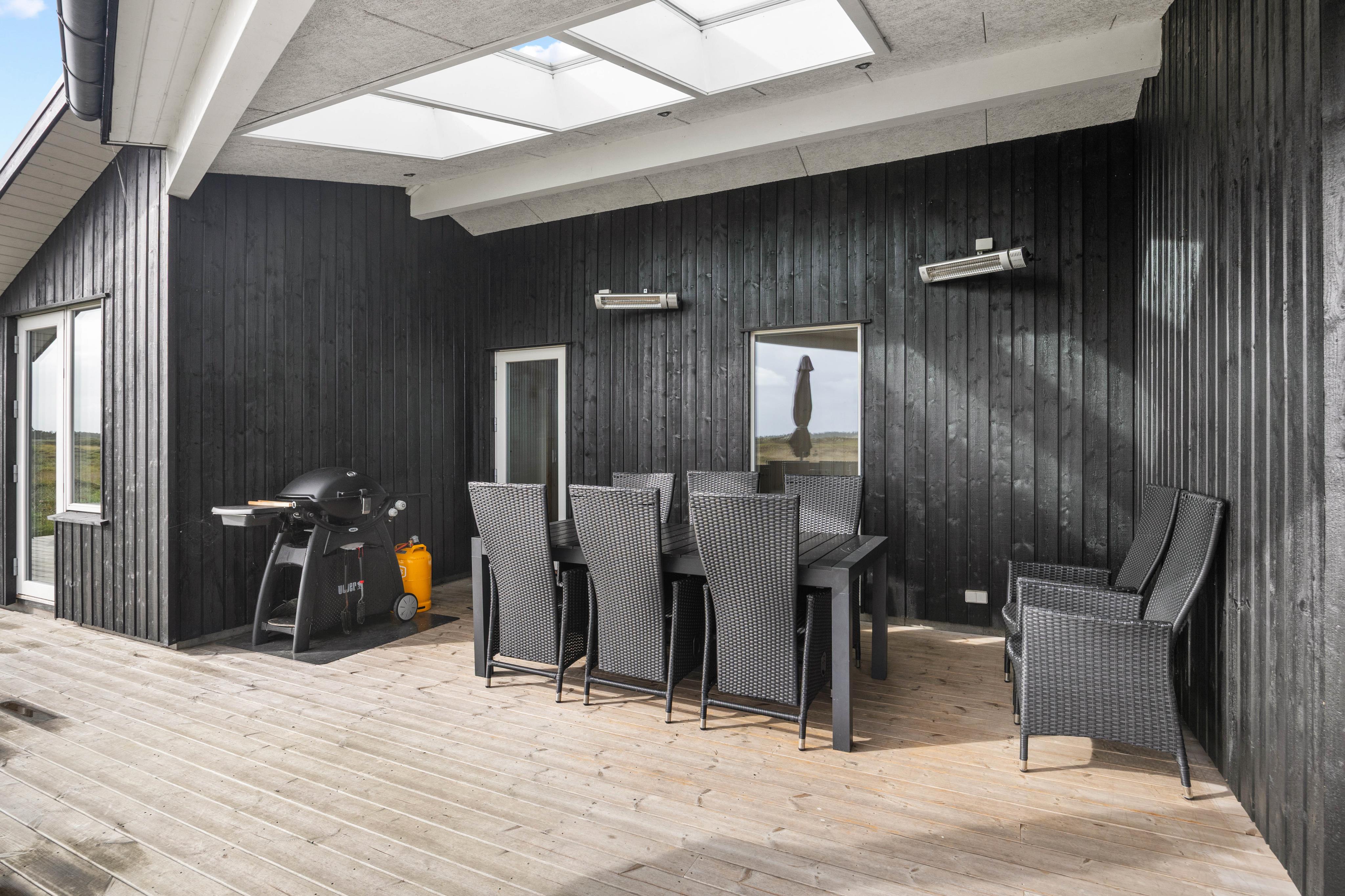 Dette hus er unikt beliggende. Den frie udsigt over heden, den rummelige terrasse indbyder til ophold og solbadning på alle tidspunkter. Det beskyttede og overdækkede hjørne med varmeapparaterne supplerer dette unikke udendørsområde perfekt. At betragte stjernehimlen fra poolen efterlader én i forundring over skaberen, og man slapper af her på et øjeblik...