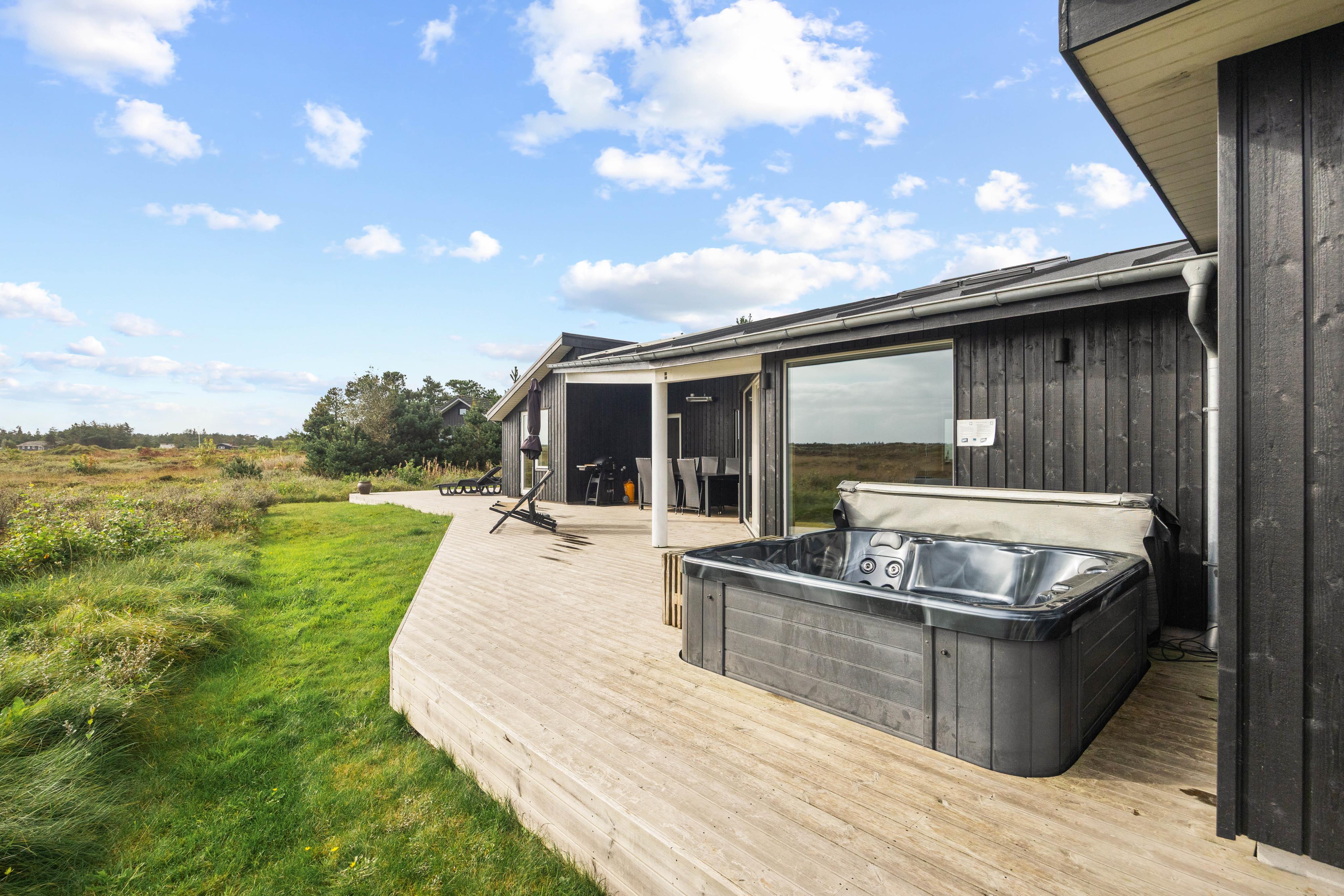 Moderne aktivitetshus i Henne Strand med udendørs spa og sauna