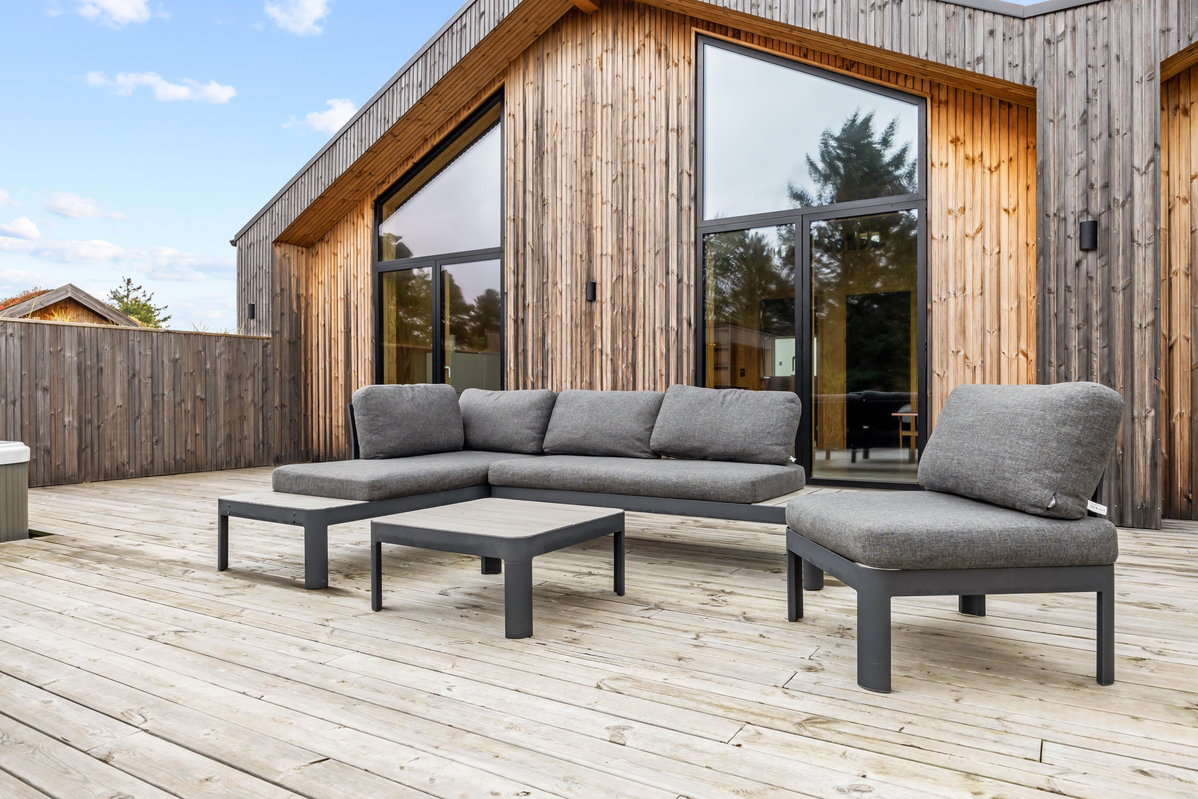 På sommerhusets udeområde kan I se frem til at nyde masser af afslapning. Her venter jer nemlig en udespa og en udesauna, der står klar til at forkæle jer med ekstra afslapning i løbet af ferien, så I kan komme helt ned i gear. Der er desuden en udebruser* I kan skylle jer under.