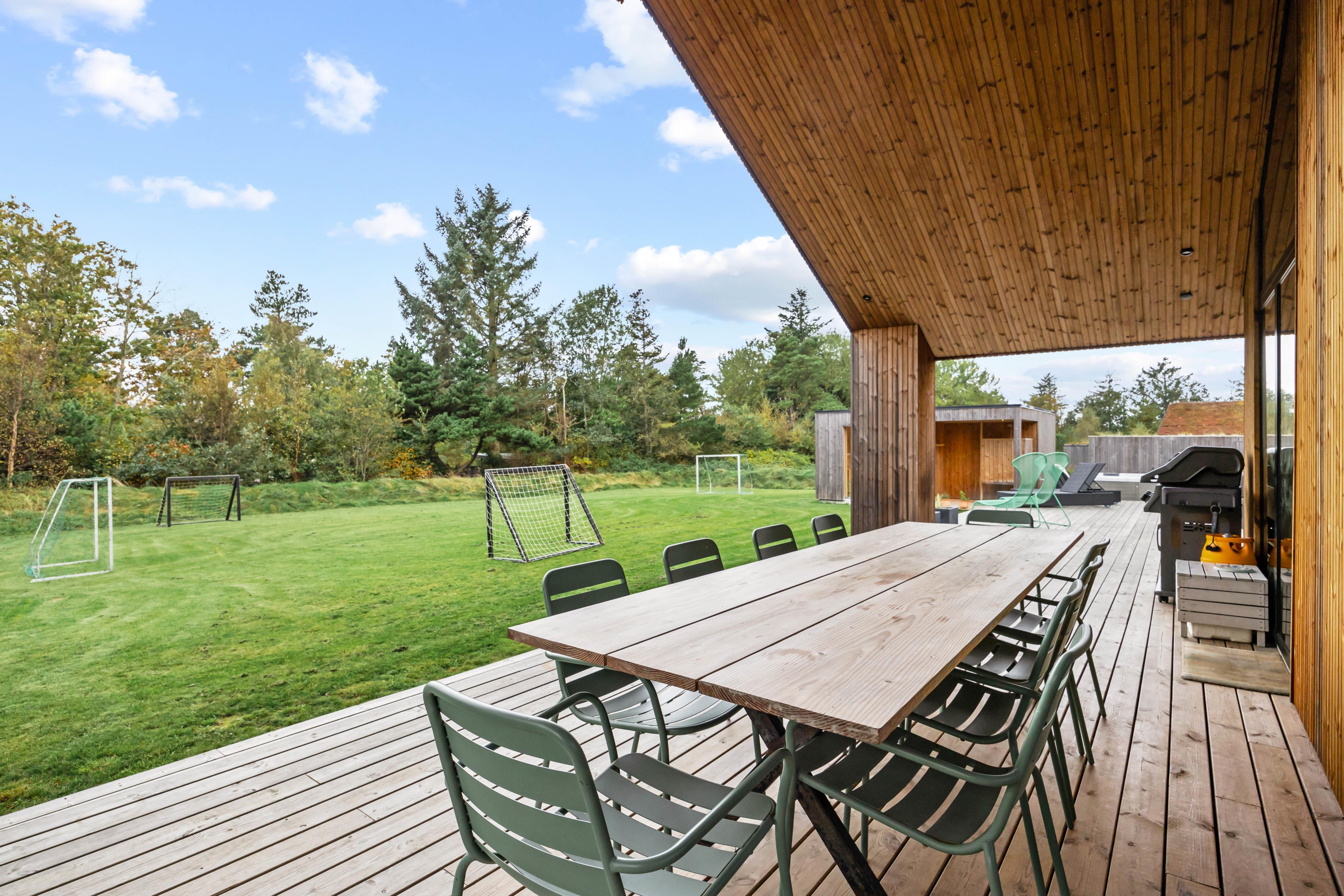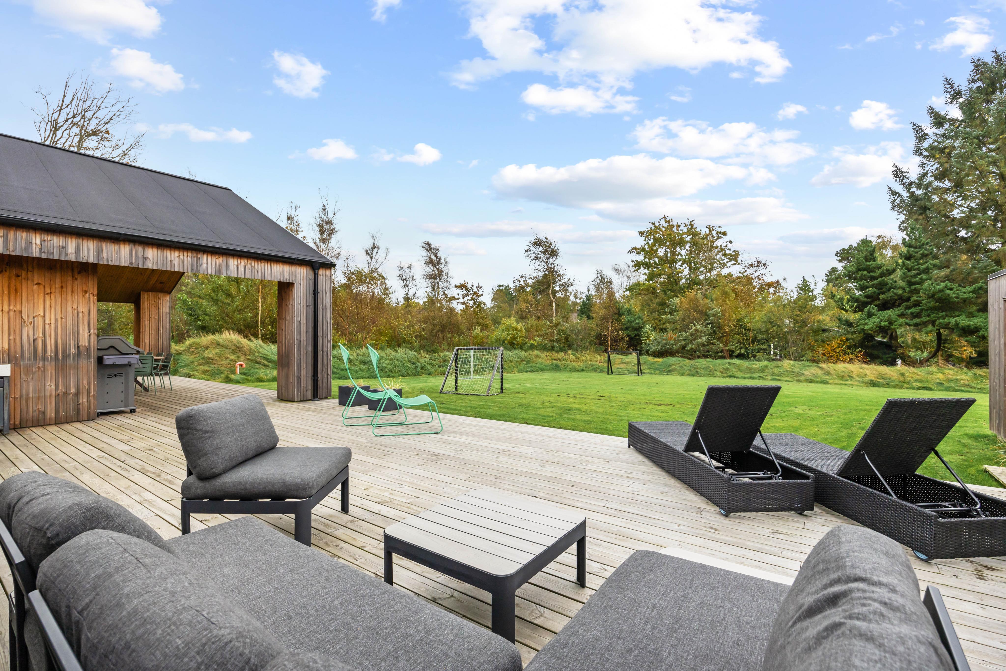 Sommerhusets terrasse byder desuden på havemøbler og liggestole, som I kan finde jer godt til rette i, mens I slapper af i solen. Hvis I får brug for en pause fra solen kan I rykke ind under den overdækkede del af terrassen.