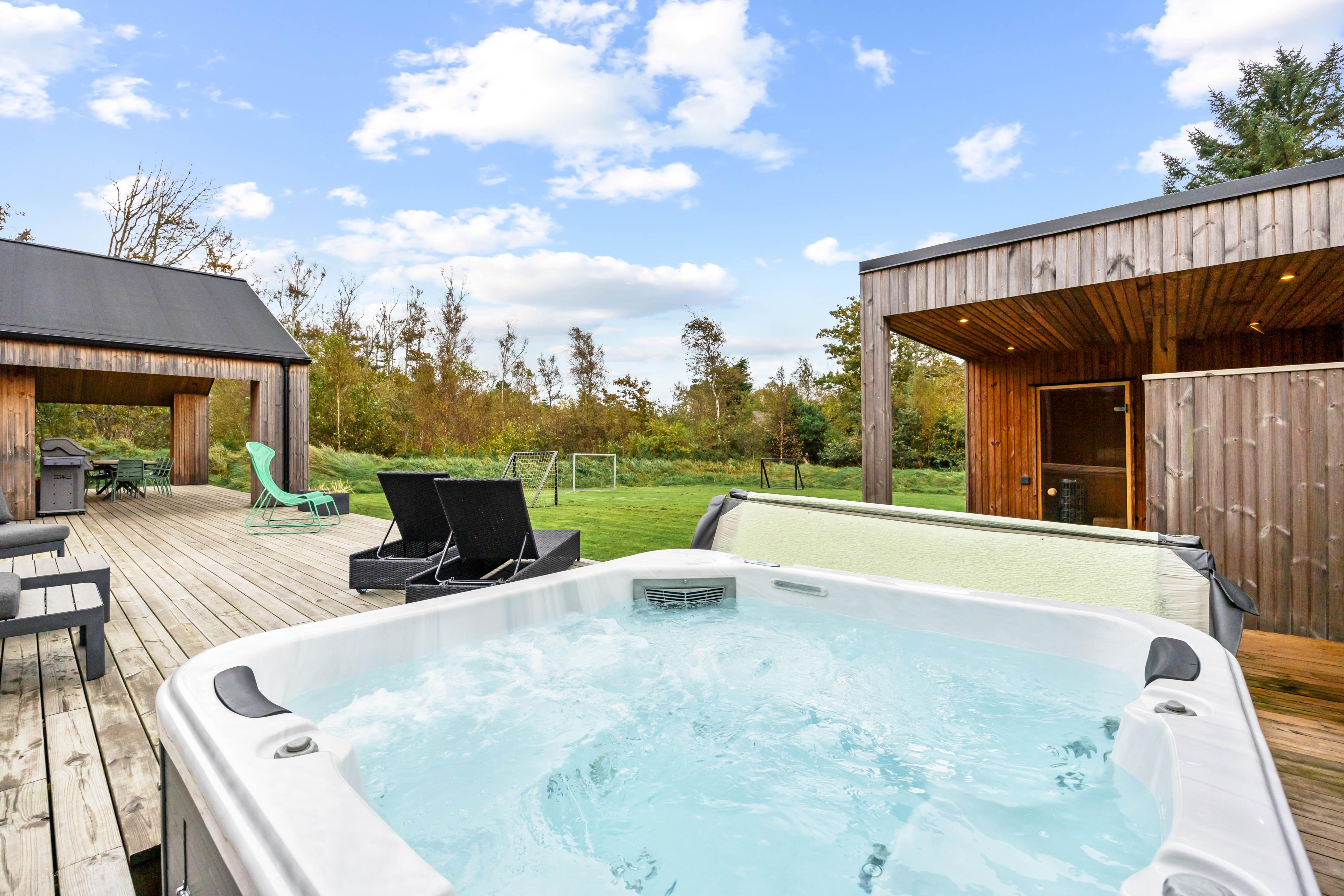 Lækkert aktivitetshus med udespa, udesauna og udekøkken
