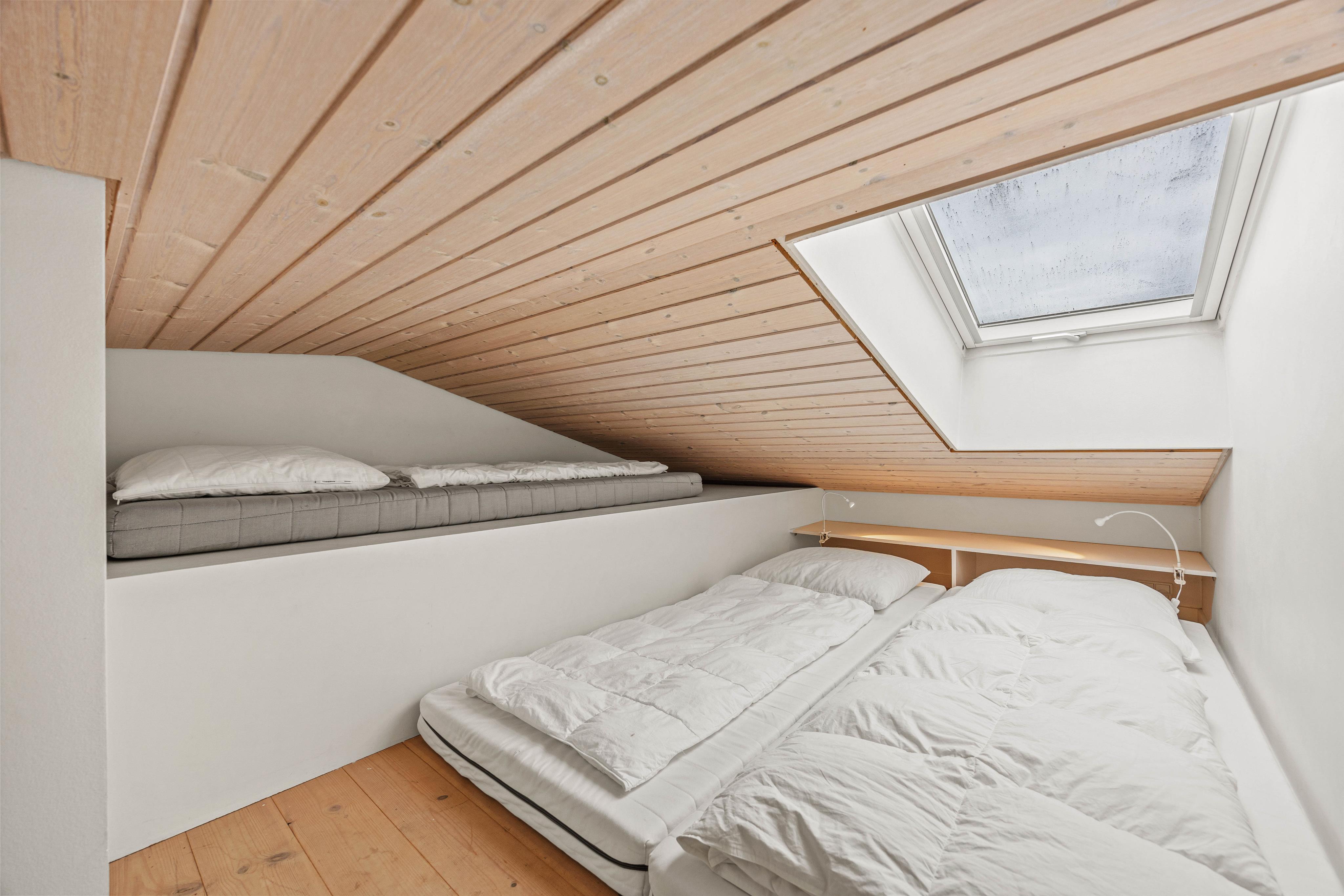 I det 103 kvadratmeter store sommerhus er der 3 soveværelser samt en hems, som børnene helt sikkert gerne vil have førsteret til. 2 badeværelser med gulvvarme sikrer, at I ikke skal stå i kø til toilettet om morgenen.