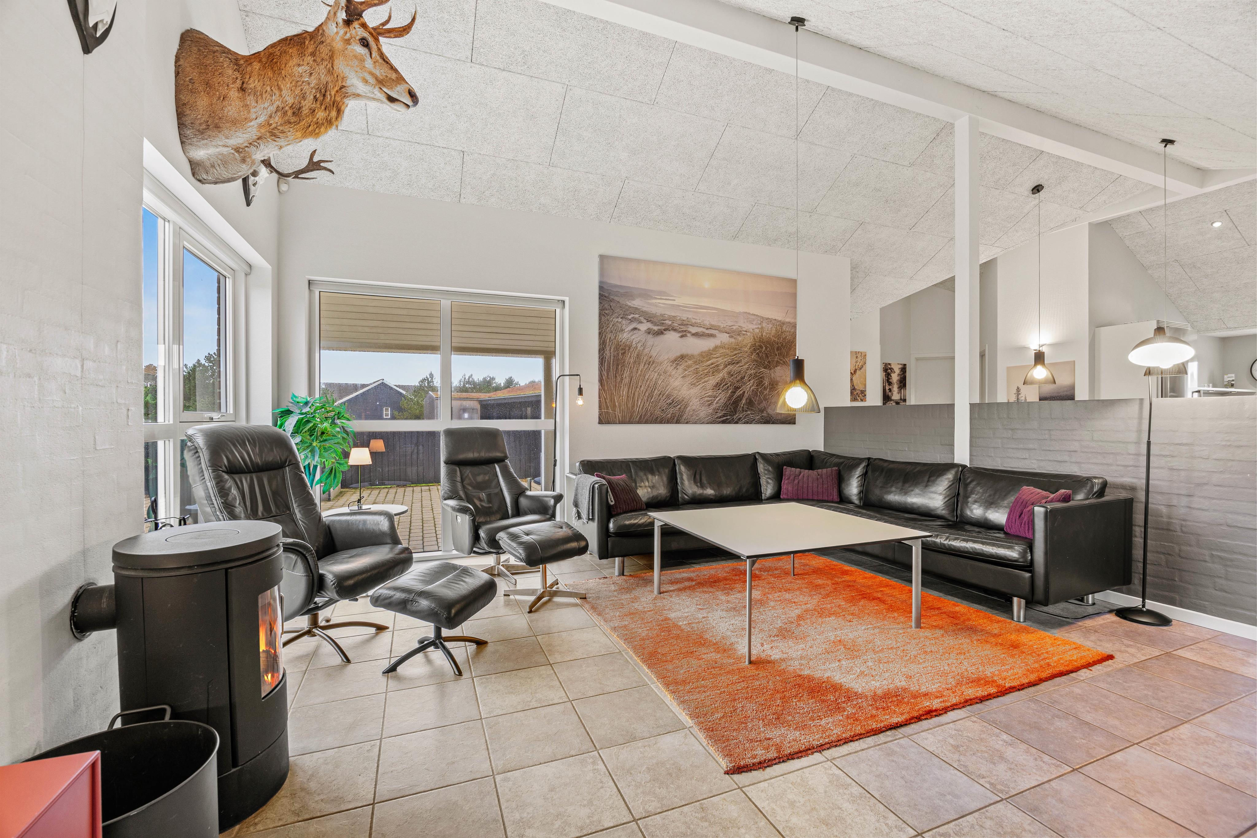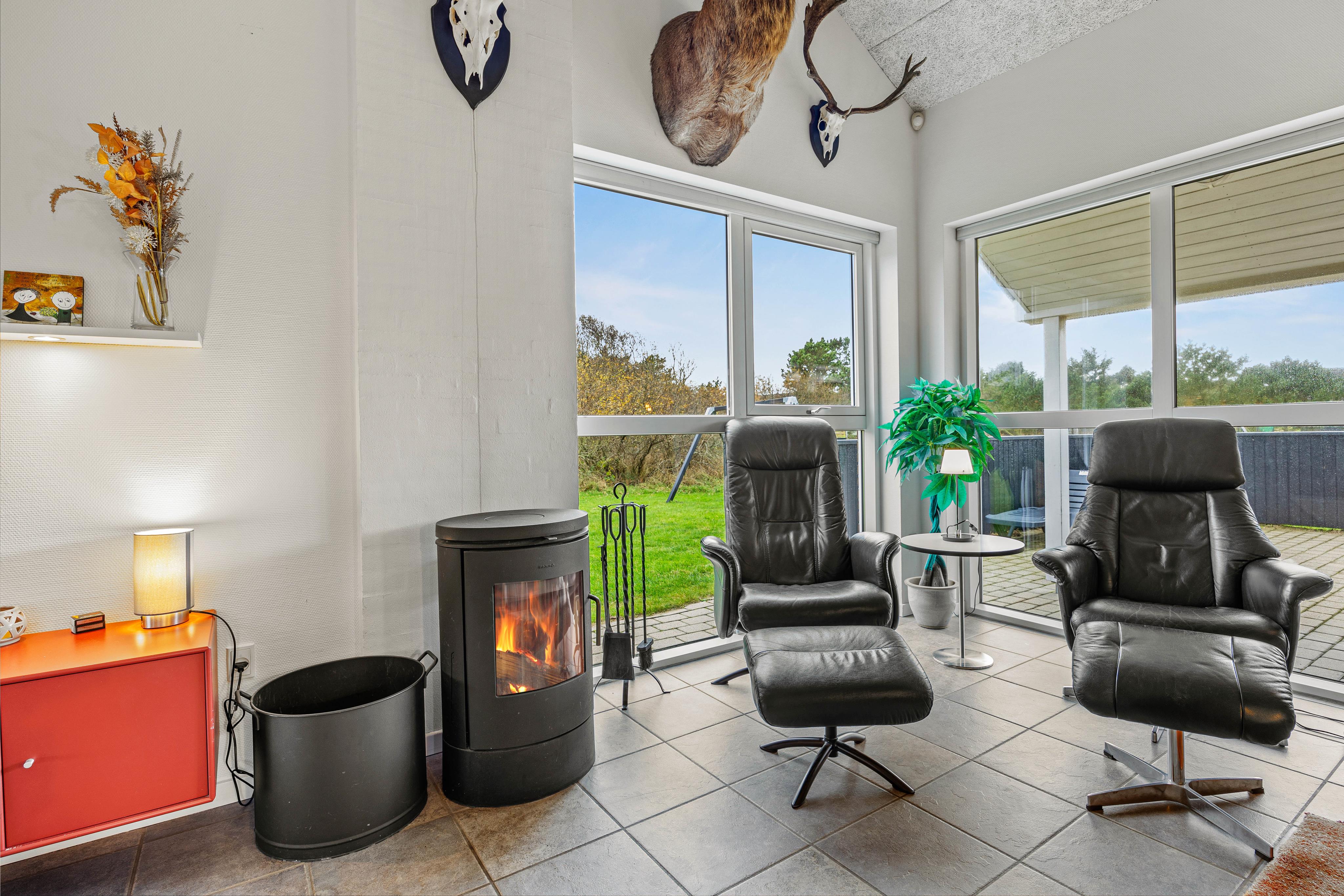 Sommerhusets køkken, stue og spiseplads ligger i åben forbindelse og danner tilsammen alrummet, som vil blive jeres store samlingspunkt på ferien. Her kan I være sammen om at lave mad, spille spil og se film. Brændeovnen sørger for at sprede en dejlig varme og er samtidig med til at fuldende den hyggelige feriestemning. I stuen har I desuden gulvvarme.