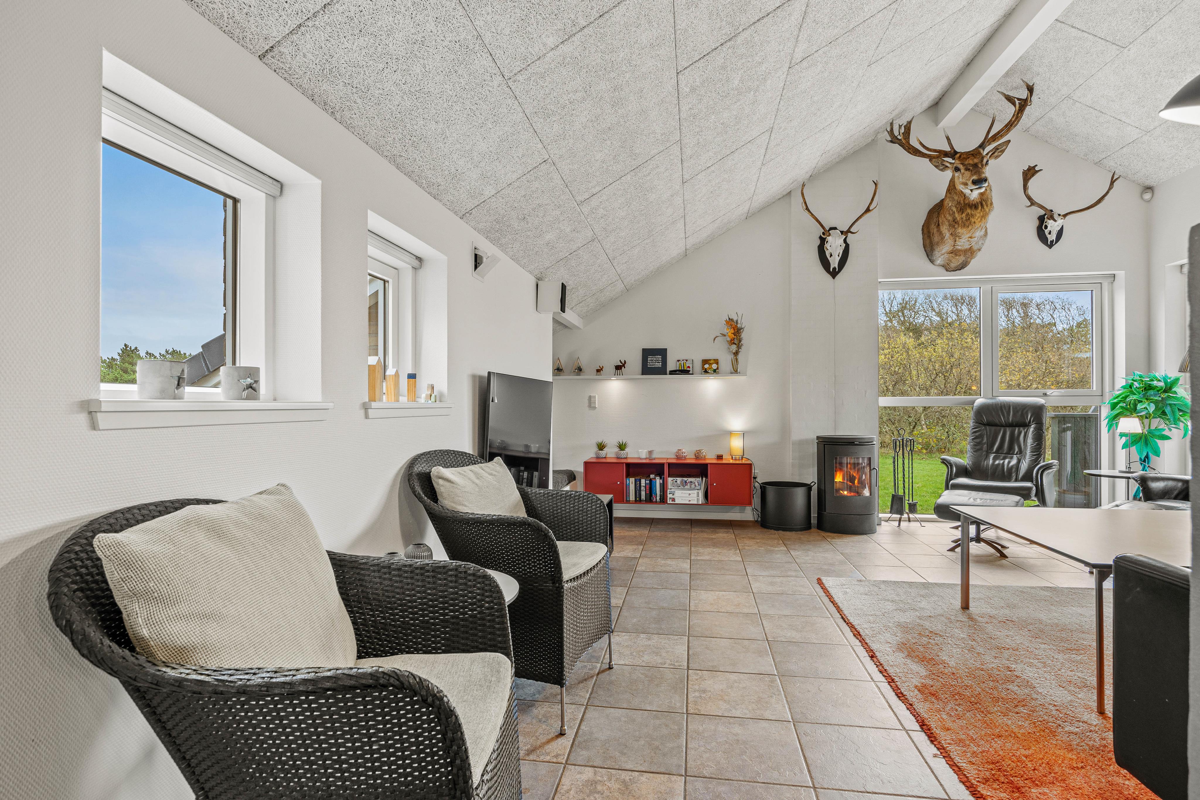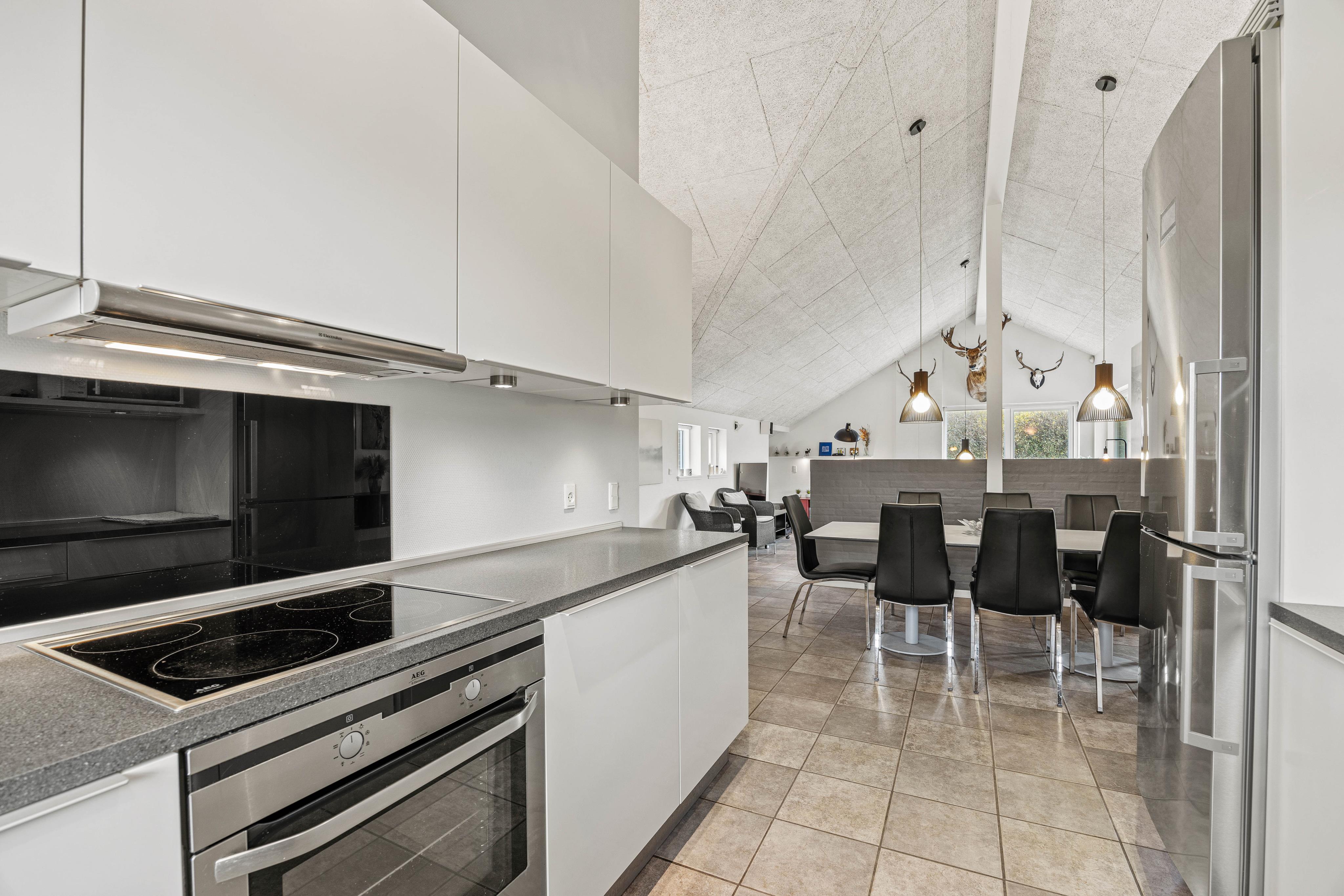 Det er et meget flot indrettet sommerhus med masser af opbevaringsplads i soveværelserne. Et meget veludstyret køkken, hvor man også kan lave mad med flere personer. Stuen indbyder til hyggelige aftener ved pejsen eller foran fjernsynet. Det hele er generøst designet, og der er også plads til 8 personer ved det store spisebord. Perfekt til spilaftener i godt selskab. På terrassen er der også rigeligt med havemøbler, liggestole og en kulgrill. Af og til løber hjortene endda gennem haven, hvilket altid er en fantastisk oplevelse. Der er indkøbsmuligheder i nærheden, og stranden ligger kun et par minutter væk.