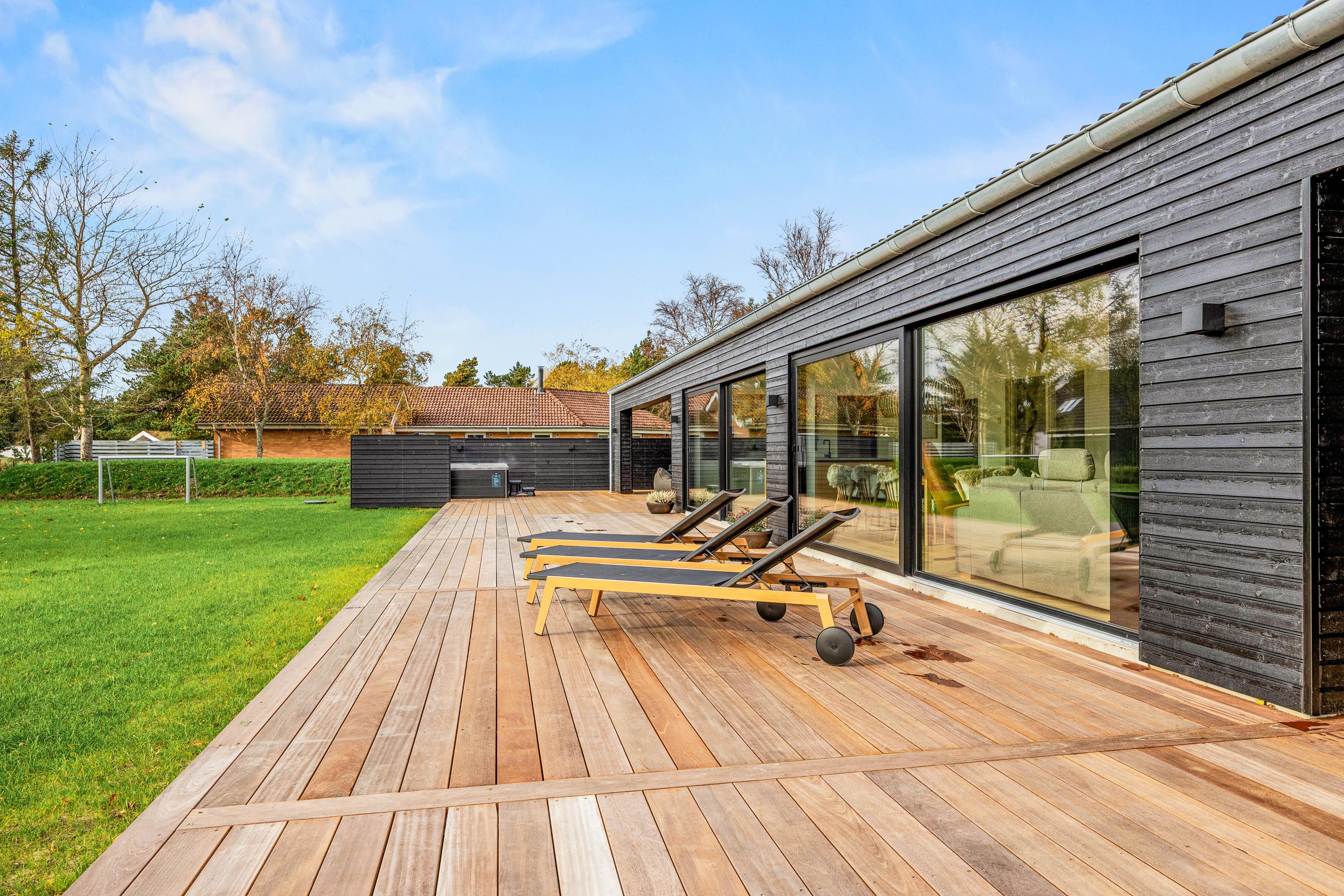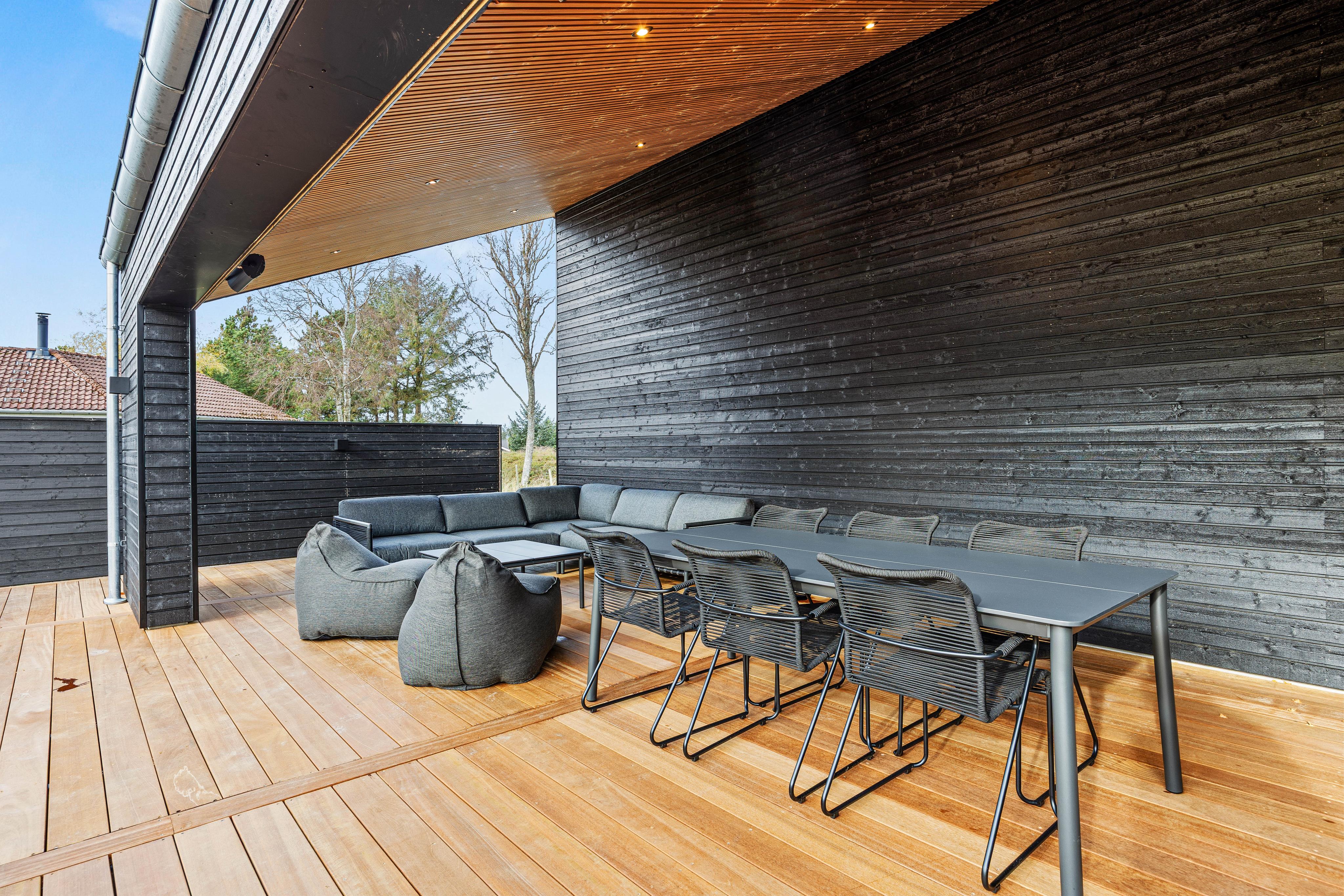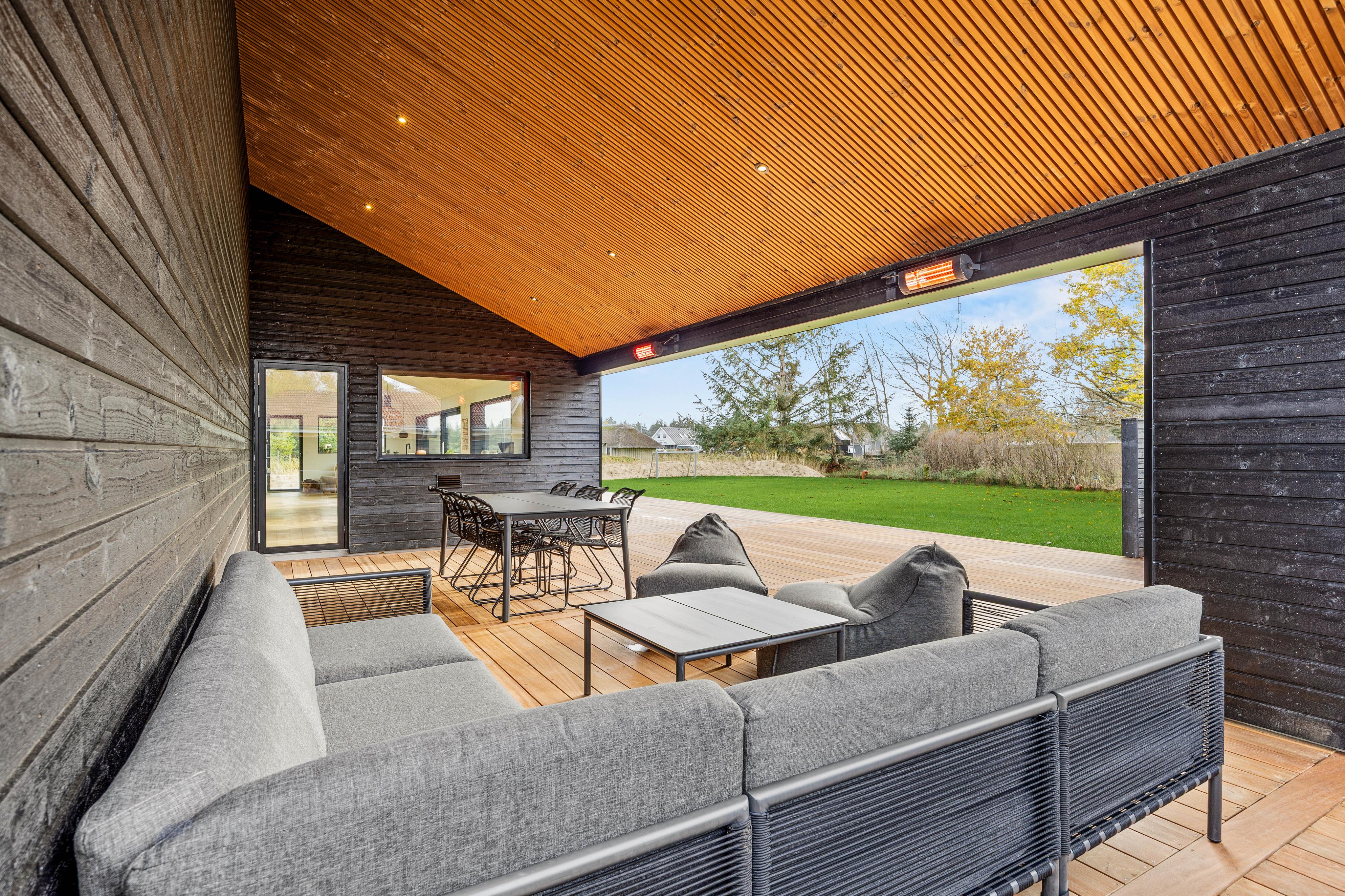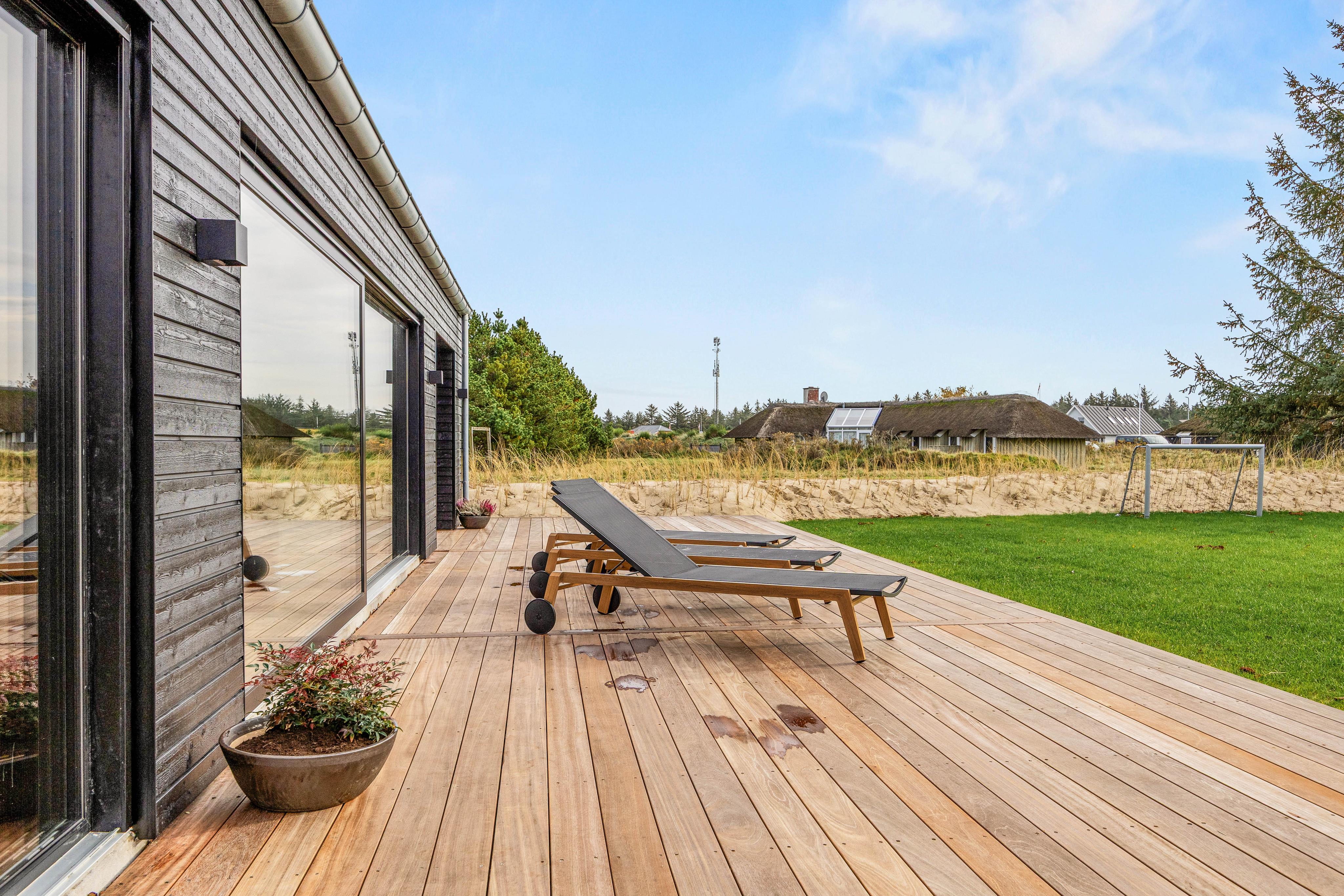 Sommerhuset i Vejers tilbyder en imponerende grund på 1552 m², der stiller et privat udendørsparadis til rådighed for jer. Slap af på den åbne eller overdækkede terrasse på i alt ca. 60 m2, mens børnene leger i den rummelige have. Nyd luksuriøse øjeblikke i et udendørs spabad og oplev ultimativ komfort takket være varmelamper på en af de to overdækkede terrasser. På terrasserne kan I slappe af i komfortable loungemøbler, der indbyder til afslapning.