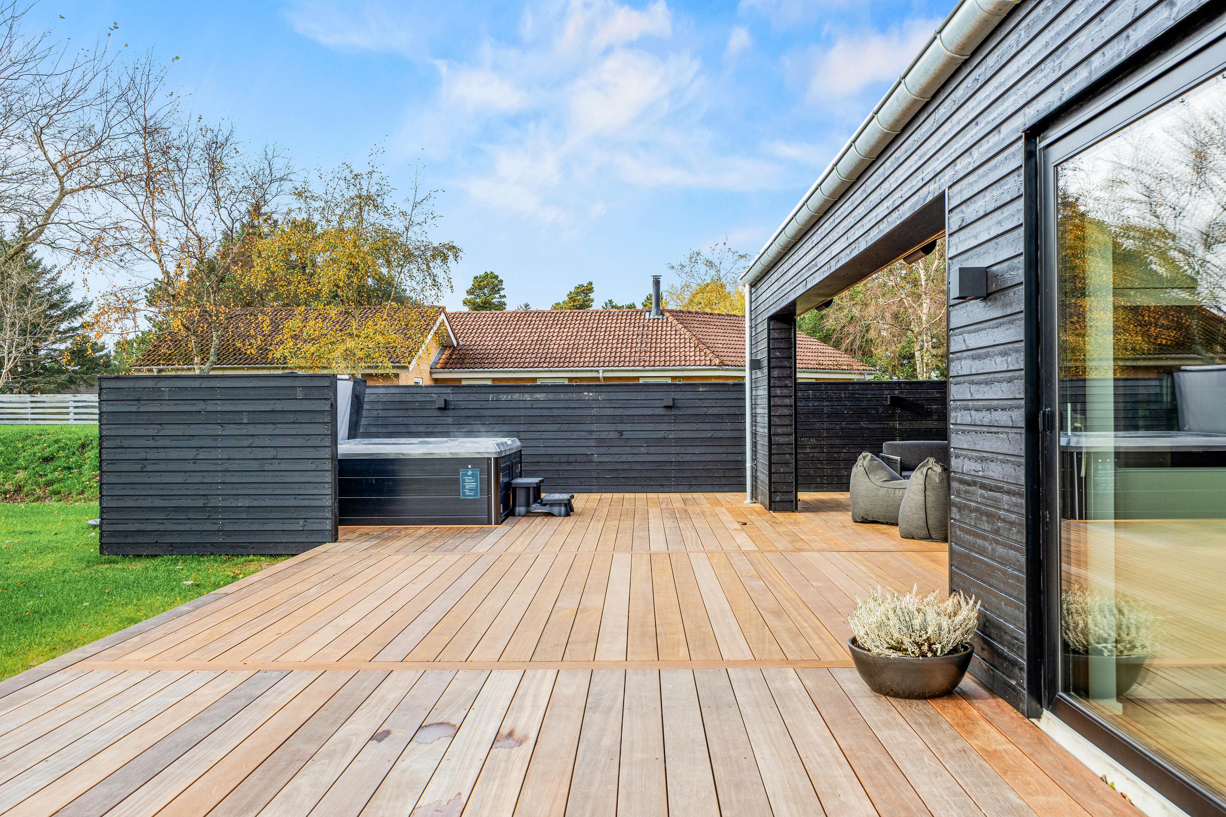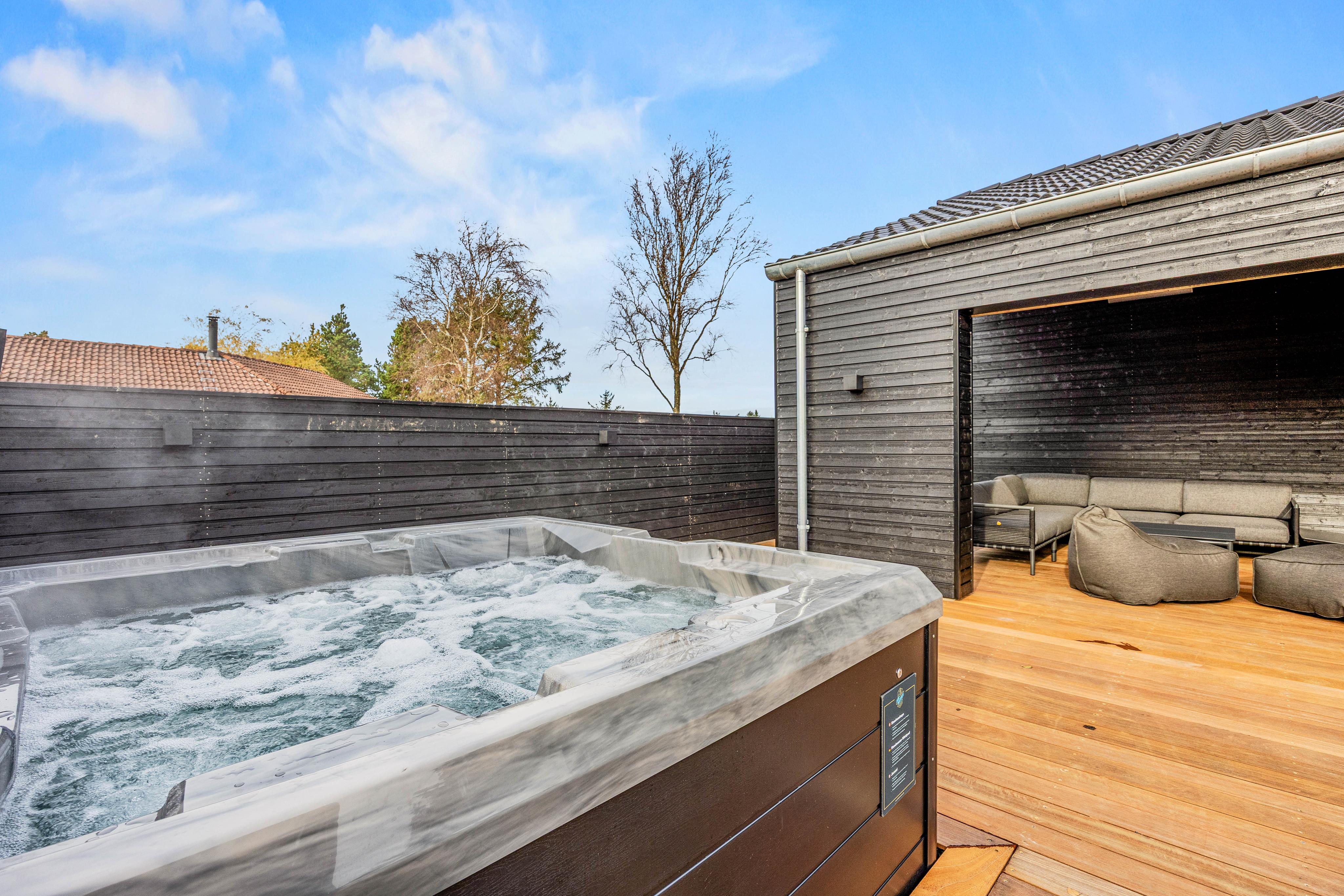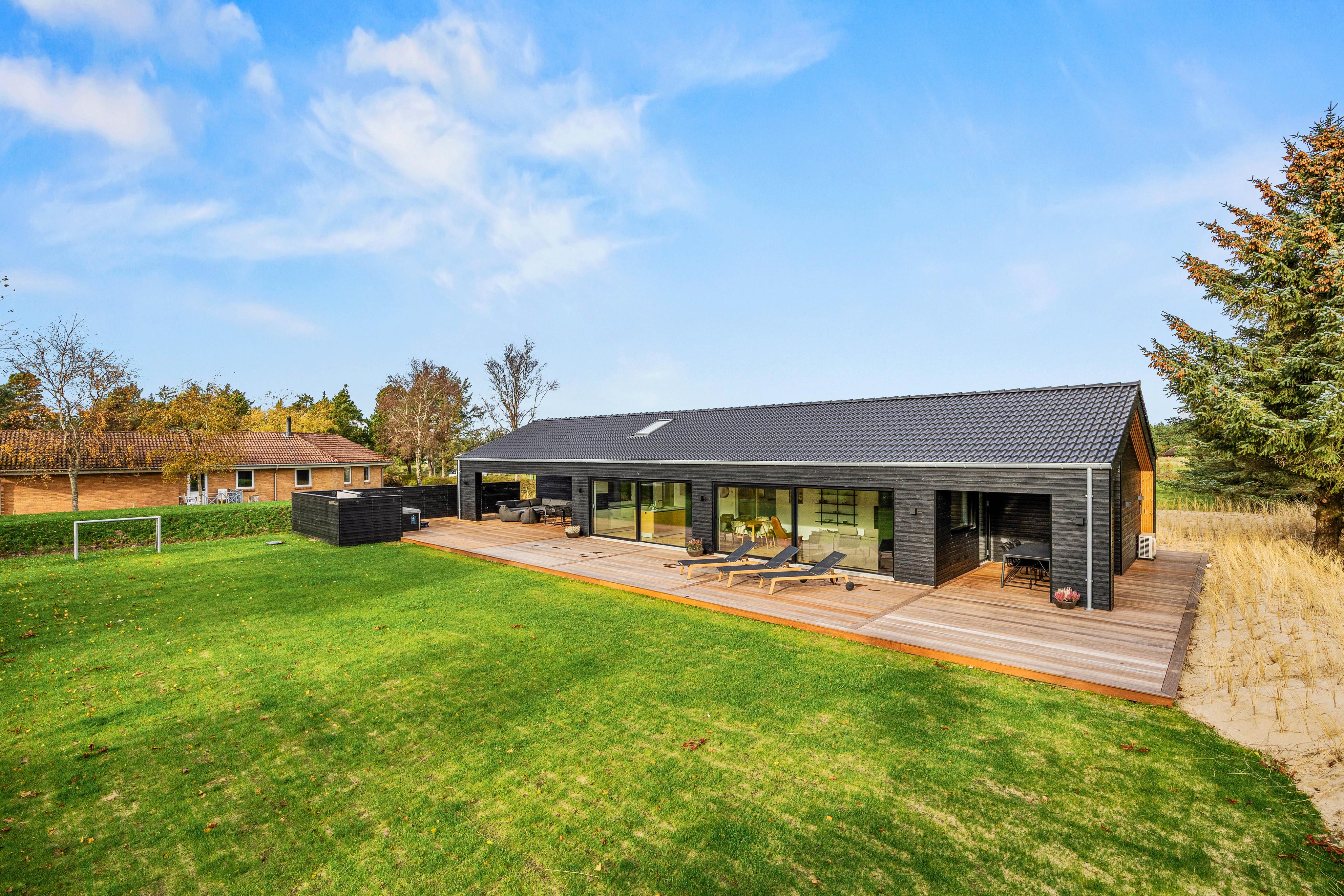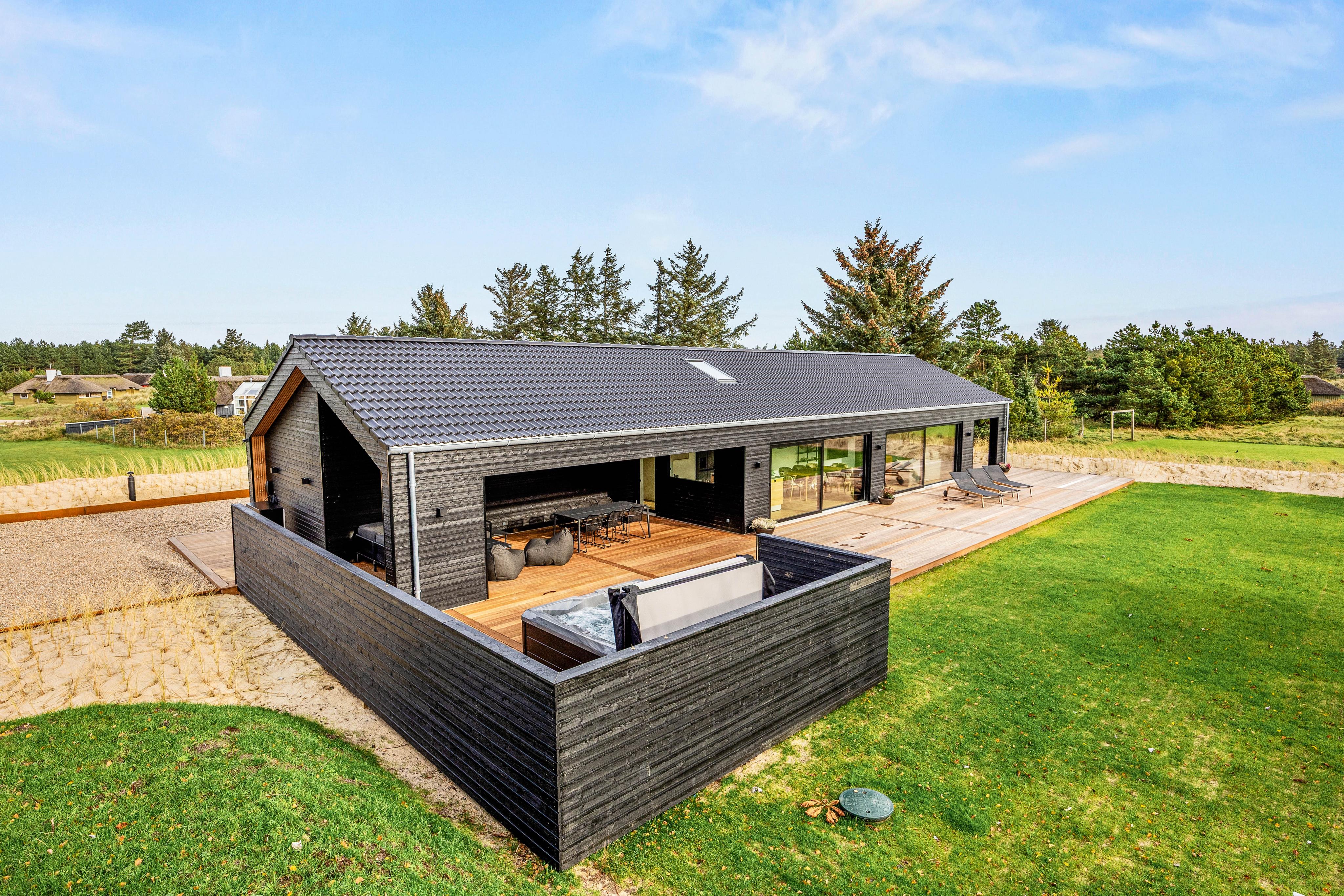 Sommerhuset i Vejers tilbyder en imponerende grund på 1552 m², der stiller et privat udendørsparadis til rådighed for jer. Slap af på den åbne eller overdækkede terrasse på i alt ca. 60 m2, mens børnene leger i den rummelige have. Nyd luksuriøse øjeblikke i et udendørs spabad og oplev ultimativ komfort takket være varmelamper på en af de to overdækkede terrasser. På terrasserne kan I slappe af i komfortable loungemøbler, der indbyder til afslapning.