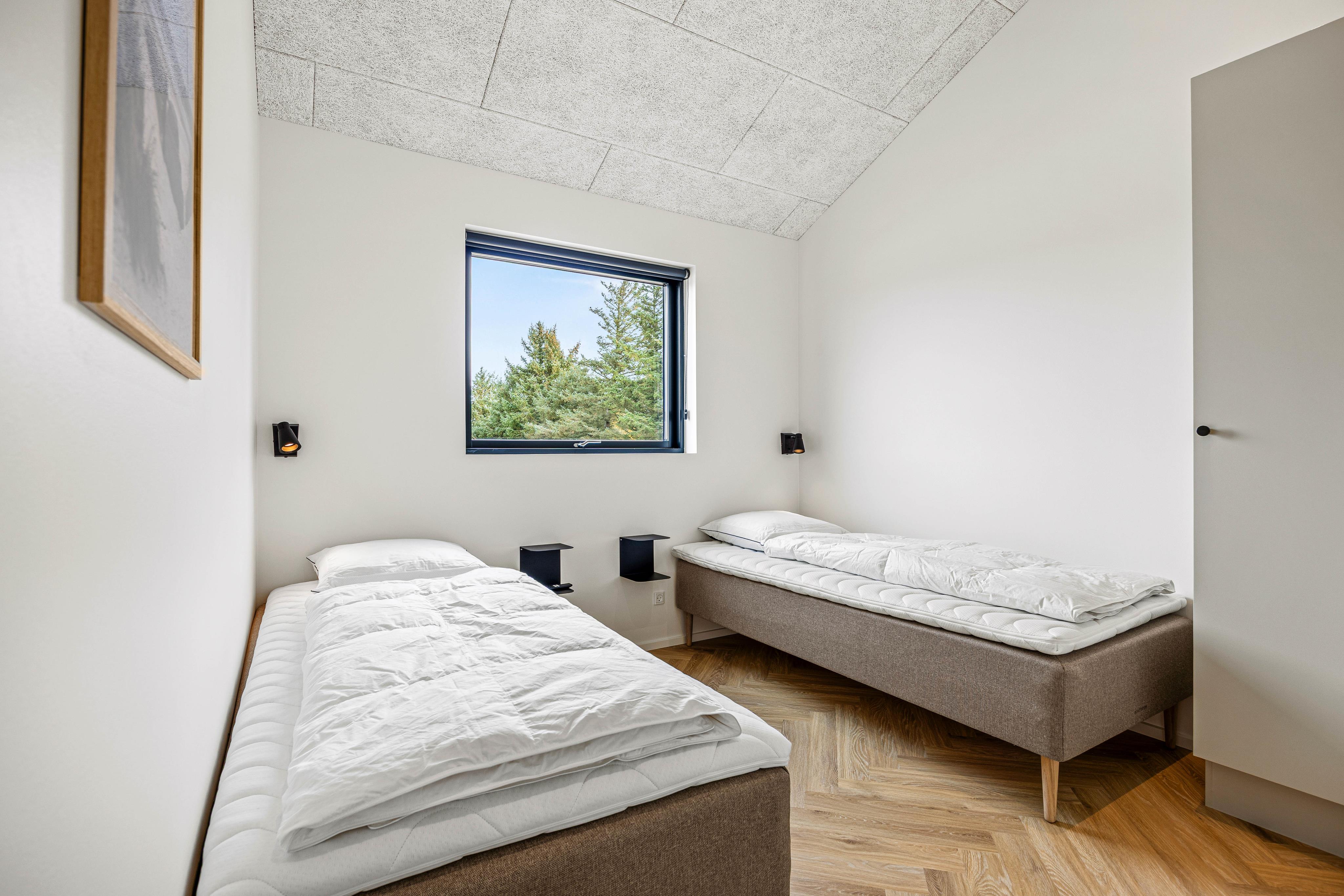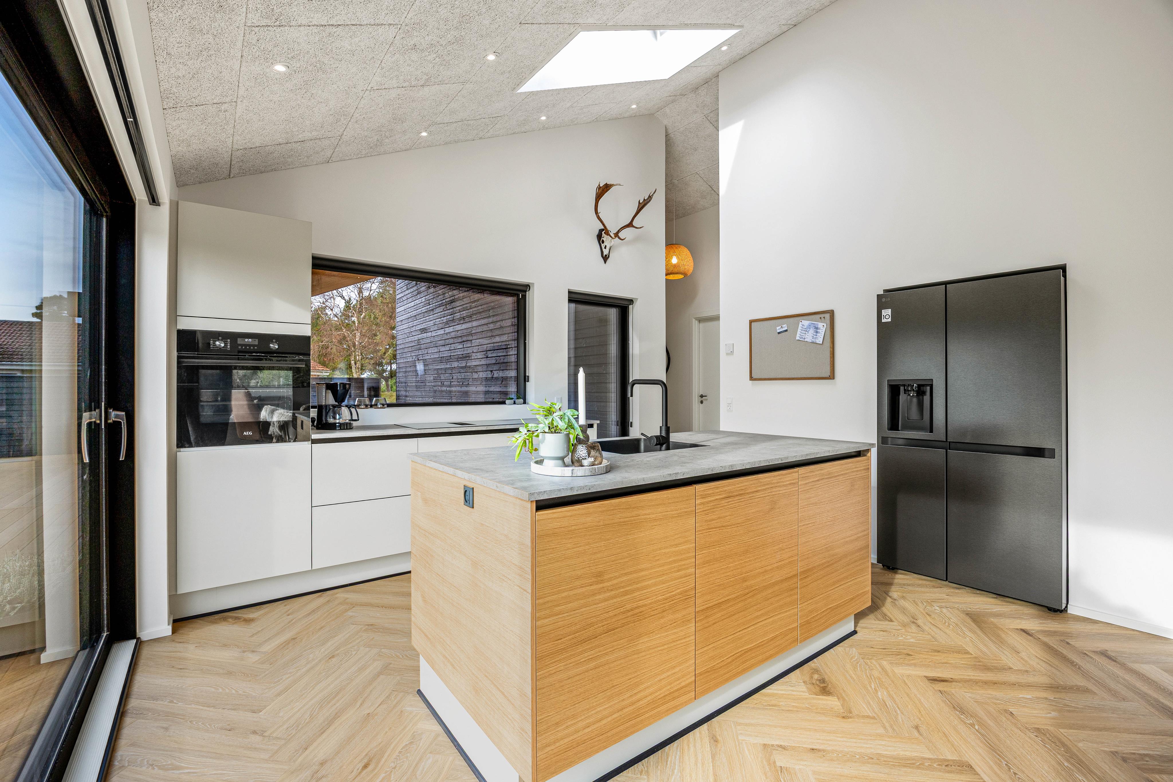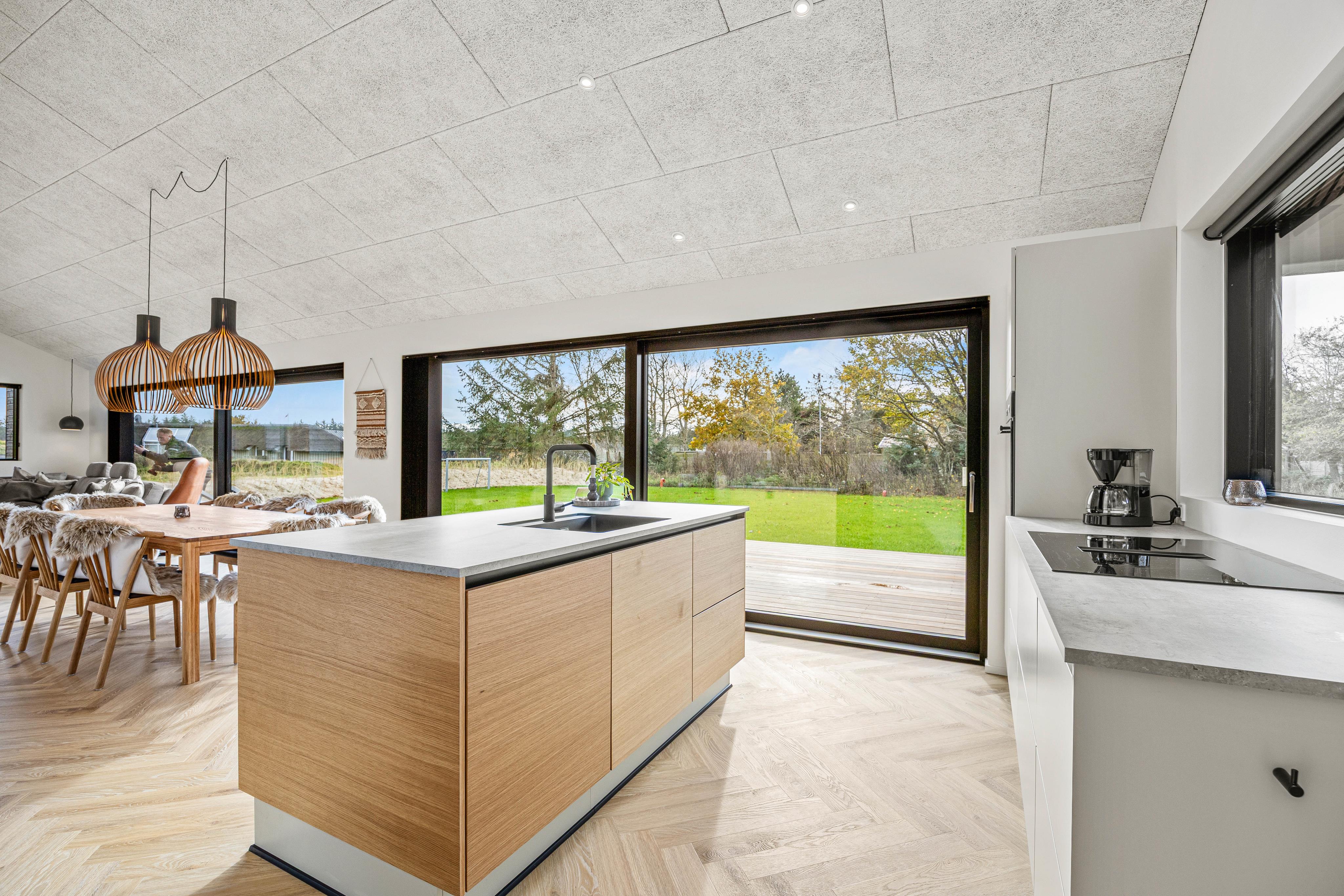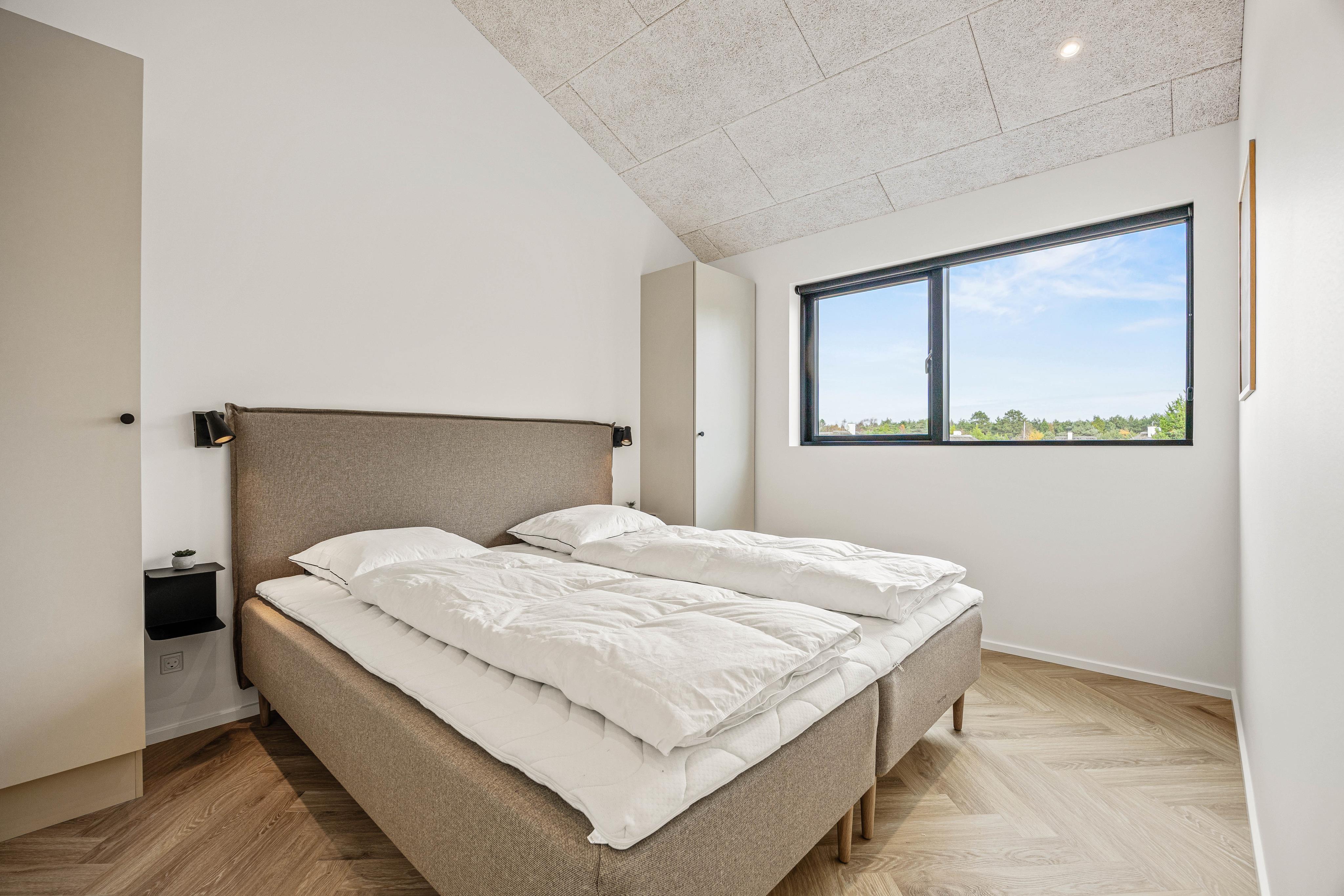 Med plads til op til 8 personer er feriehuset i Vejers idéelt til store familier eller vennegrupper. De fire smagfuldt indrettede soveværelser – alle med skabe - tilbyder jer tre dobbeltsenge og to enkeltsenge til afslappende nætter. Start dagen med en hyggelig morgenmad i det åbne køkken, som naturligvis er udstyret med en opvaskemaskine og også et stort amerikaner-køleskab.