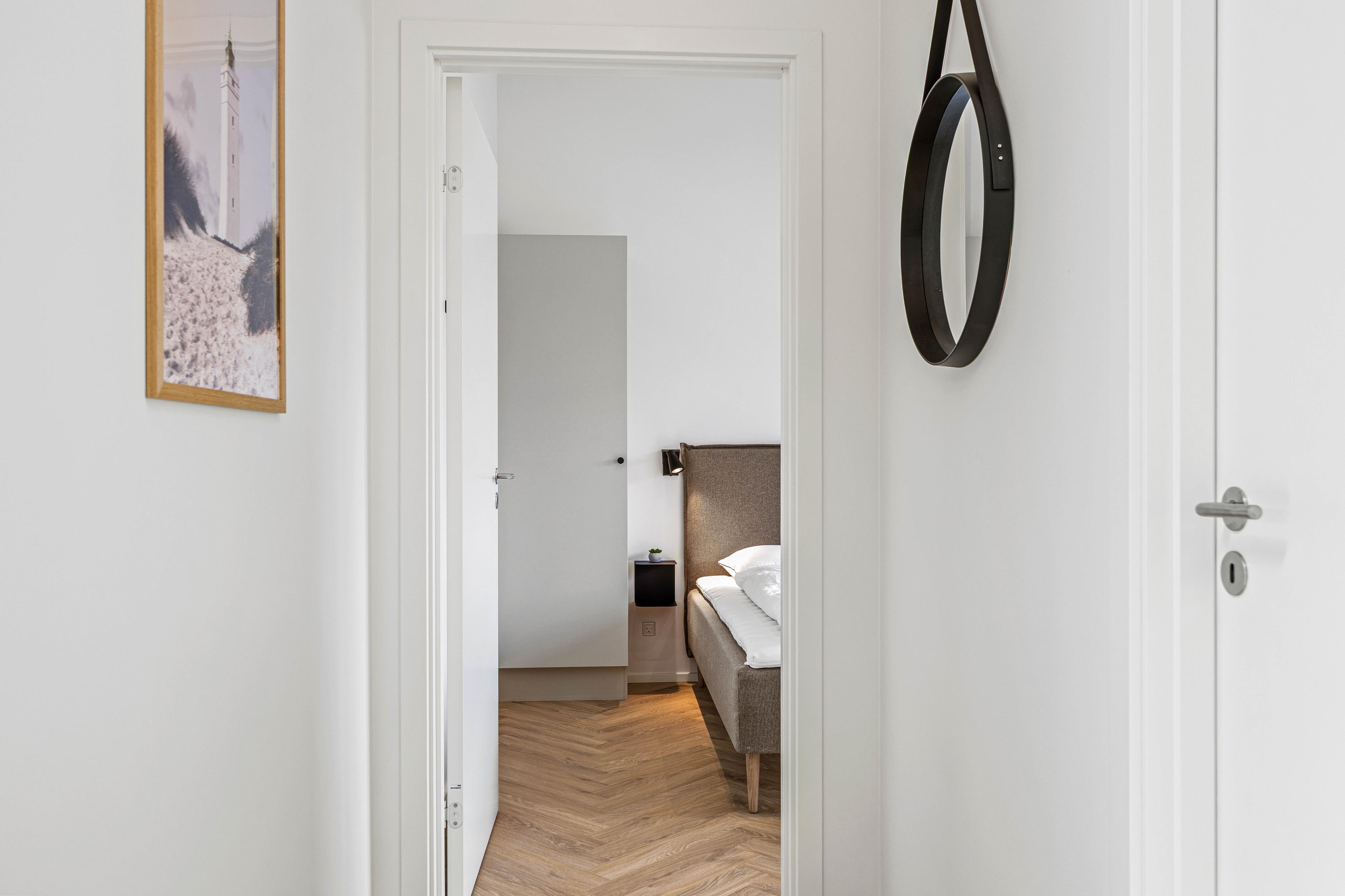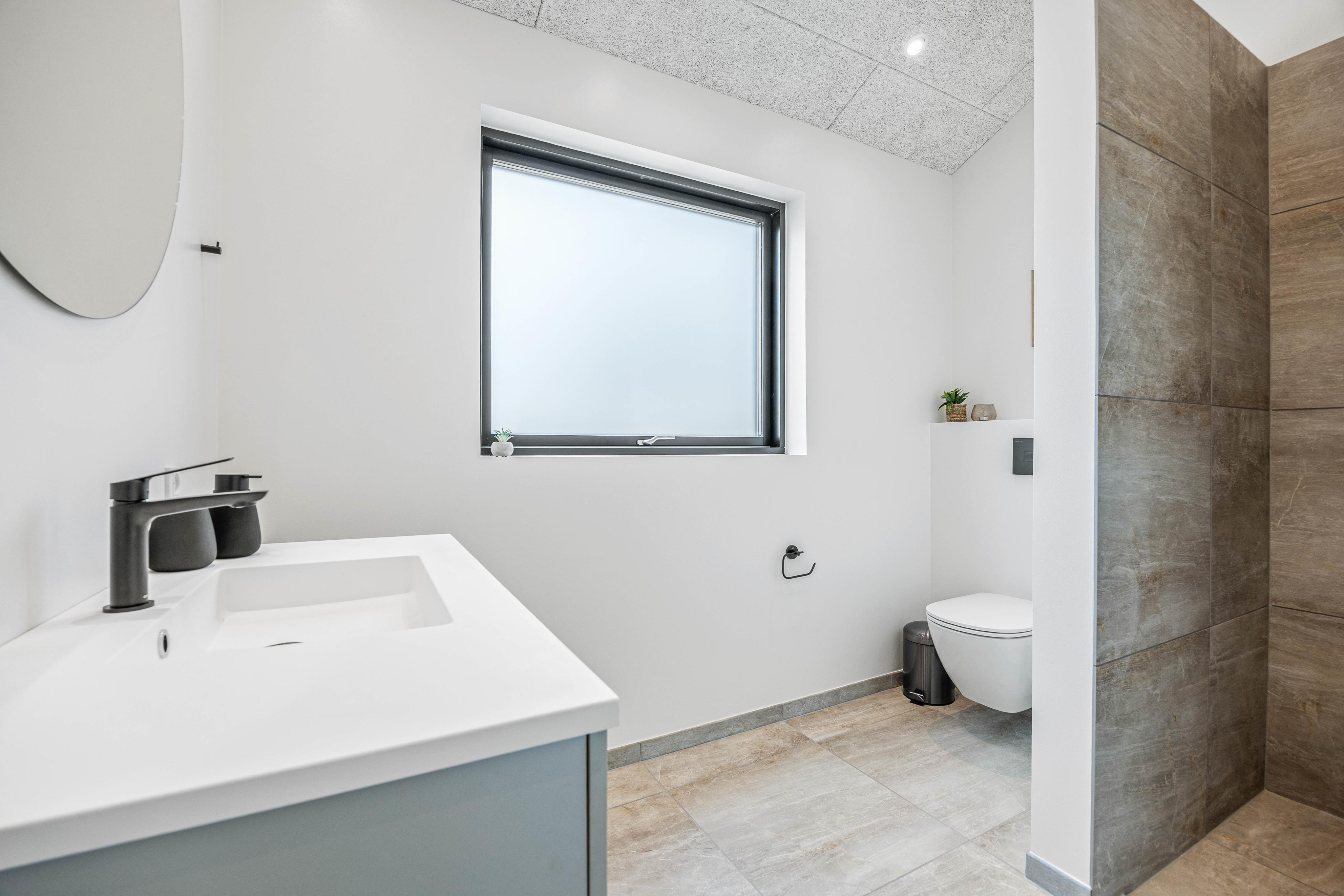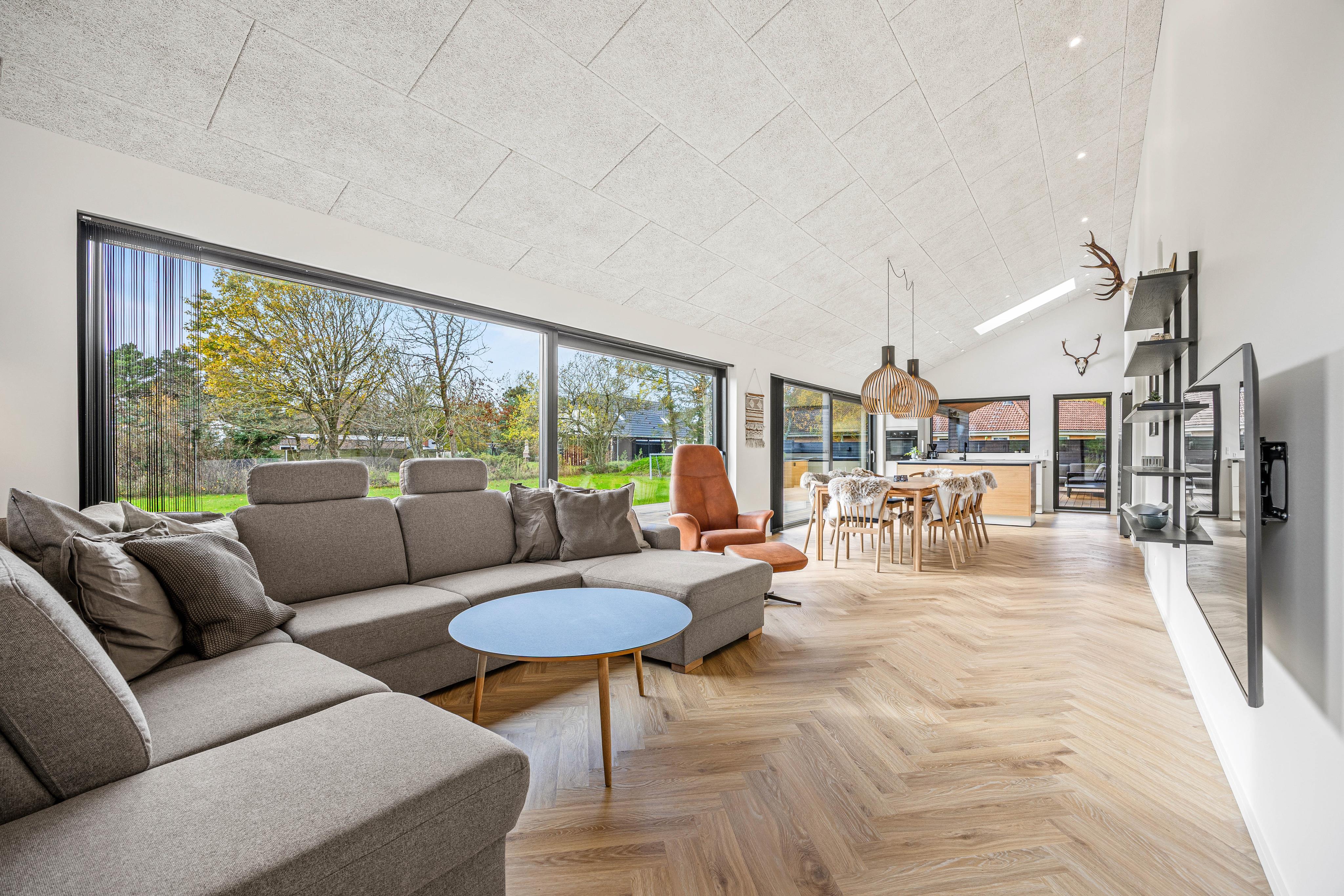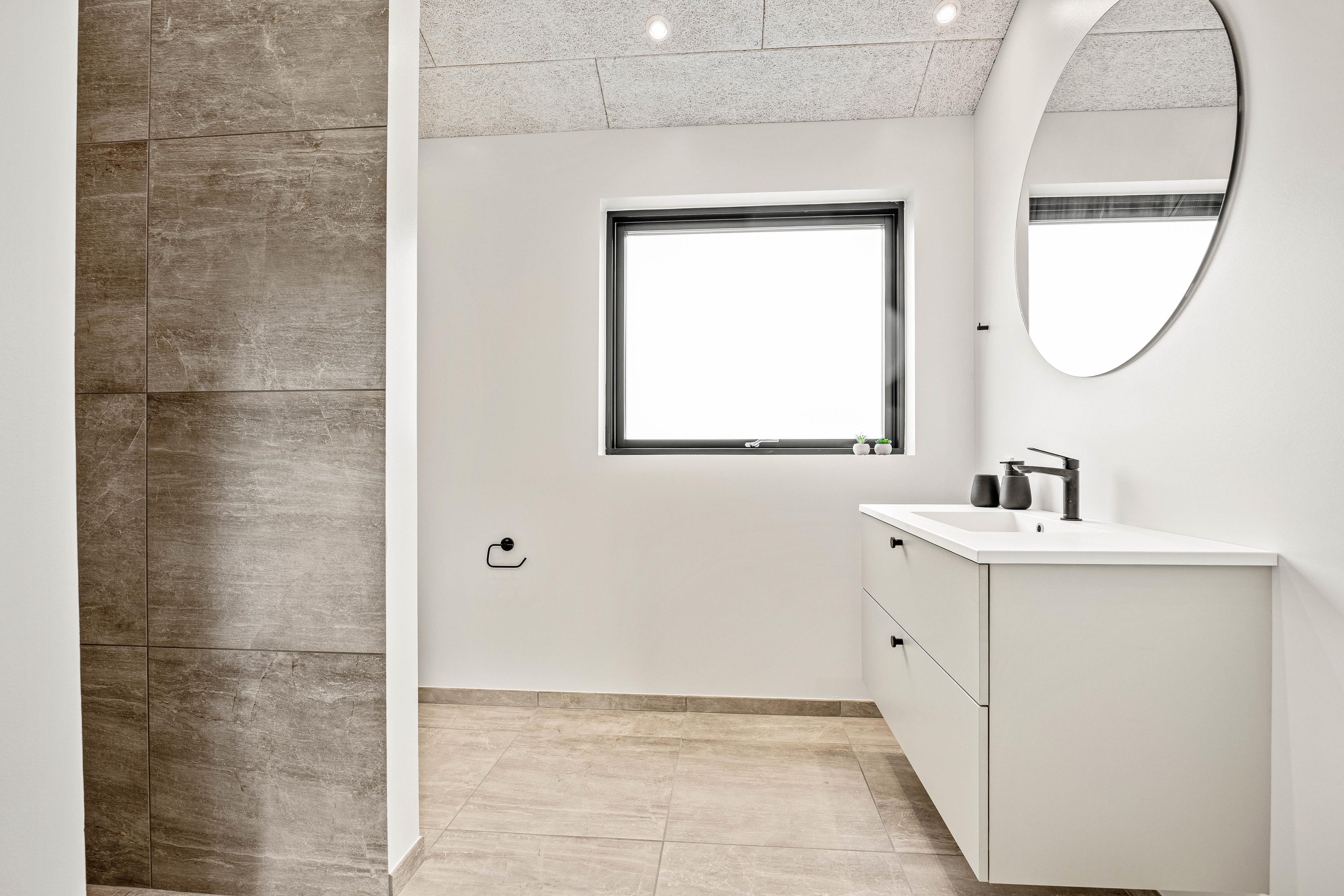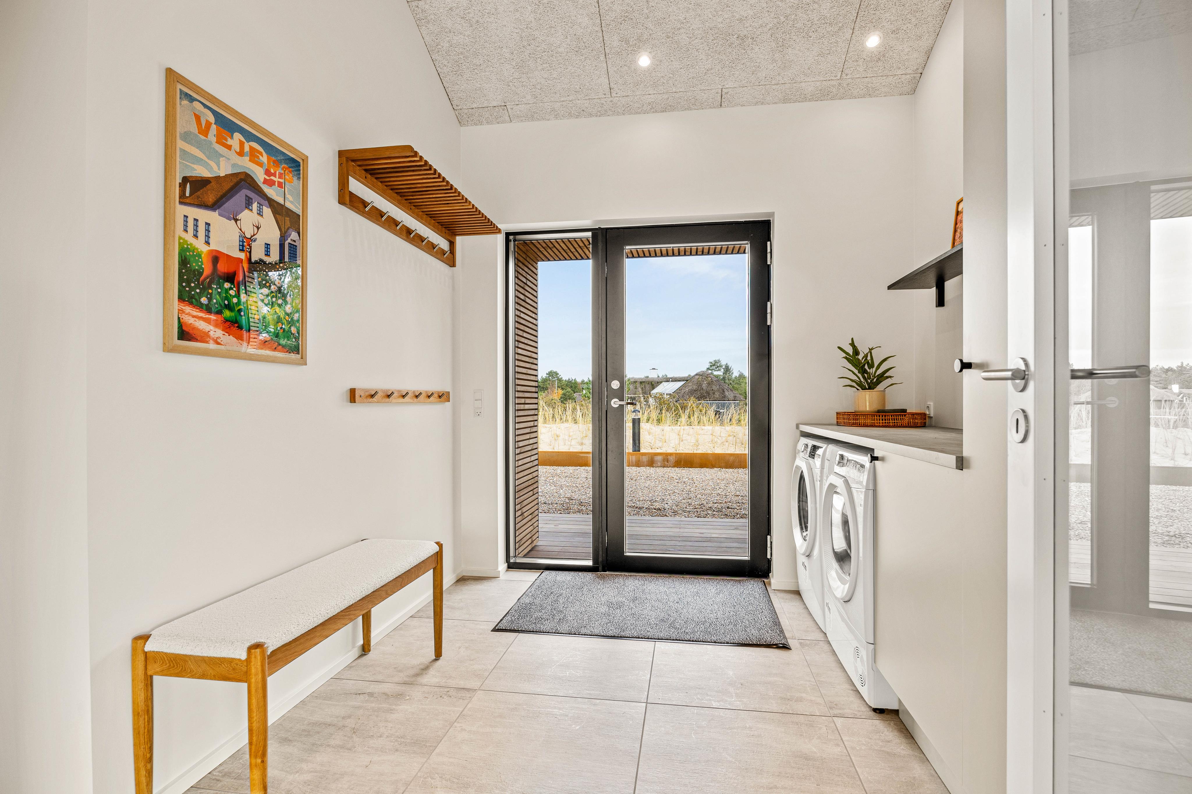 Det store indgangsparti med vaskemaskine og tørretumbler og det rigelige dagslys i opholdsrummene bidrager til jeres velværeoplevelse.