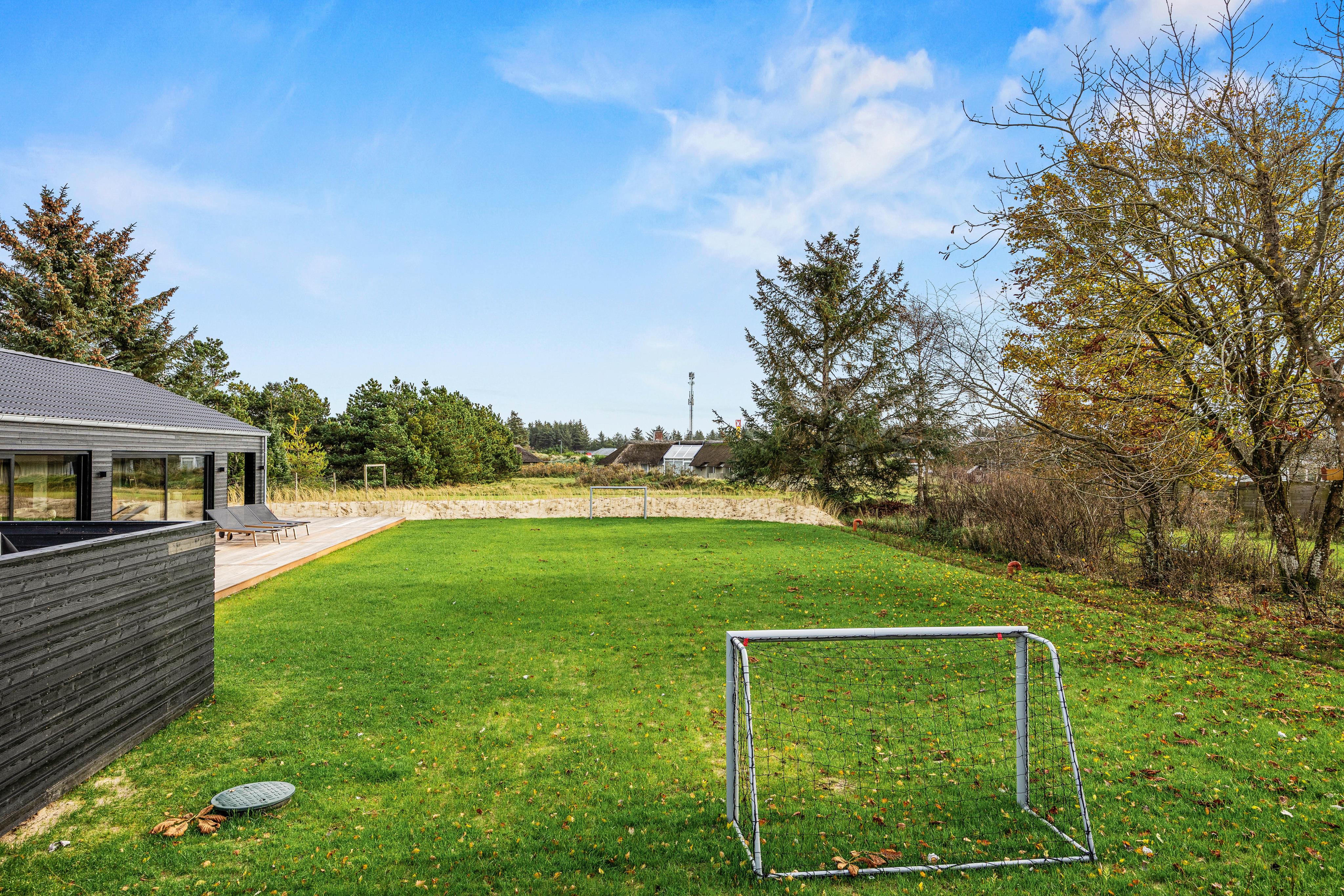 Græsplænen inviterer til sjove fodboldkampe efter en dag fyldt med aktiviteter. Med kun 1500 meter til stranden og blot 200 meter til indkøbsmuligheder er feriehuset det perfekte udgangspunkt for alsidige aktiviteter.