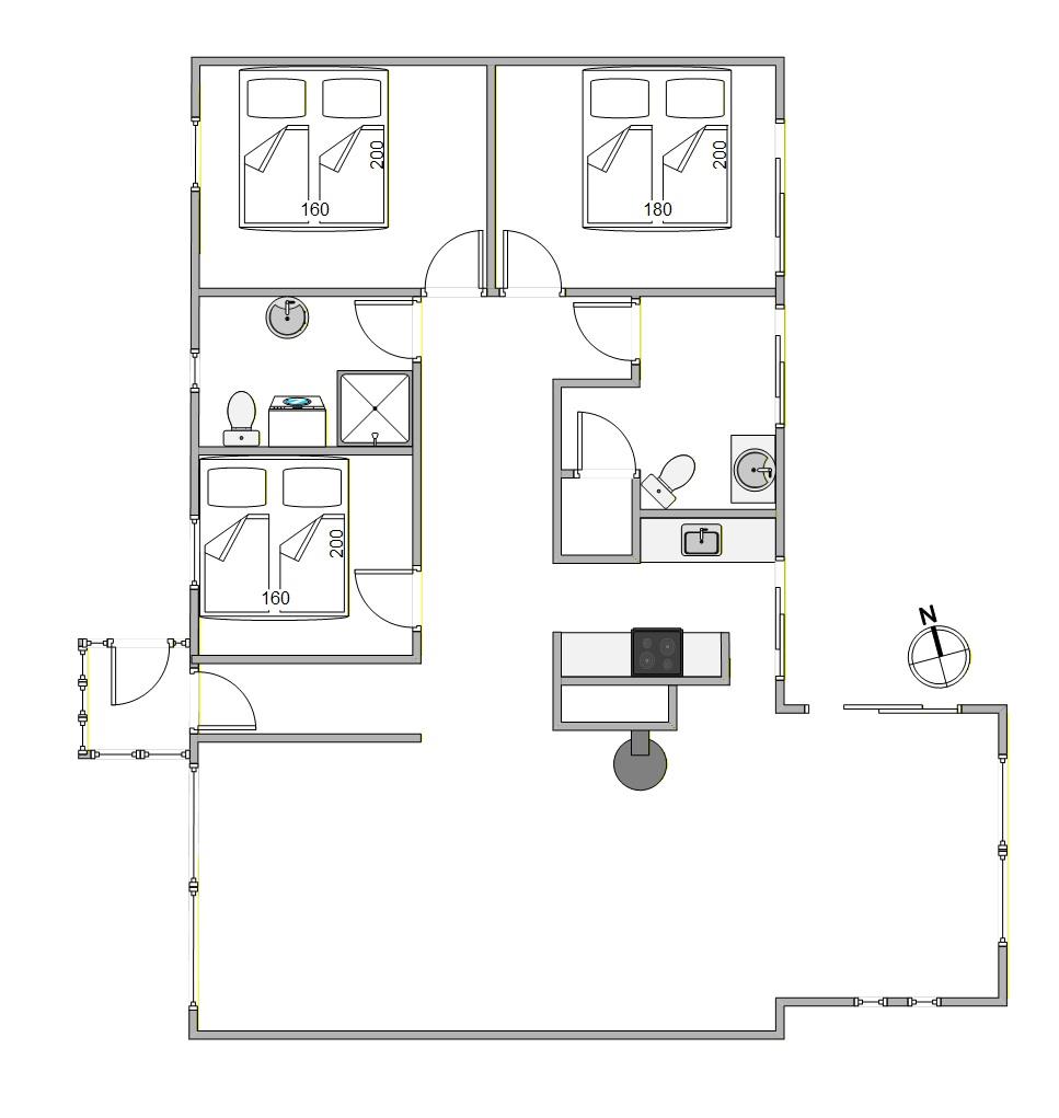 Kratvej 3 er et dejligt sommerhus, som kombinerer praktik og komfort. Med et rummeligt husareal på 123 m2 finder I 3 soverum med dobbeltsenge, som sikrer alle seks en behagelig nattesøvn. Her er et rummeligt badeværelse og som et plus også et gæstetoilet – begge med gulvvarme.