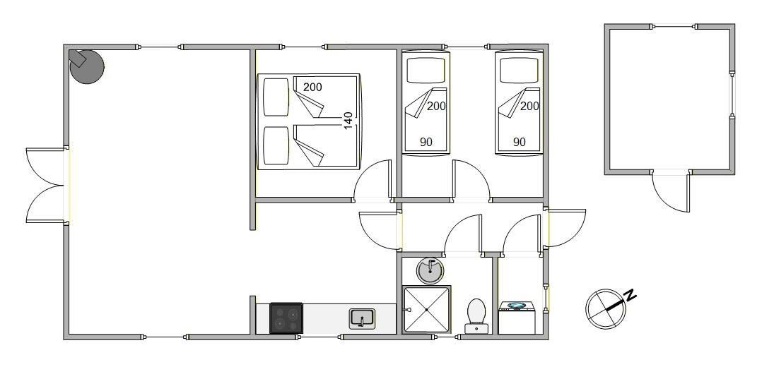 Køkkenet i sommerhuset ved Grærup Strand er udstyret med en mikroovn samt en 90-liters fryser, hvor du nemt kan opbevare dine forsyninger. Vaskemaskinen, tørretumbleren ordner tøjvasken for dig og den energivenlige varmepumpe sørger for et godt indeklima hele året.