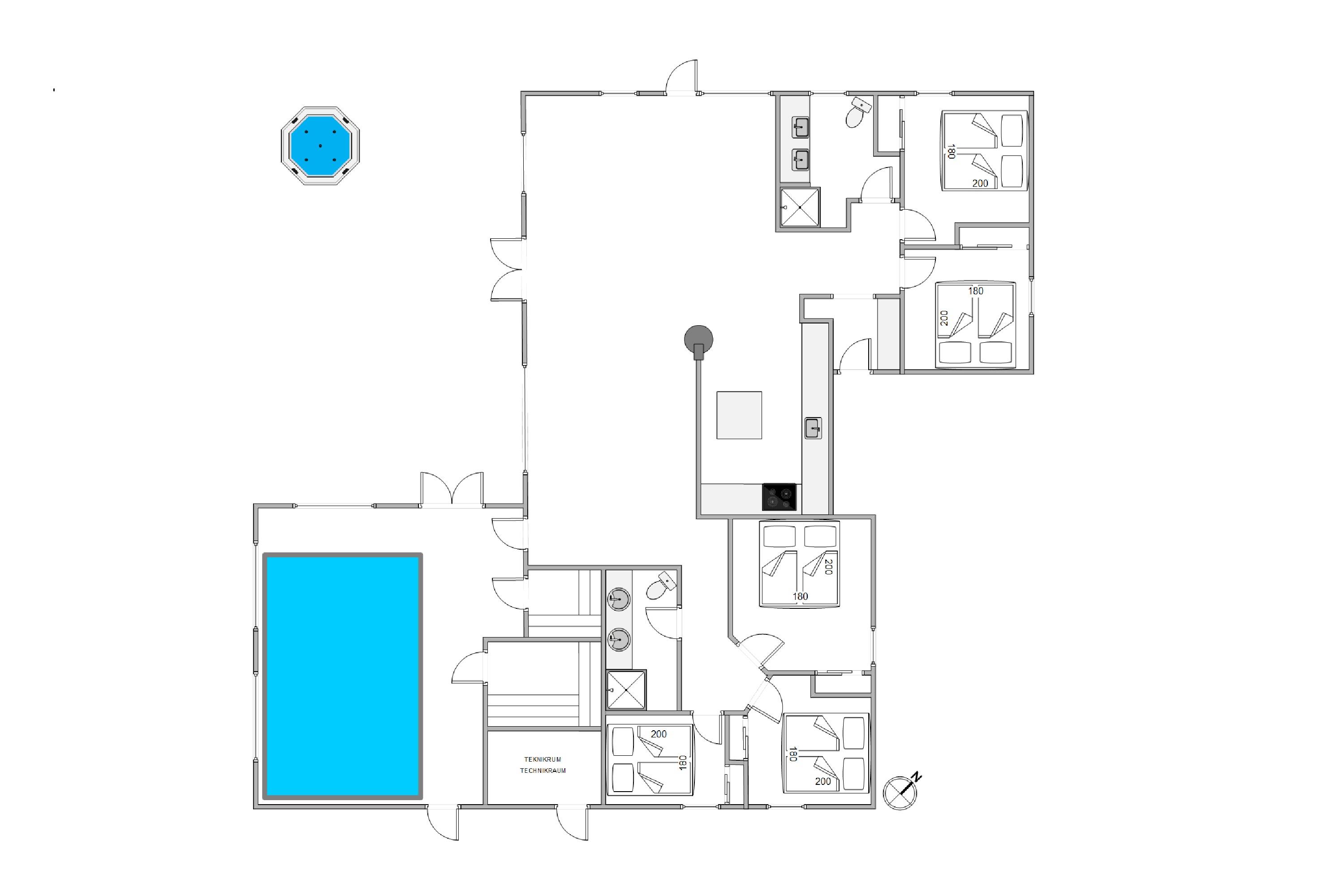 Fantastisk rumfordeling og fantastisk atmosfære. Selv i dårligt vejr kan man godt holde ud.(på grund af pool, whirlpool, sauna, billardbord osv.) Alt i alt et godt gennemtænkt koncept fra indretningsarkitekten.