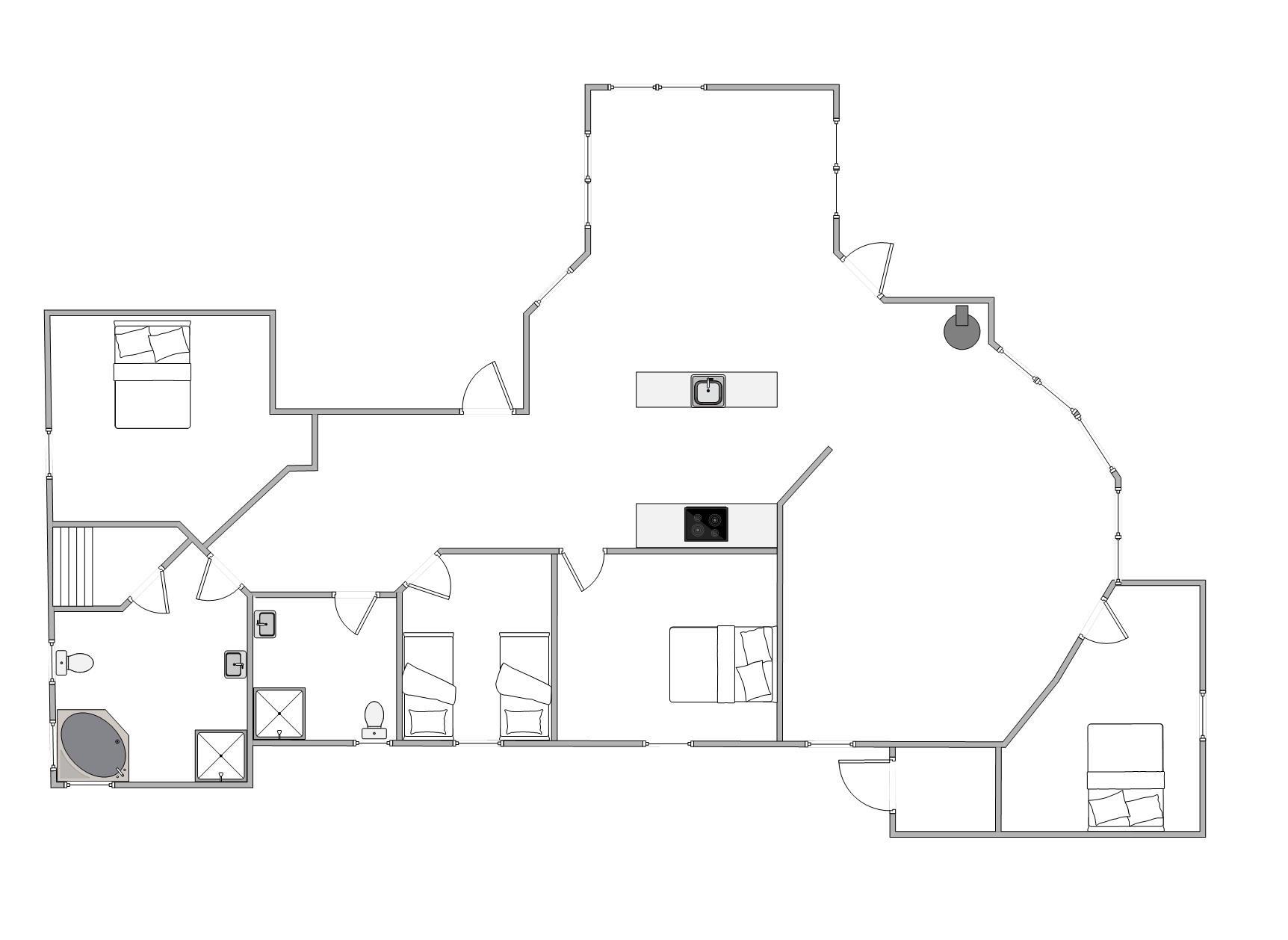 Huset virker straks chic og alligevel meget hyggeligt. De fire soveværelser er perfekt fordelt, så man selv som "snorker" ikke går hinanden på nerverne. Begge badeværelser er meget gode.