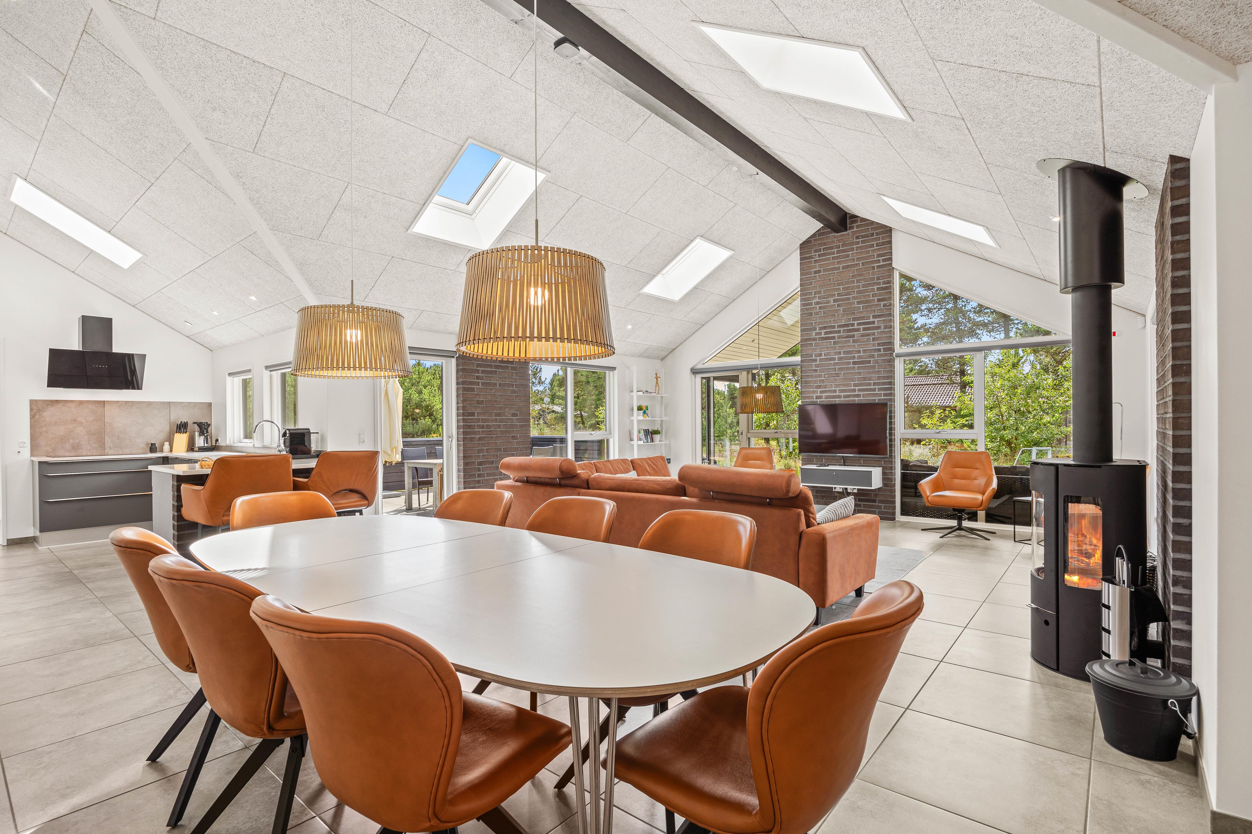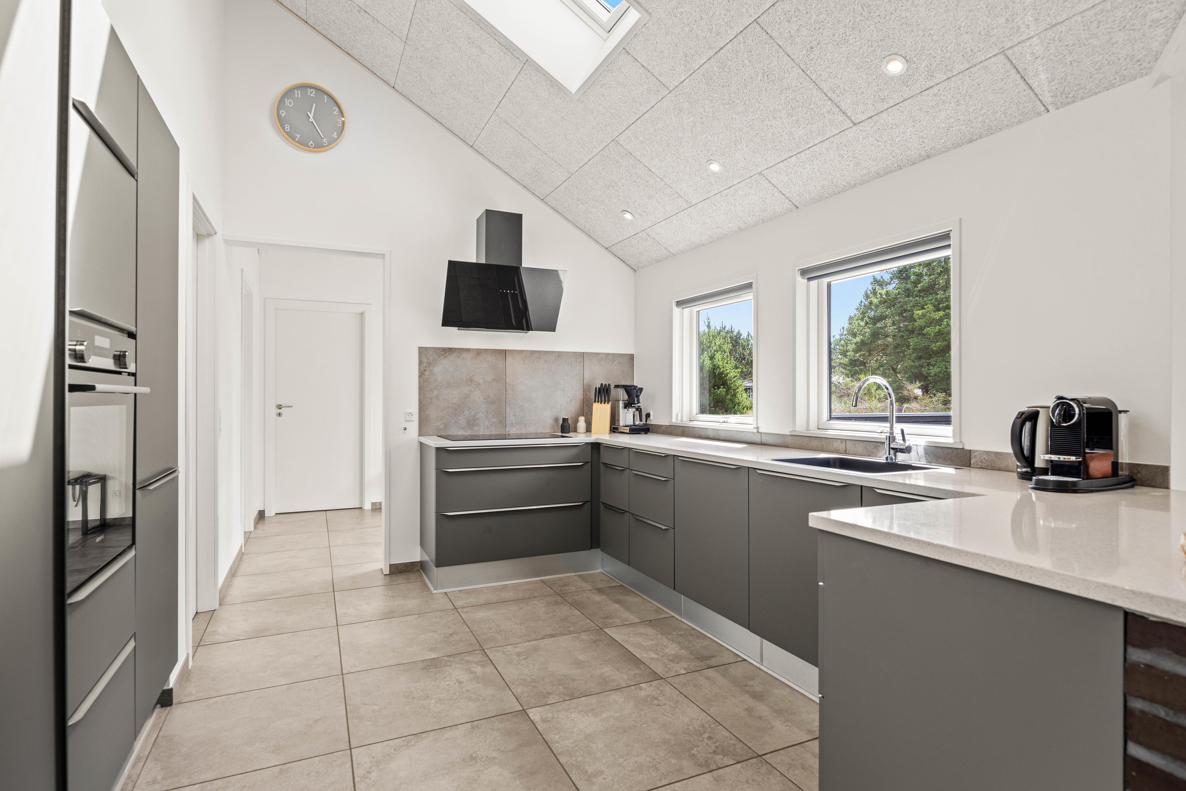 Dette femstjernede sommerhus råder over i alt 160 velindrettede kvadratmeter. Den moderne og stilfulde indretning fungerer som rød tråd i hele sommerhuset, og det lyse farvevalg skaber en imødekommende stemning og rummelige omgivelser. I stuen er der chromecast i det ene TV samt Airplay, hvor I kan caste fra Apple devices direkte til Tv´et.