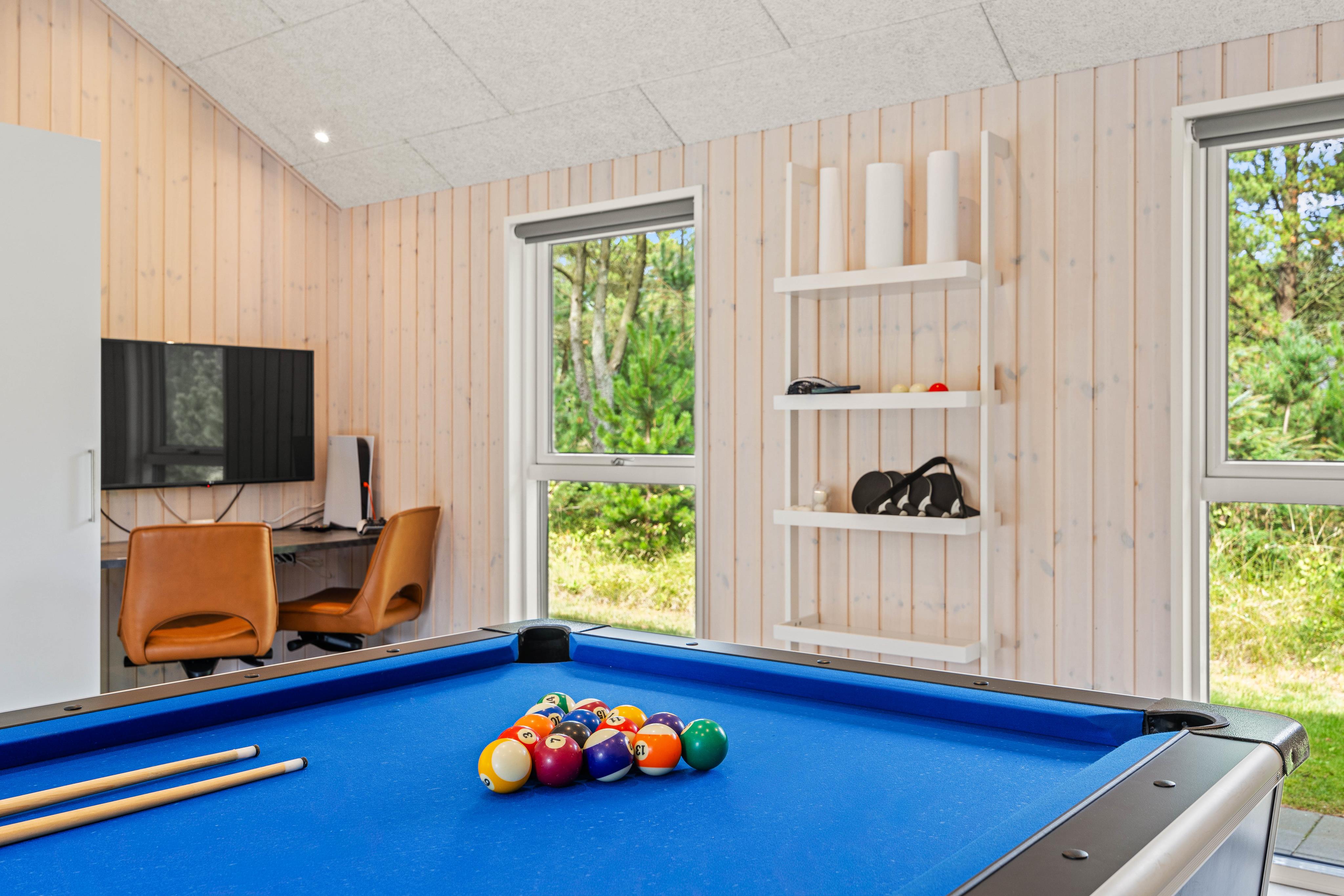 Femstjernet sommerhus med topmoderne indretning og aktivitetsrum med billard