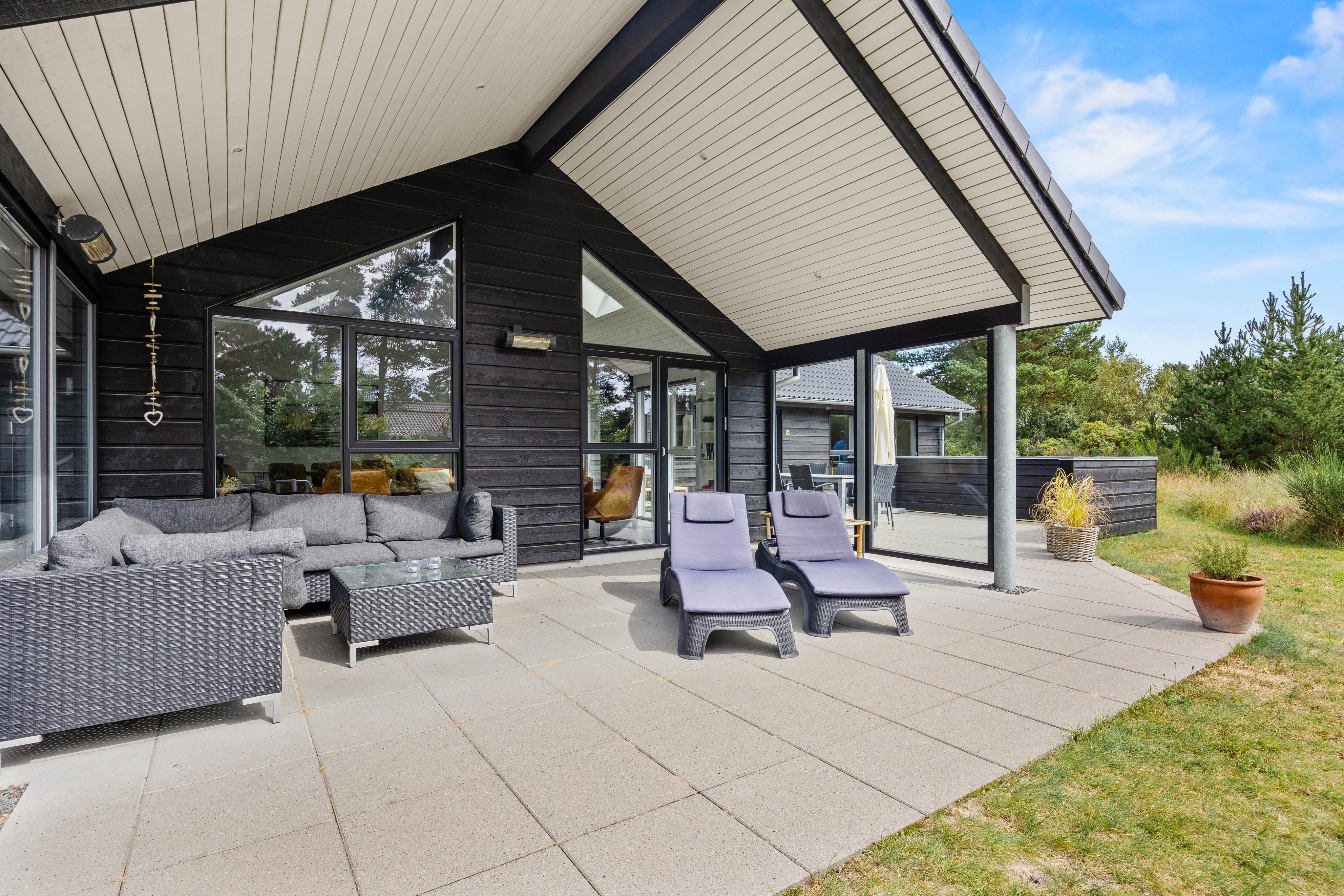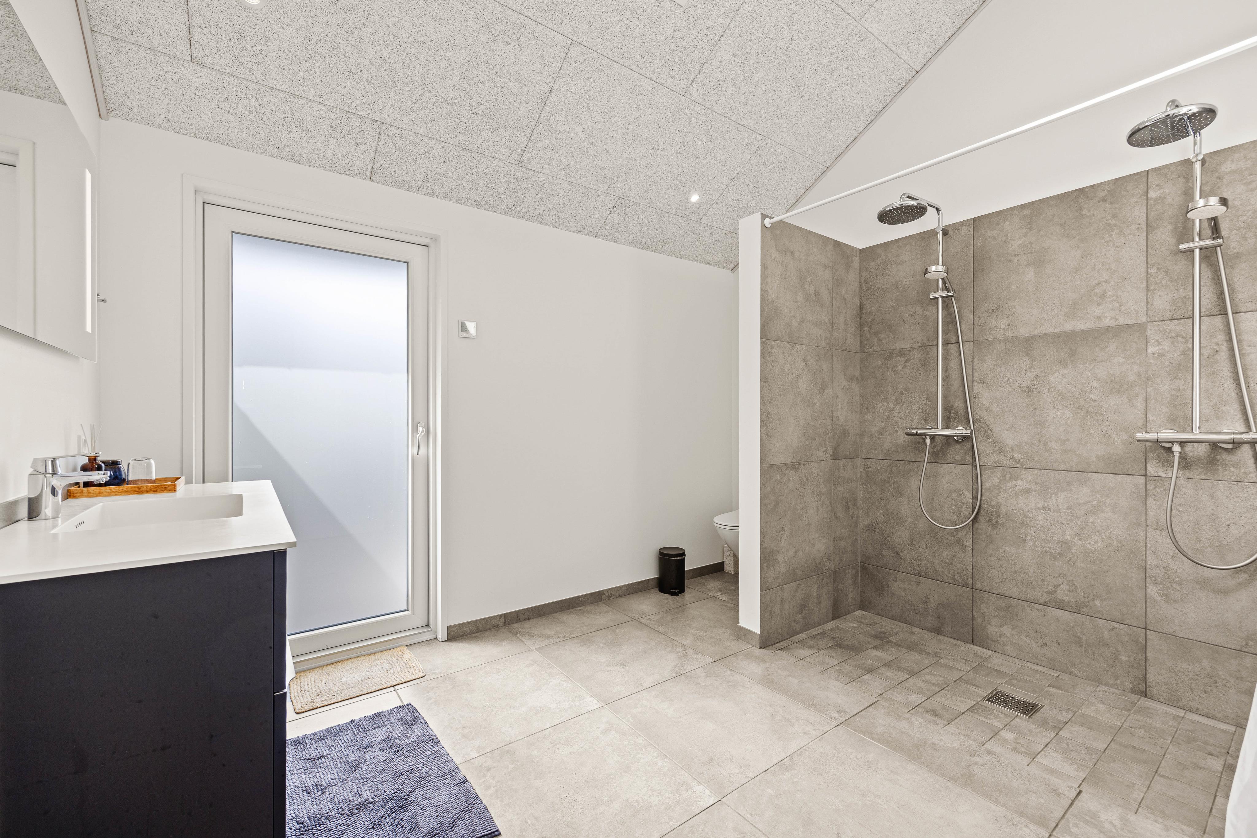 Et skønt, moderne og stort feriehus, som har fire soveværelser med dobbeltsenge. Der er to terrasser, hvoraf den ene har spabad. Og en overdækket terrasse med en afslappende lounge. To flotte badeværelser og et fuldt udstyret køkken. Desuden et aktivitetsrum med billard, bordtennis og en PlayStation 5. I haven står en stor trampolin og to fodboldmål. Alt i alt et fantastisk feriehus til en perfekt ferie. I begge badeværelser mangler der en hylde i bruseren til brusegelé/shampoo. I køkkenet mangler der kroge til at hænge viskestykker op (eventuelt på siden af disken). Havestolene på begge terrasser kan eventuelt trænge til at blive fornyet.