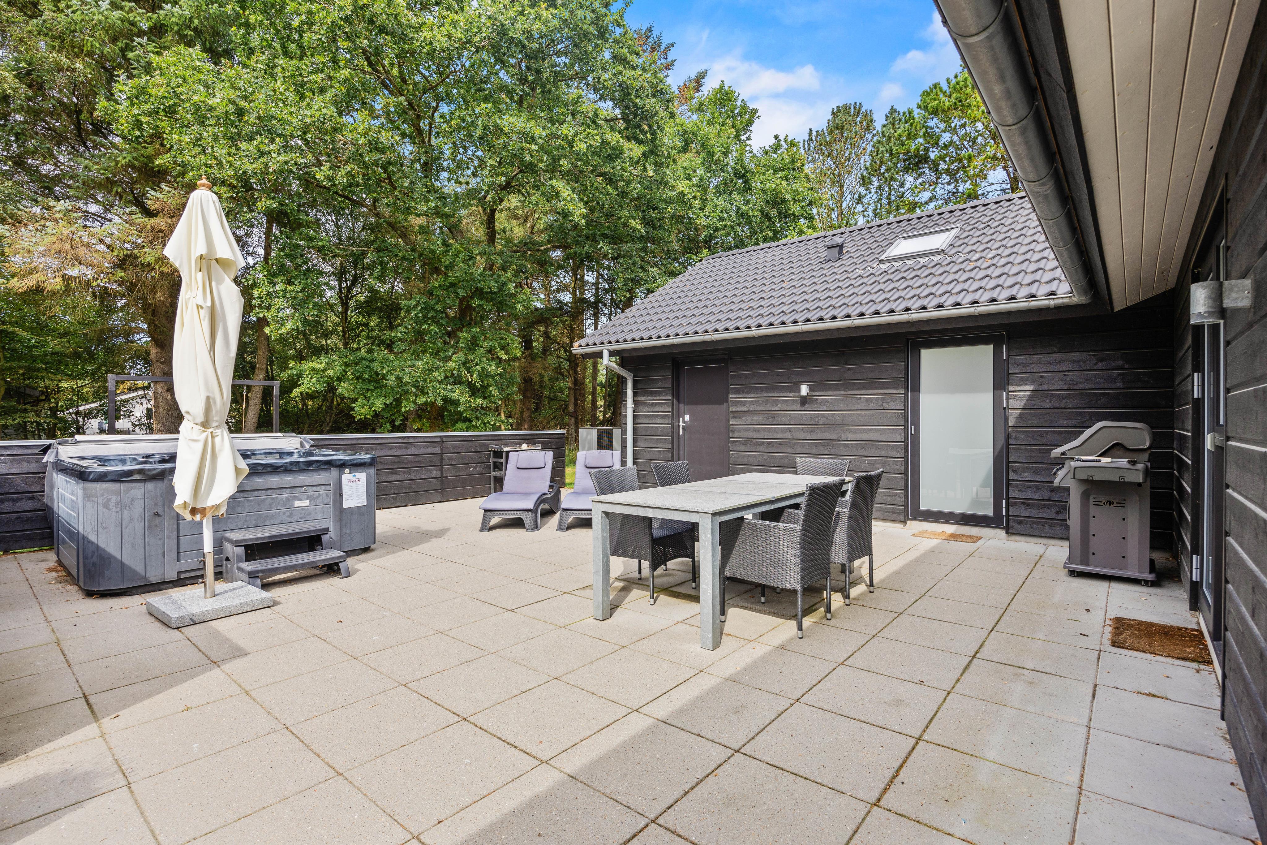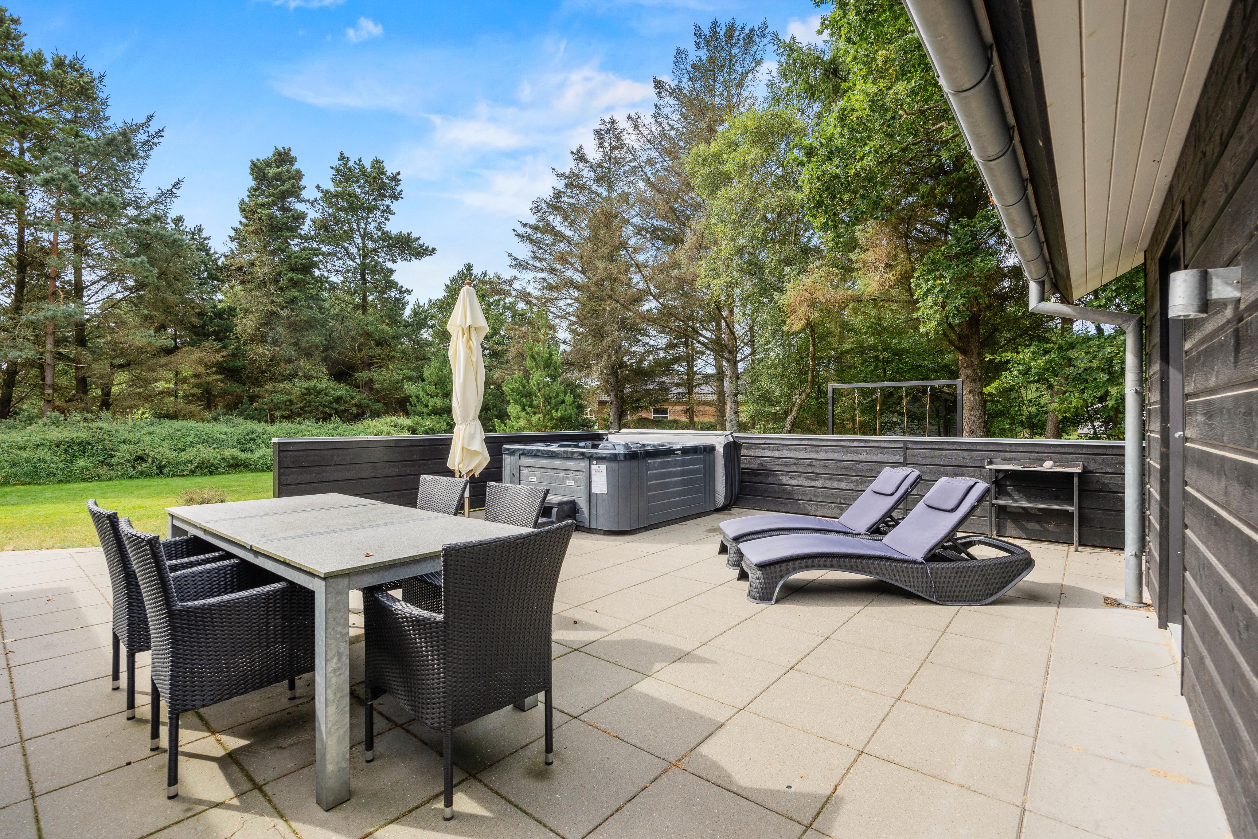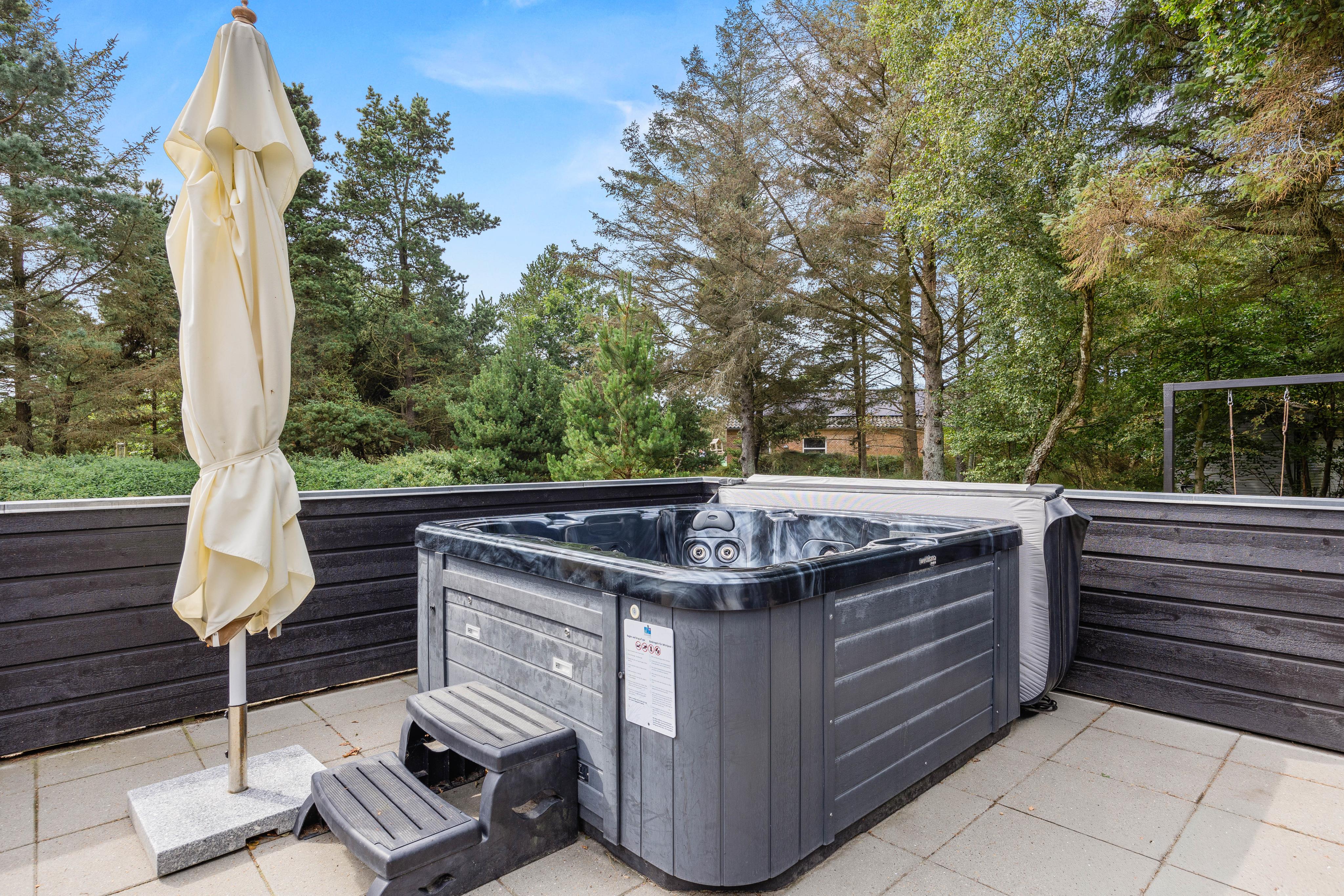 I bliver også godt hjulpet på vej af endnu et af aktivitetshusets highlights, her et udendørs et af slagsen. På terrassen står et stort udendørs spabad, som sørger for dejlige wellnessoplevelser under åben himmel hele året rundt. Udespa bliver opvarmet med husets energivenlig luft til vand varmepumpe og der er også en udebruser, som kan benyttes i sommerhalvåret.