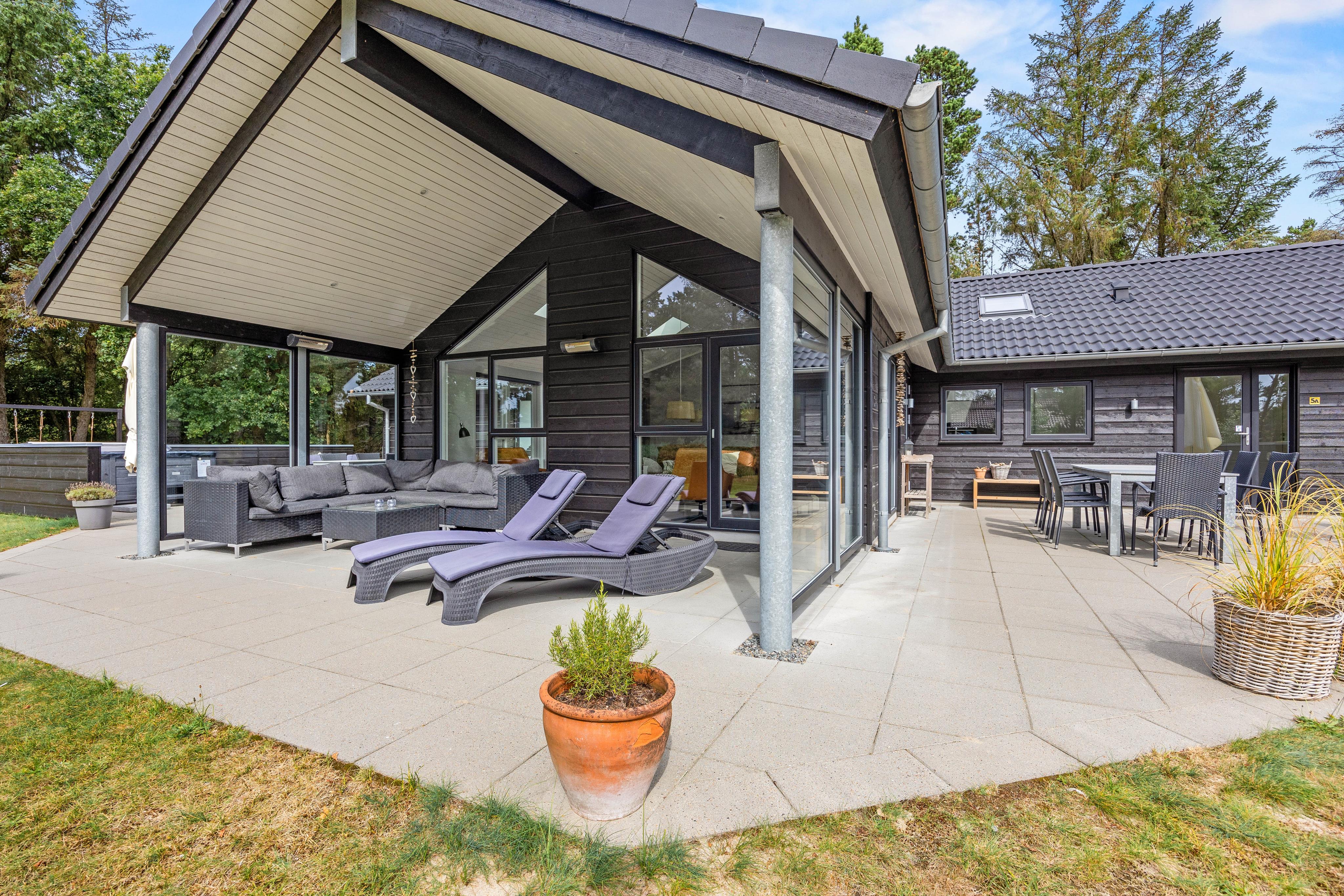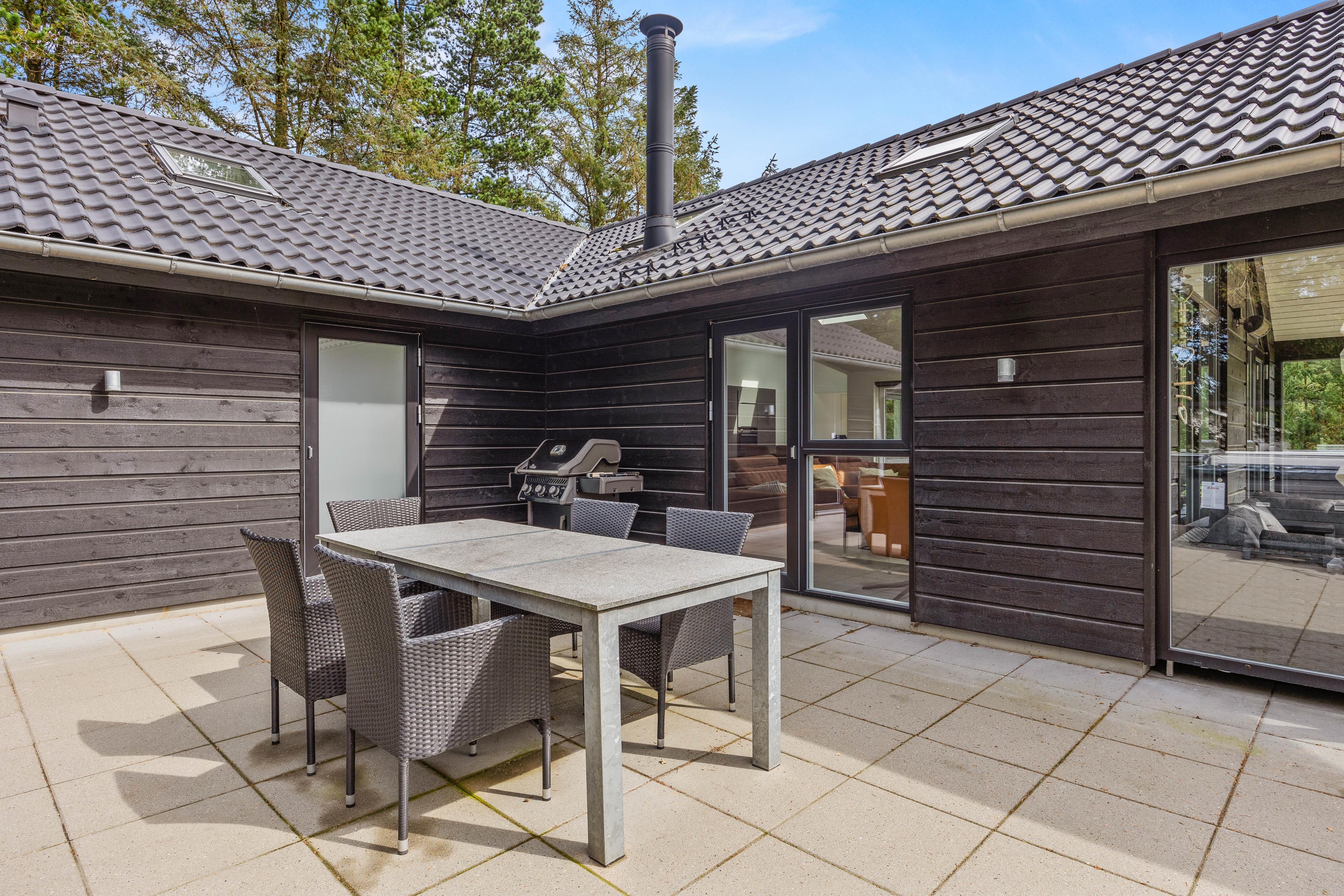 På den store, delvist overdækkede terrasse kan I nyde den friske luft og de flotte omgivelser i fulde drag. Den 2.477 kvadratmeter store naturgrund er indrammet af høje træer, der skærmer godt af, og med gode havemøbler og en gasgrill på terrassen har I helt optimale betingelser for at slappe af i det fri.
